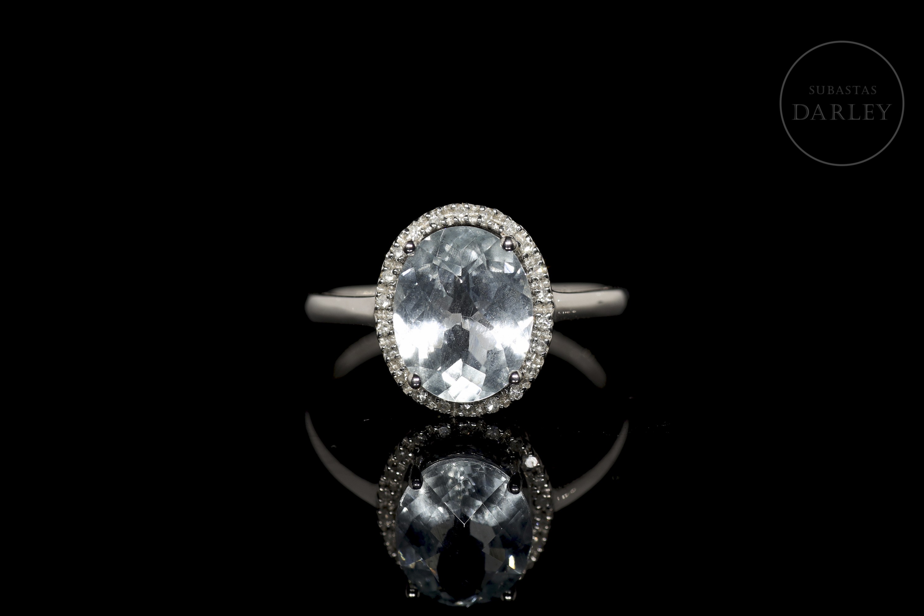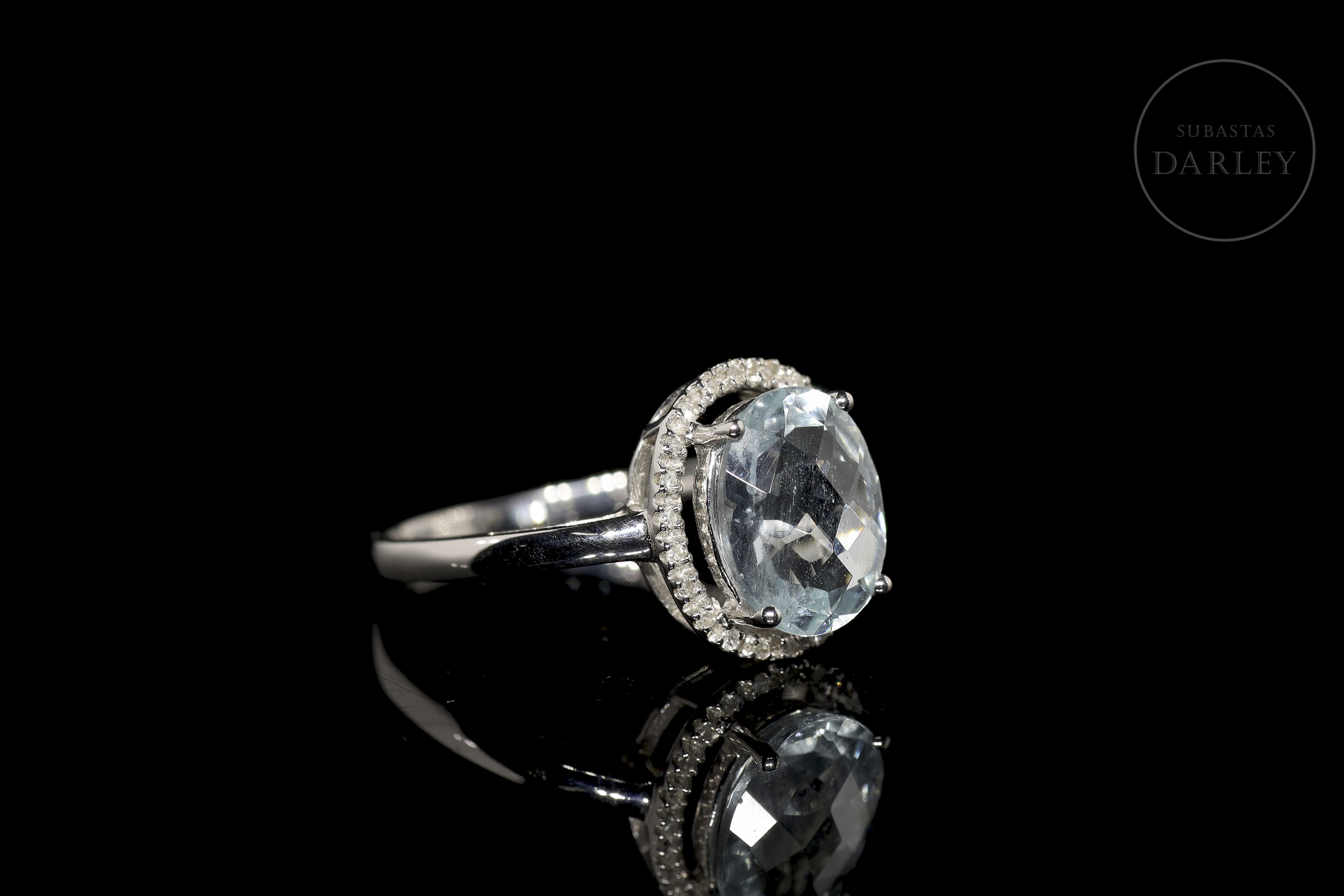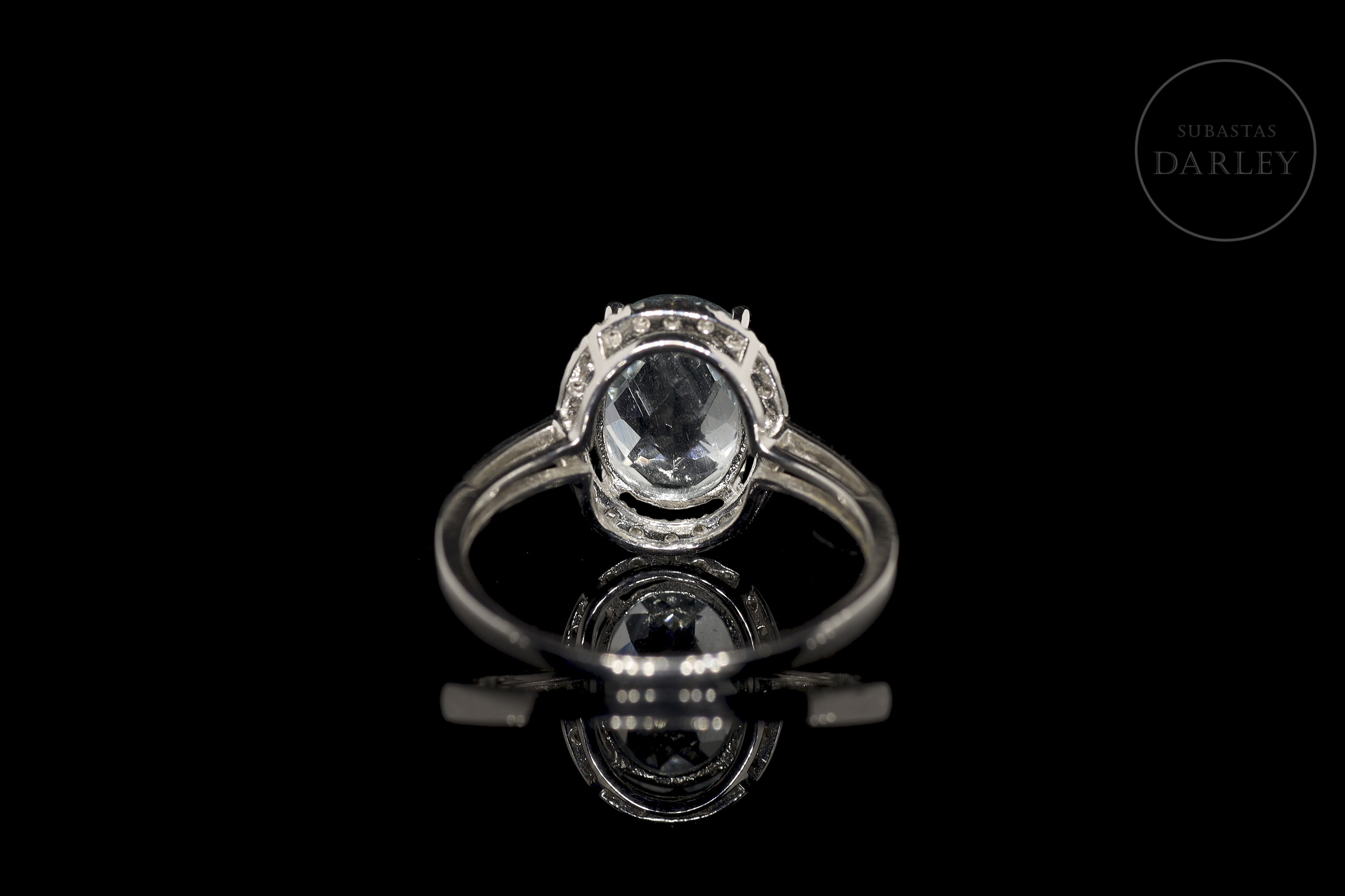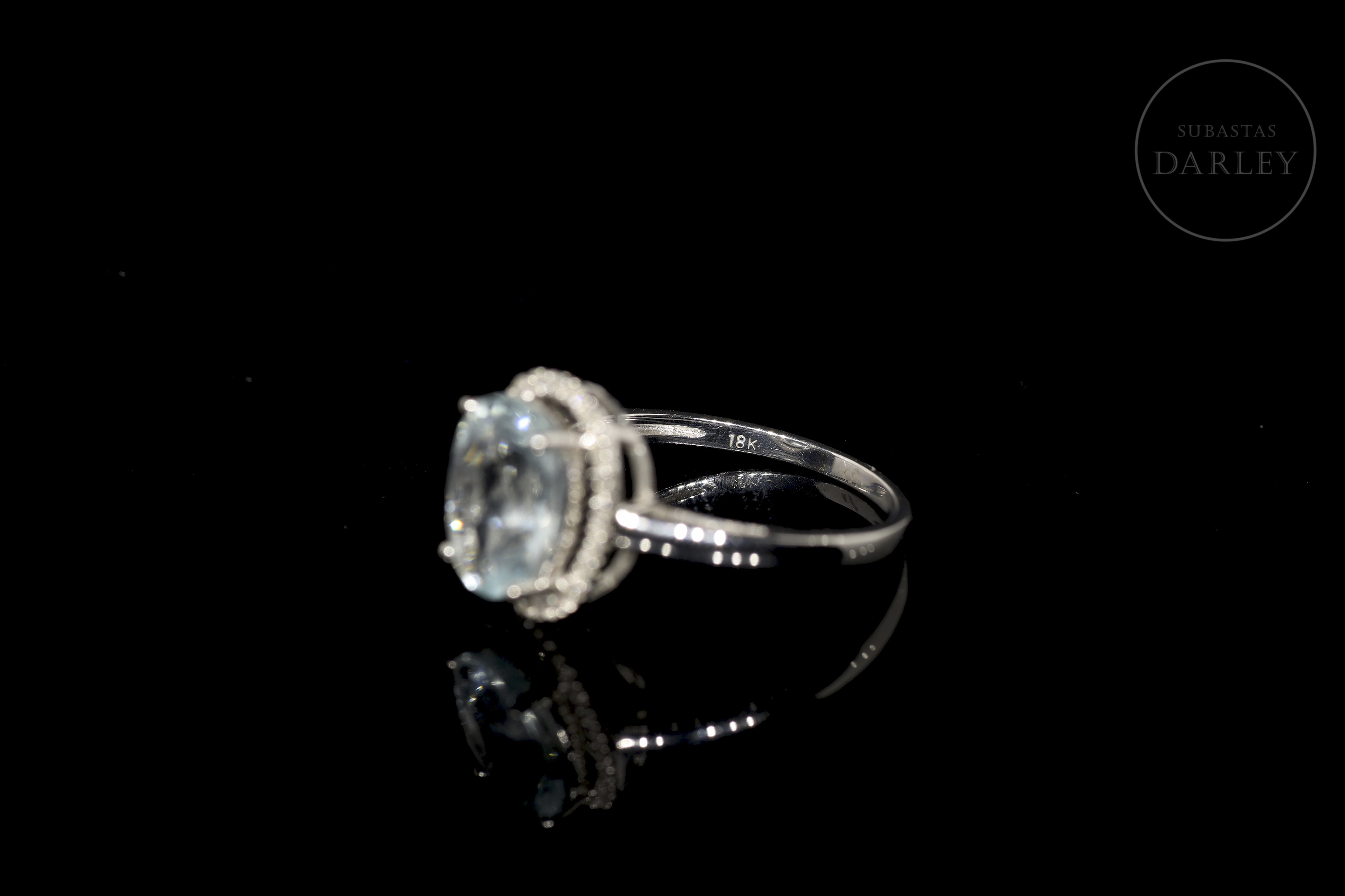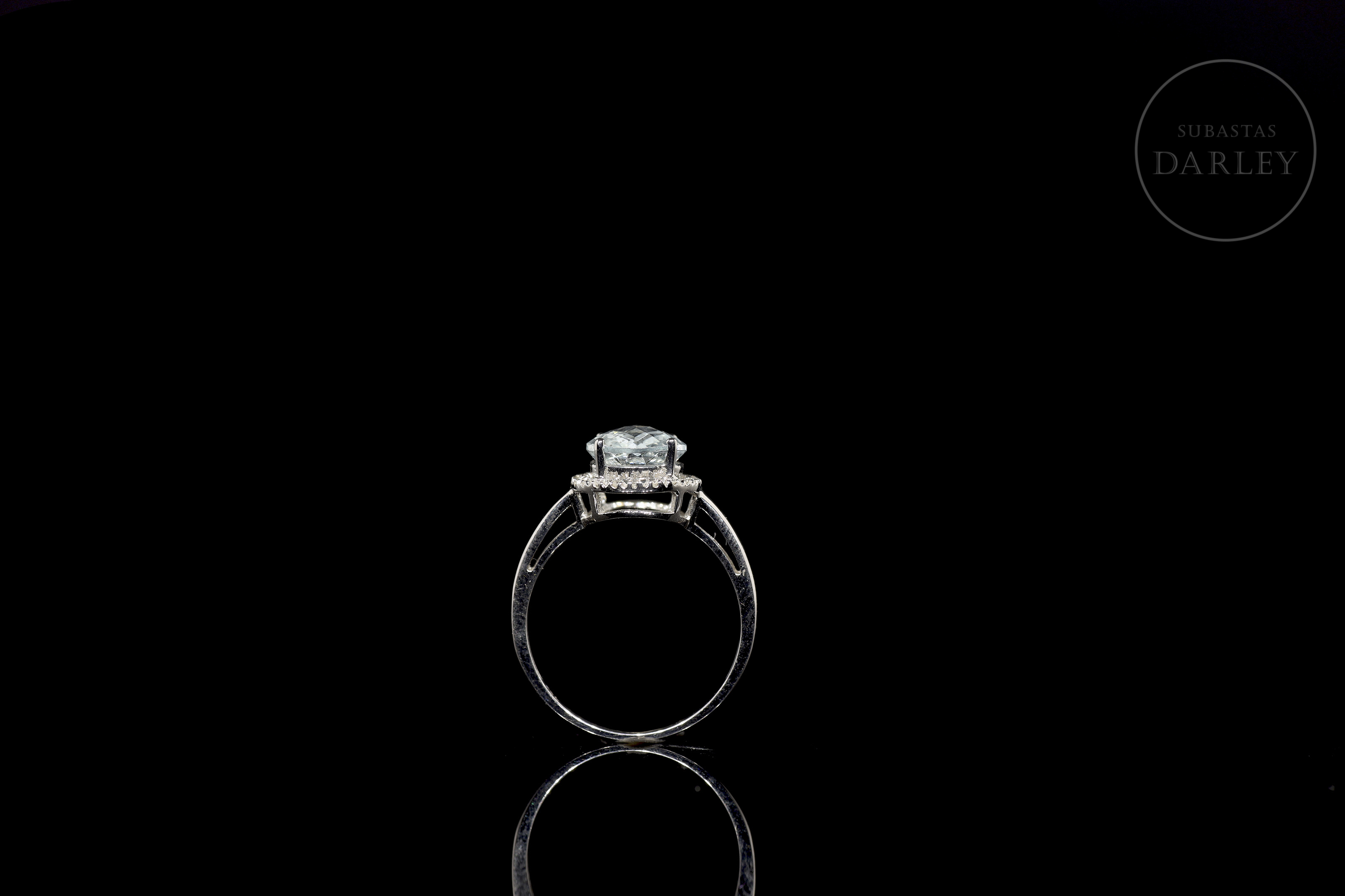 Anillo con aguamarina y diamantes en oro blanco de 18k