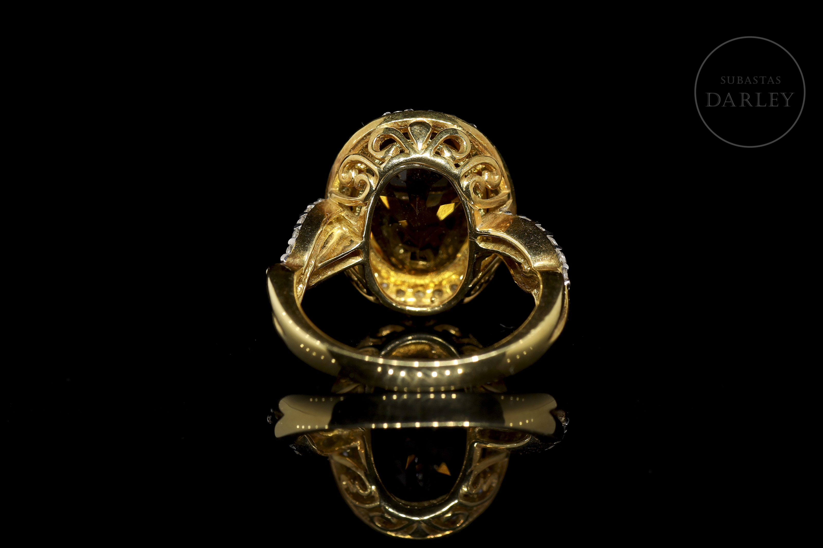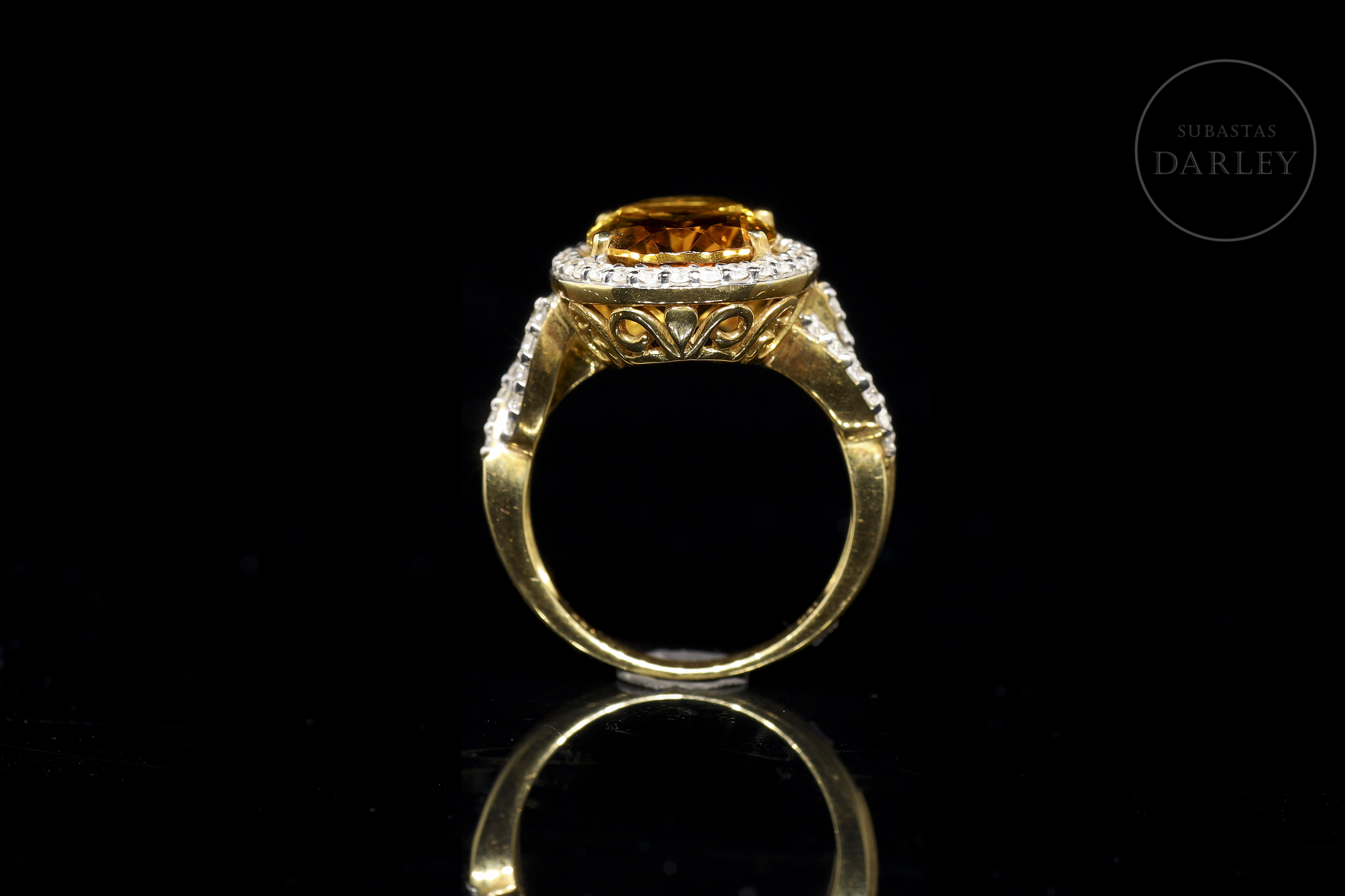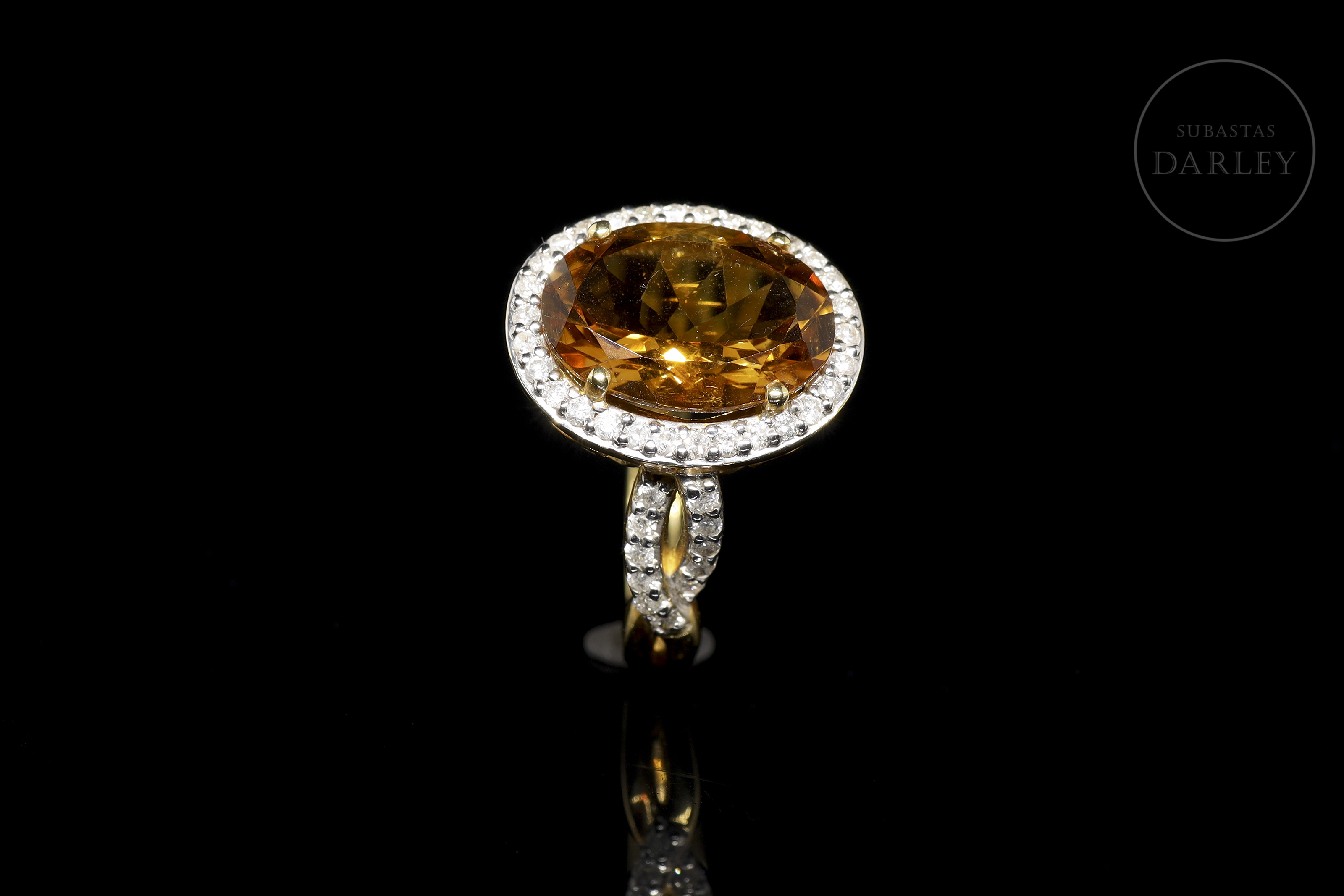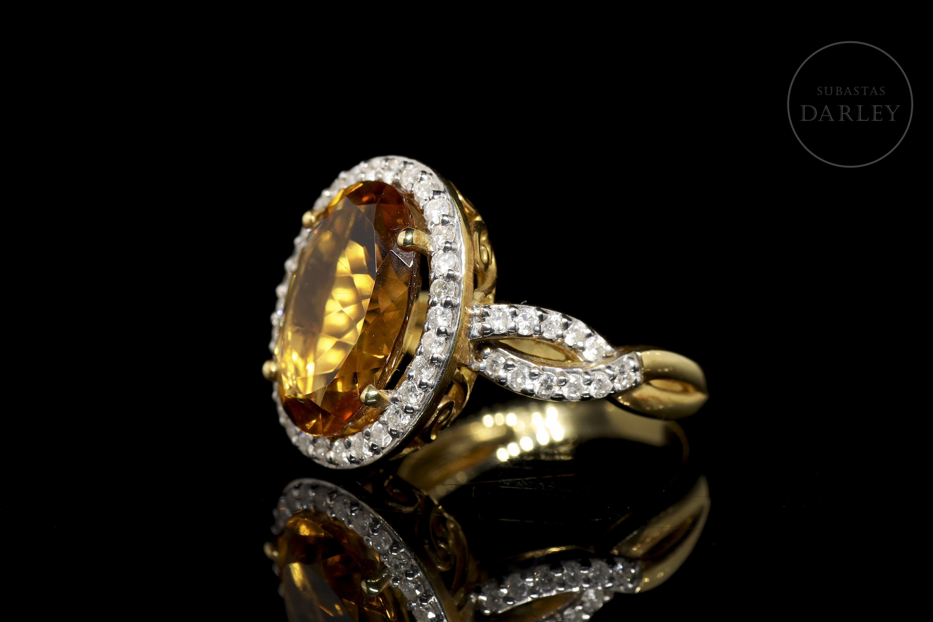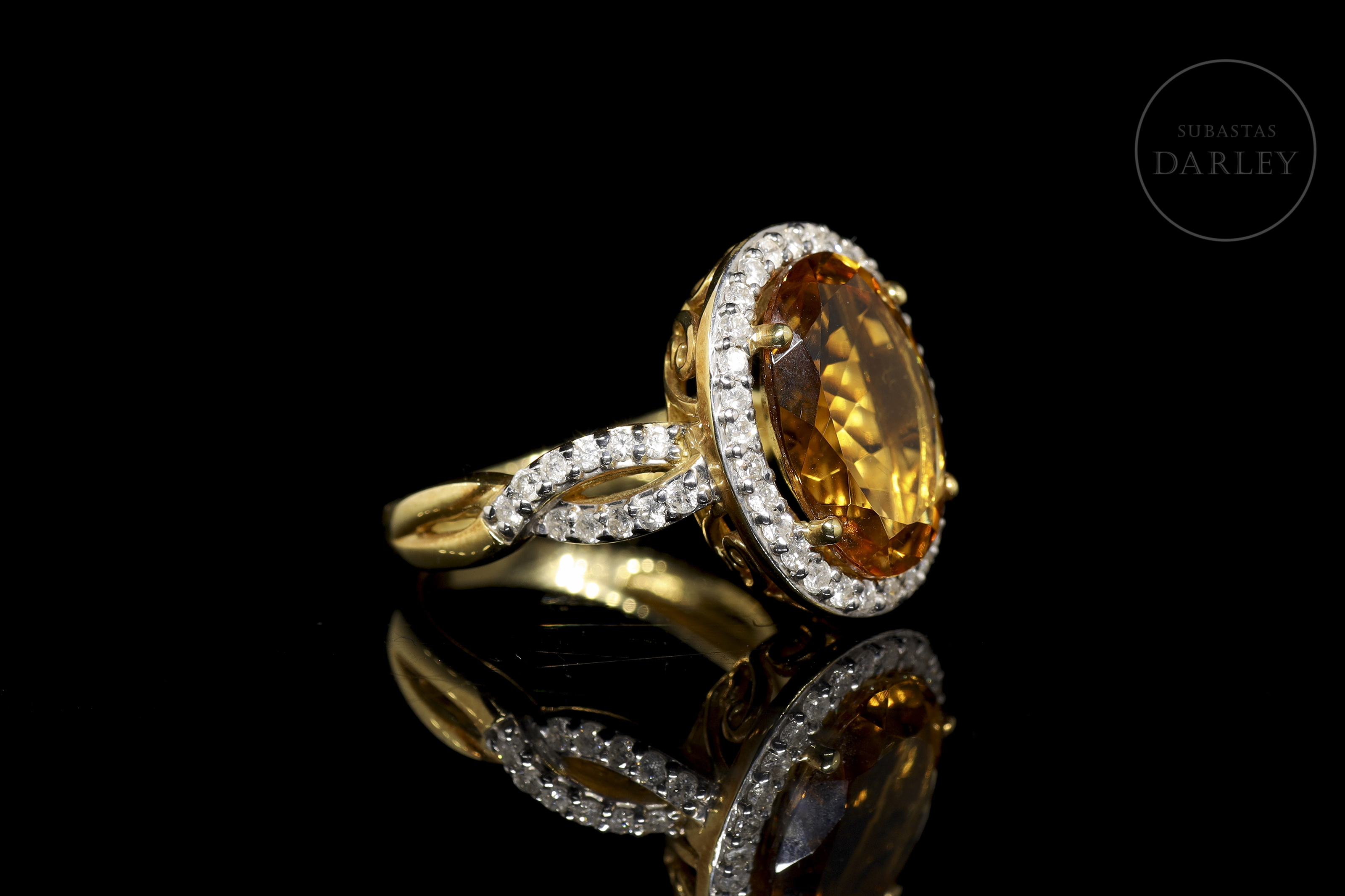 Anillo en oro amarillo de 18k con citrino y diamantes
