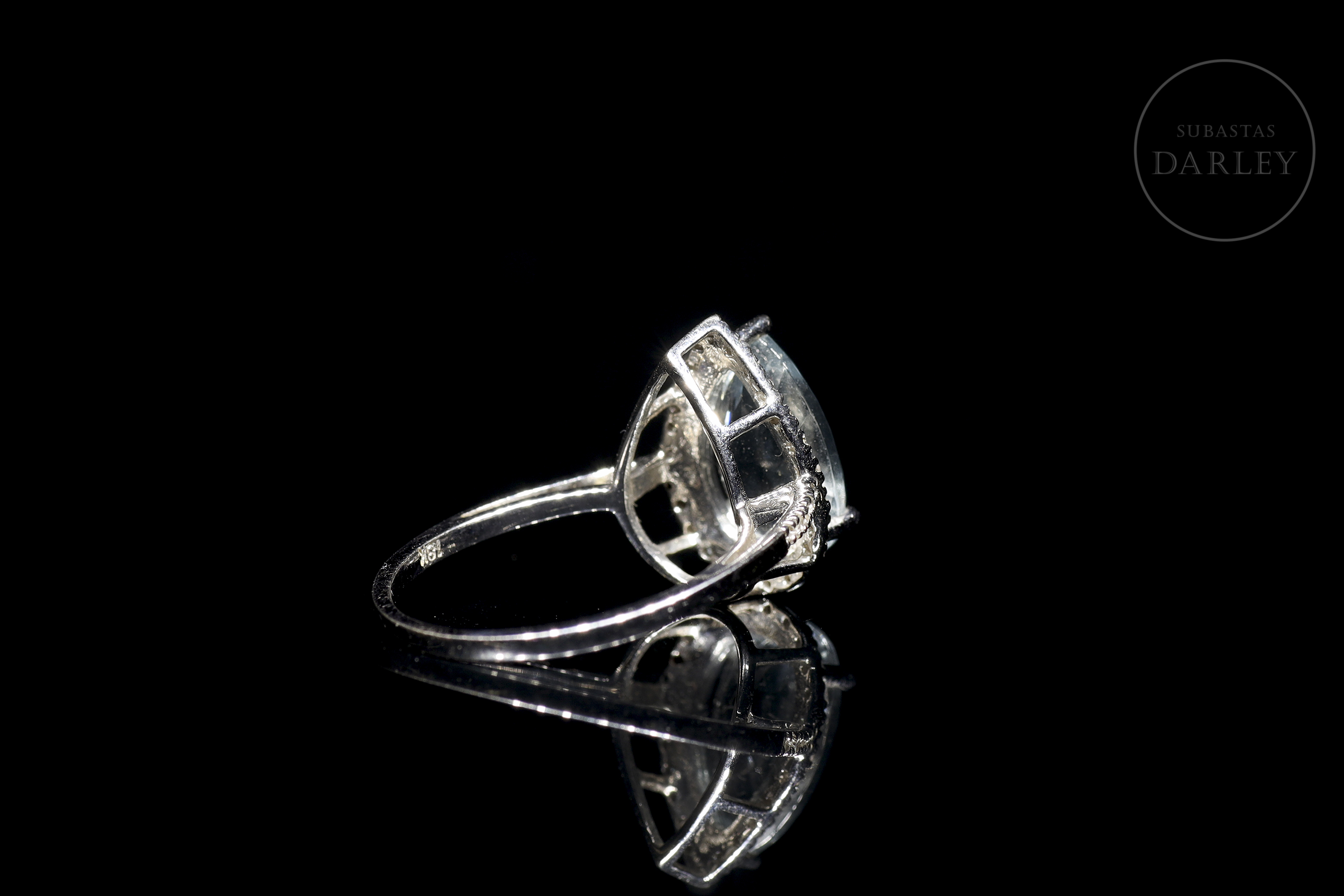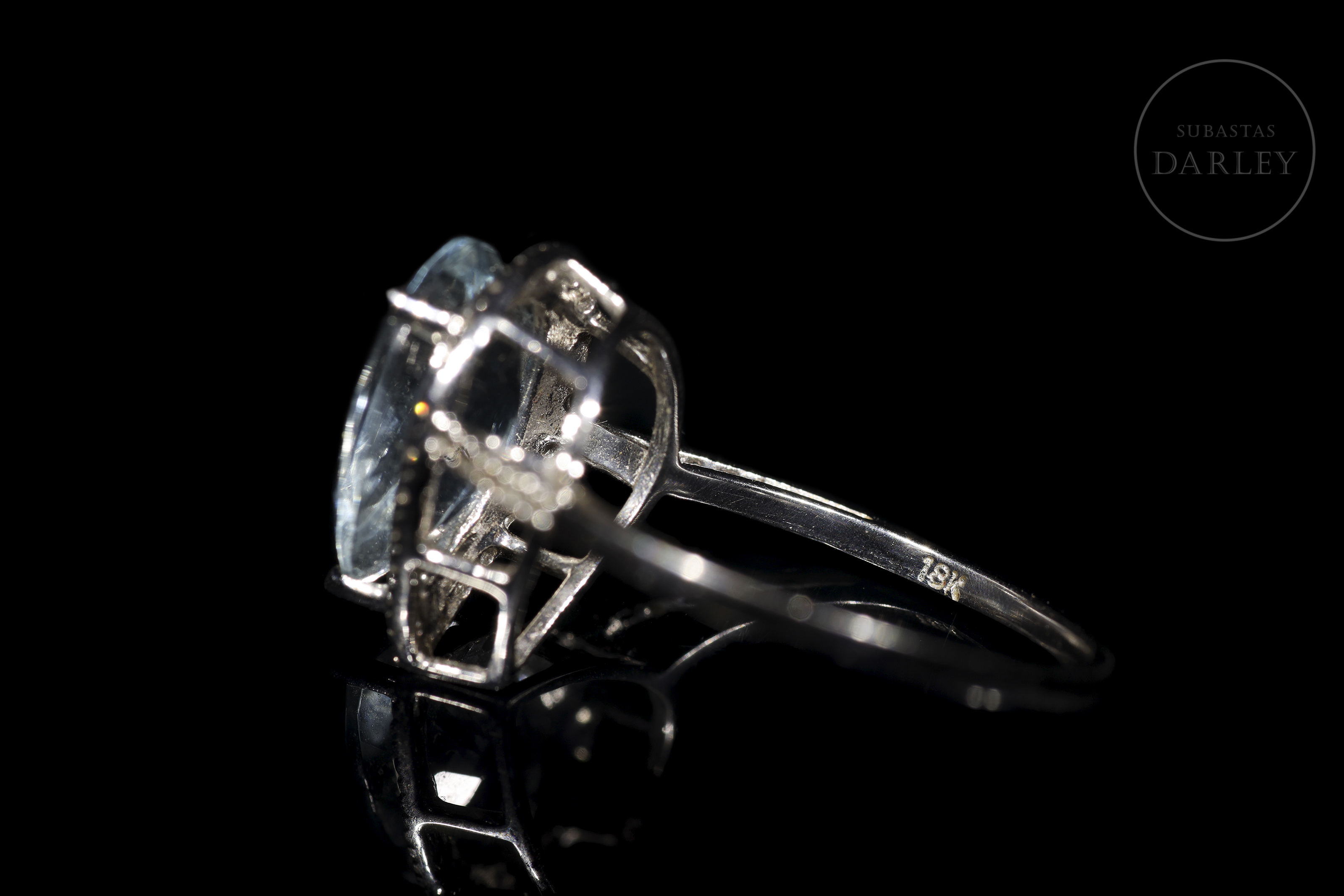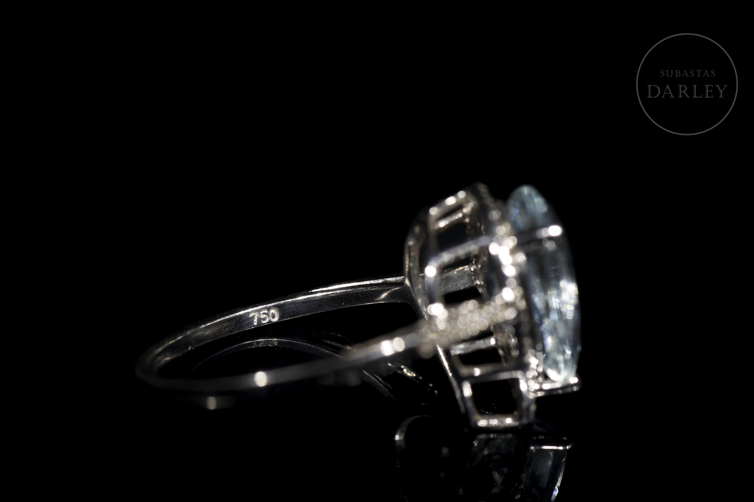 Anillo en oro blanco de 18 kt con aguamarina y diamantes