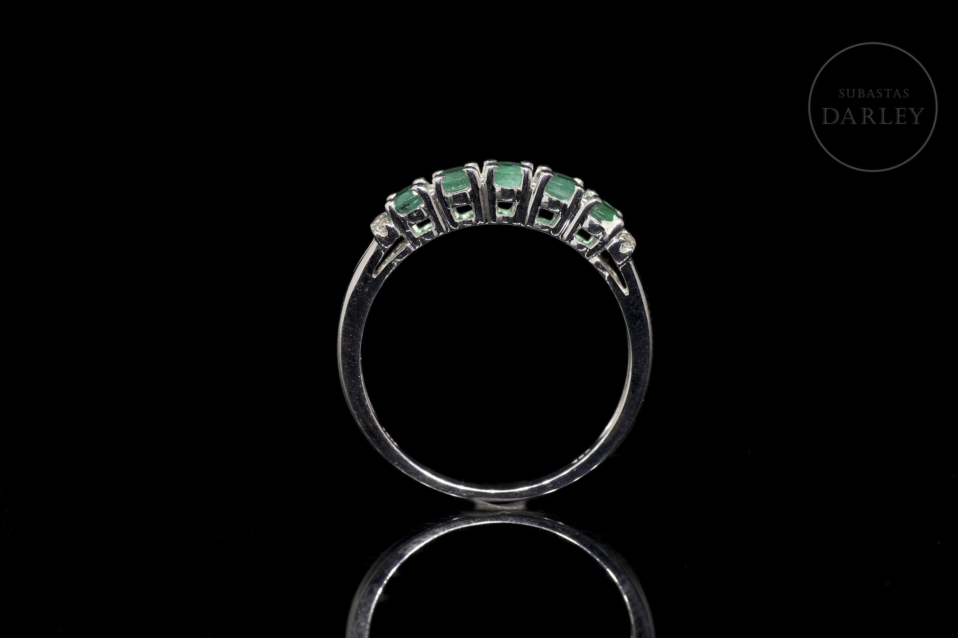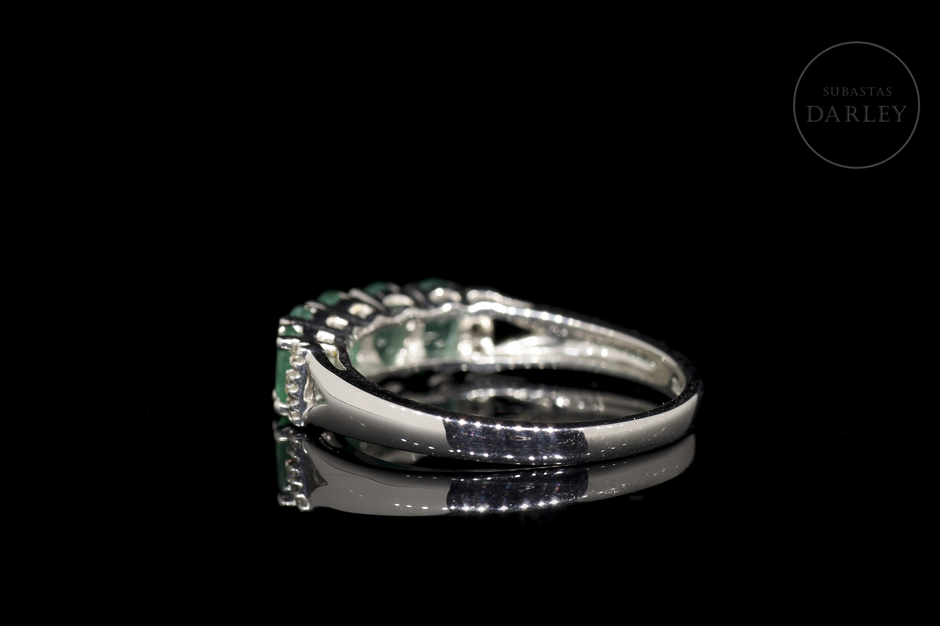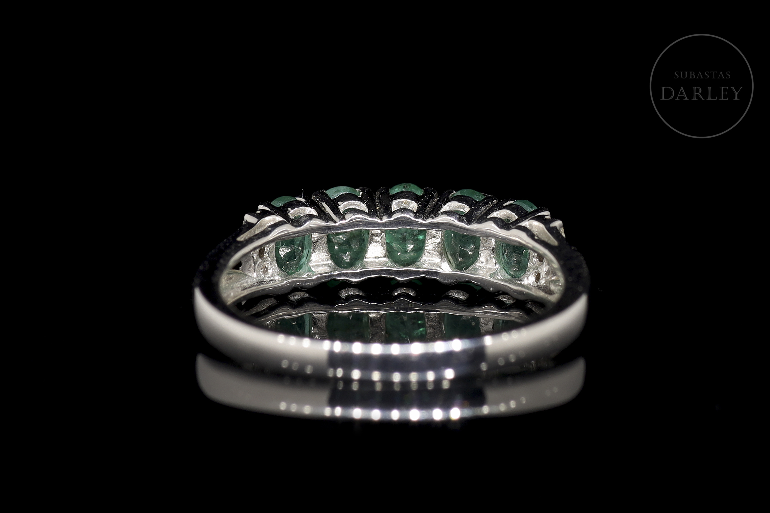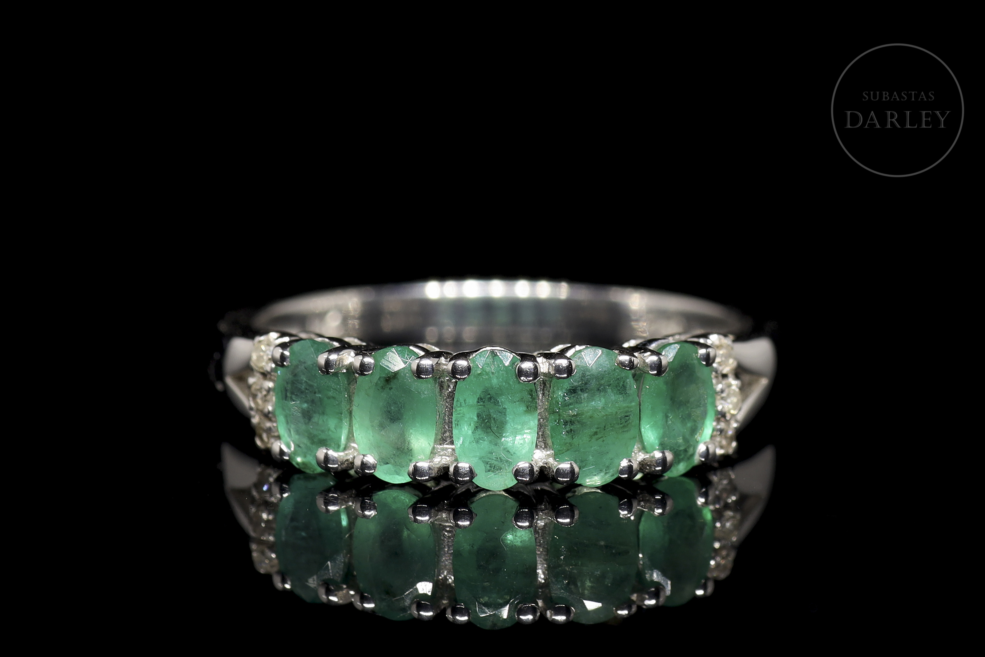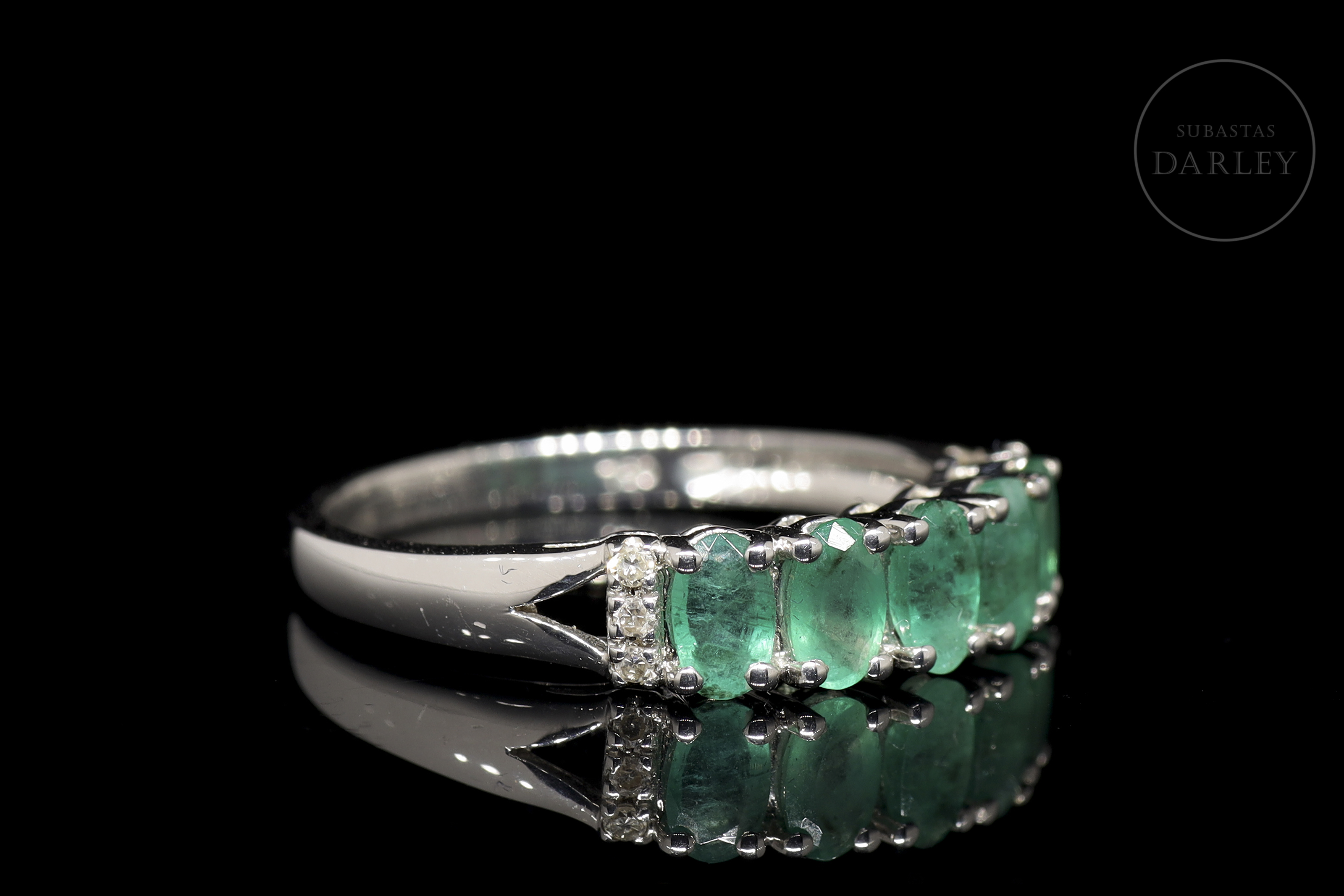 Anillo en oro blanco de 18k con esmeralda y diamantes
