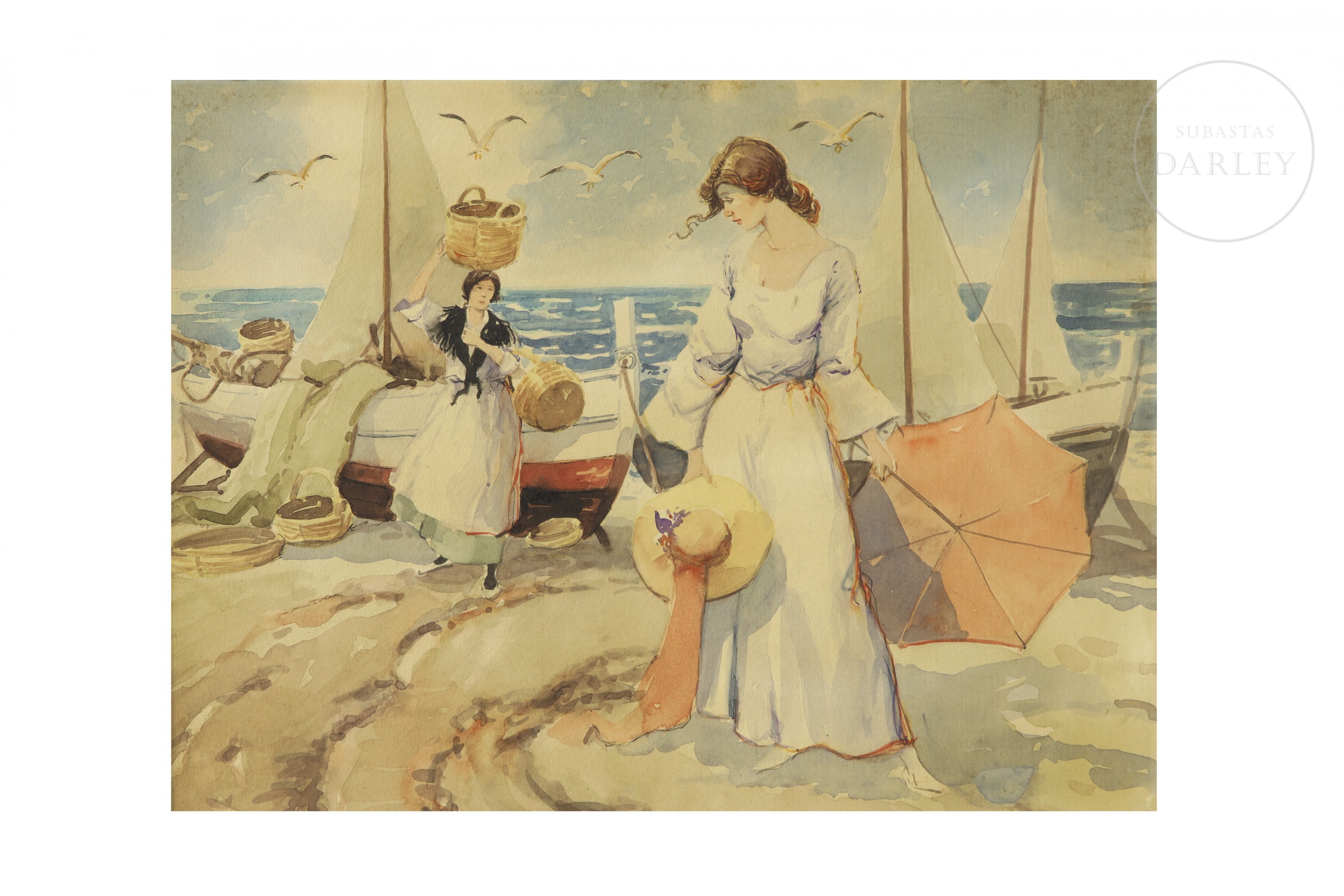 Arturo Pitarch Pechuán "Dos mujeres en la playa", 1910