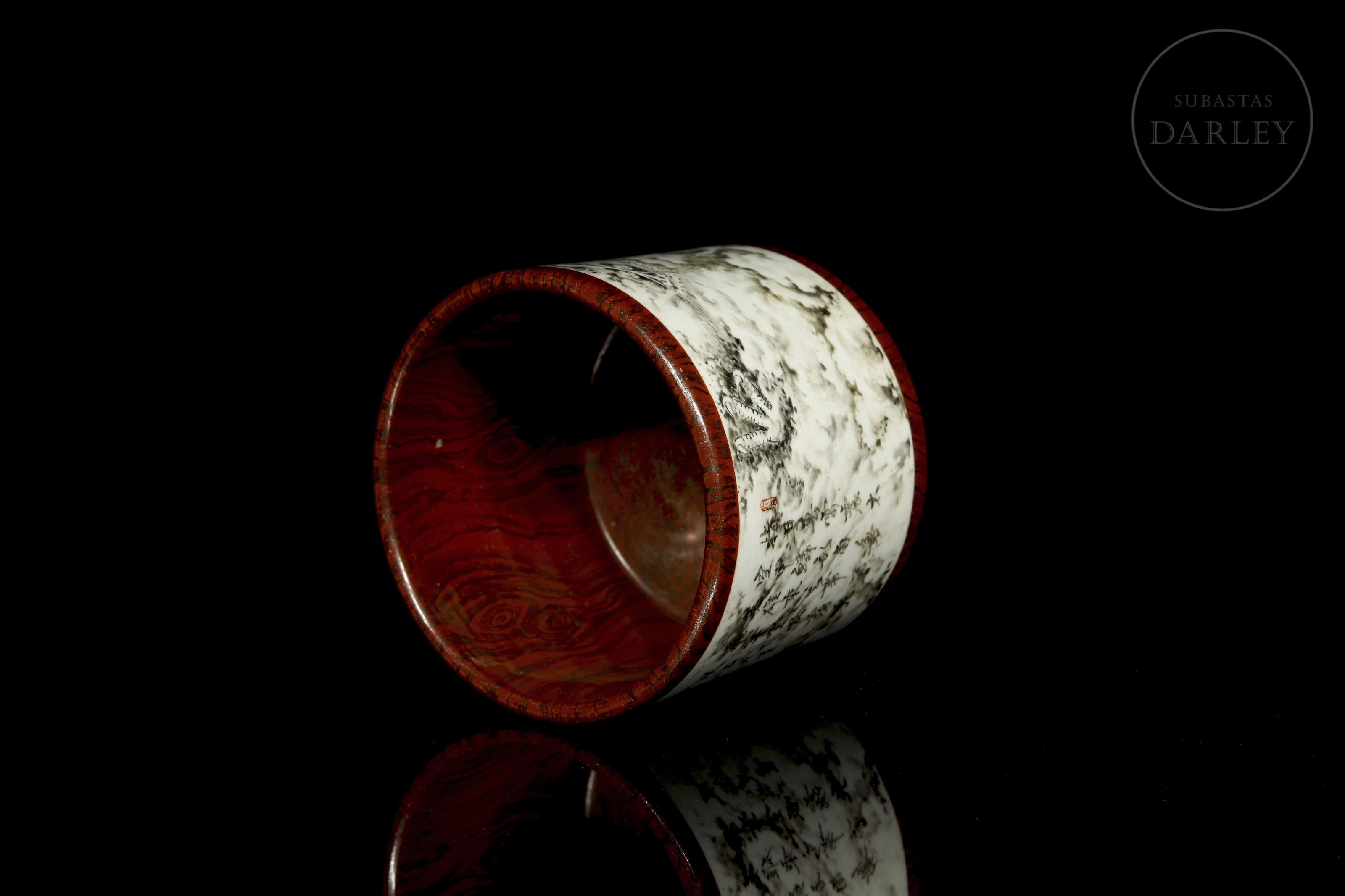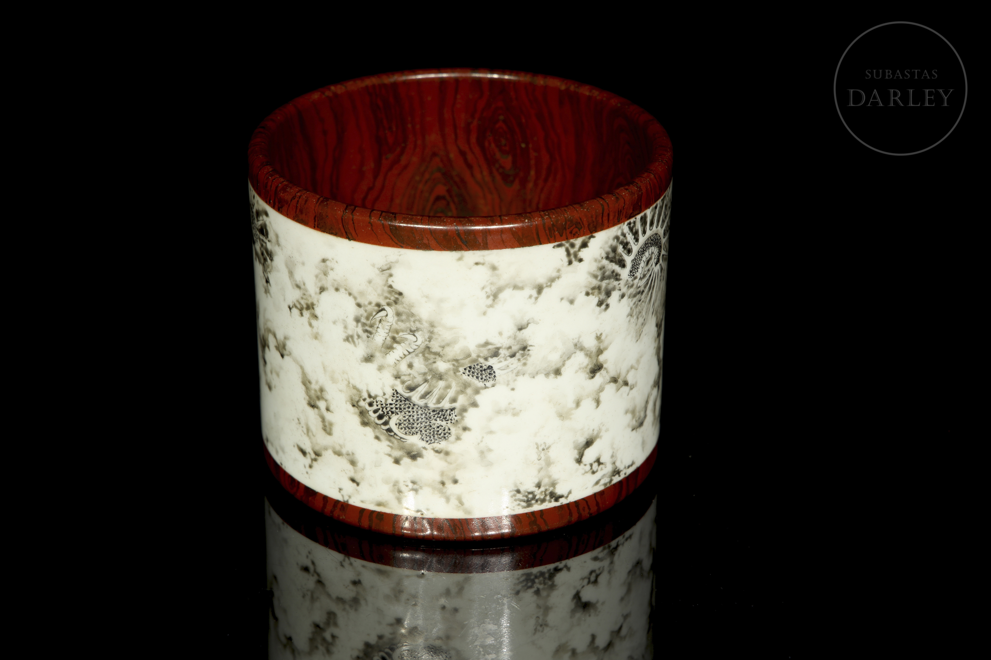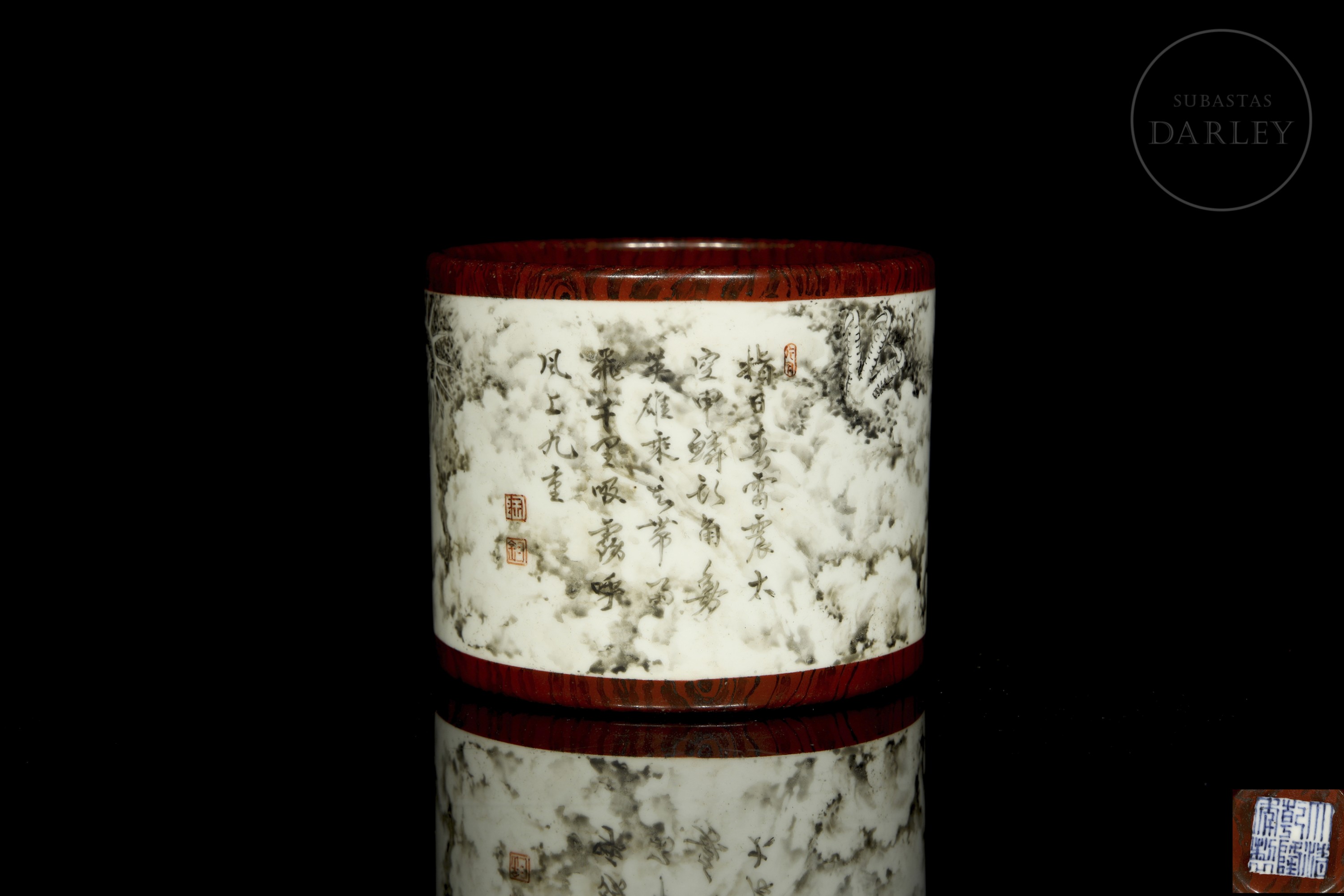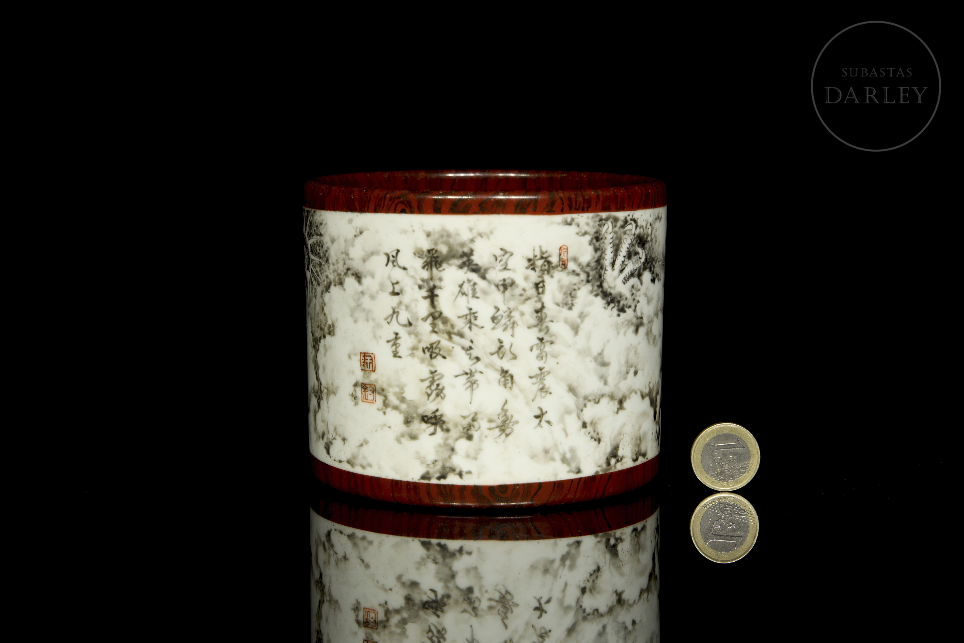 Bote de porcelana para pinceles "Poema", con sello Qianlong