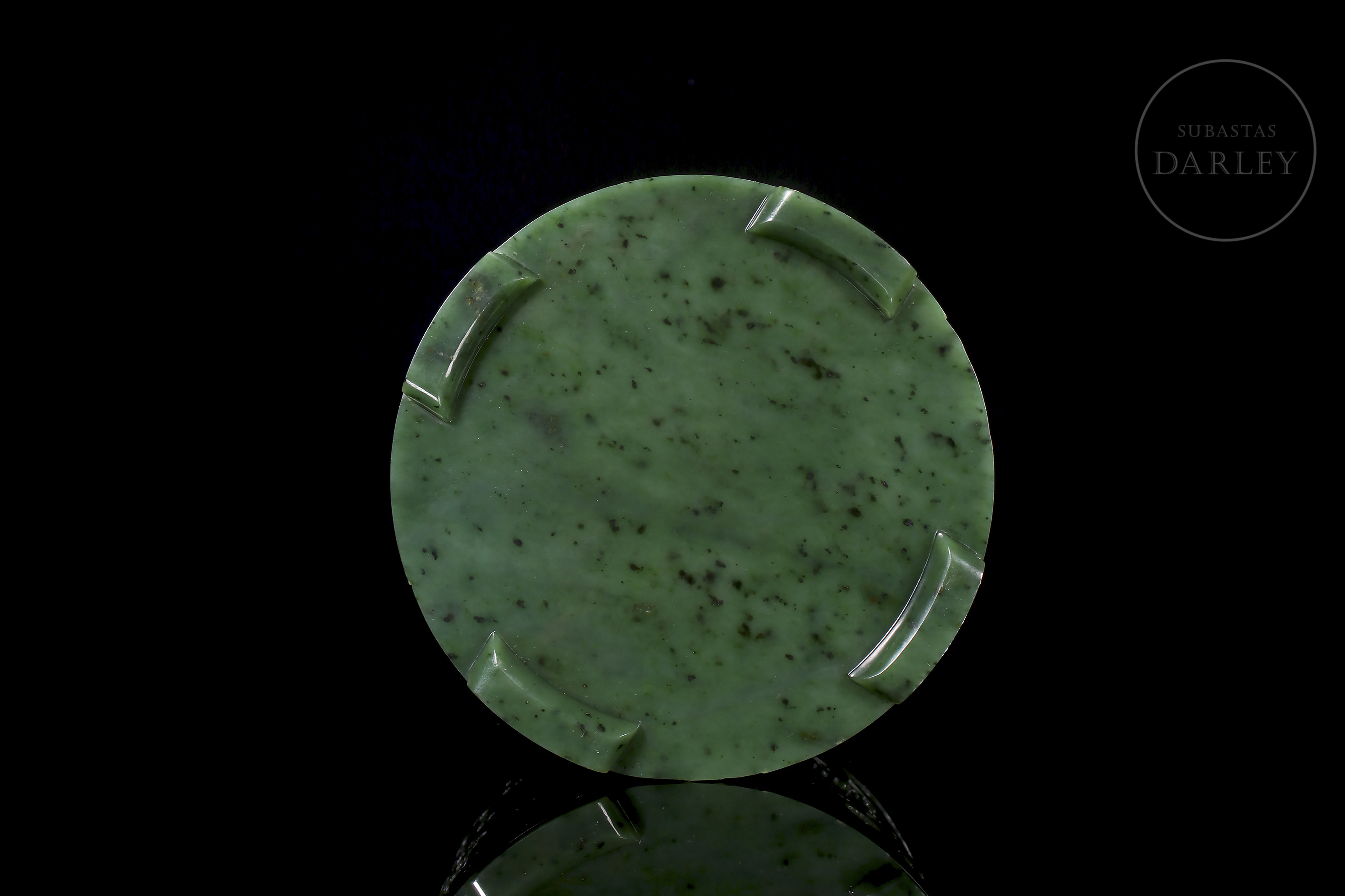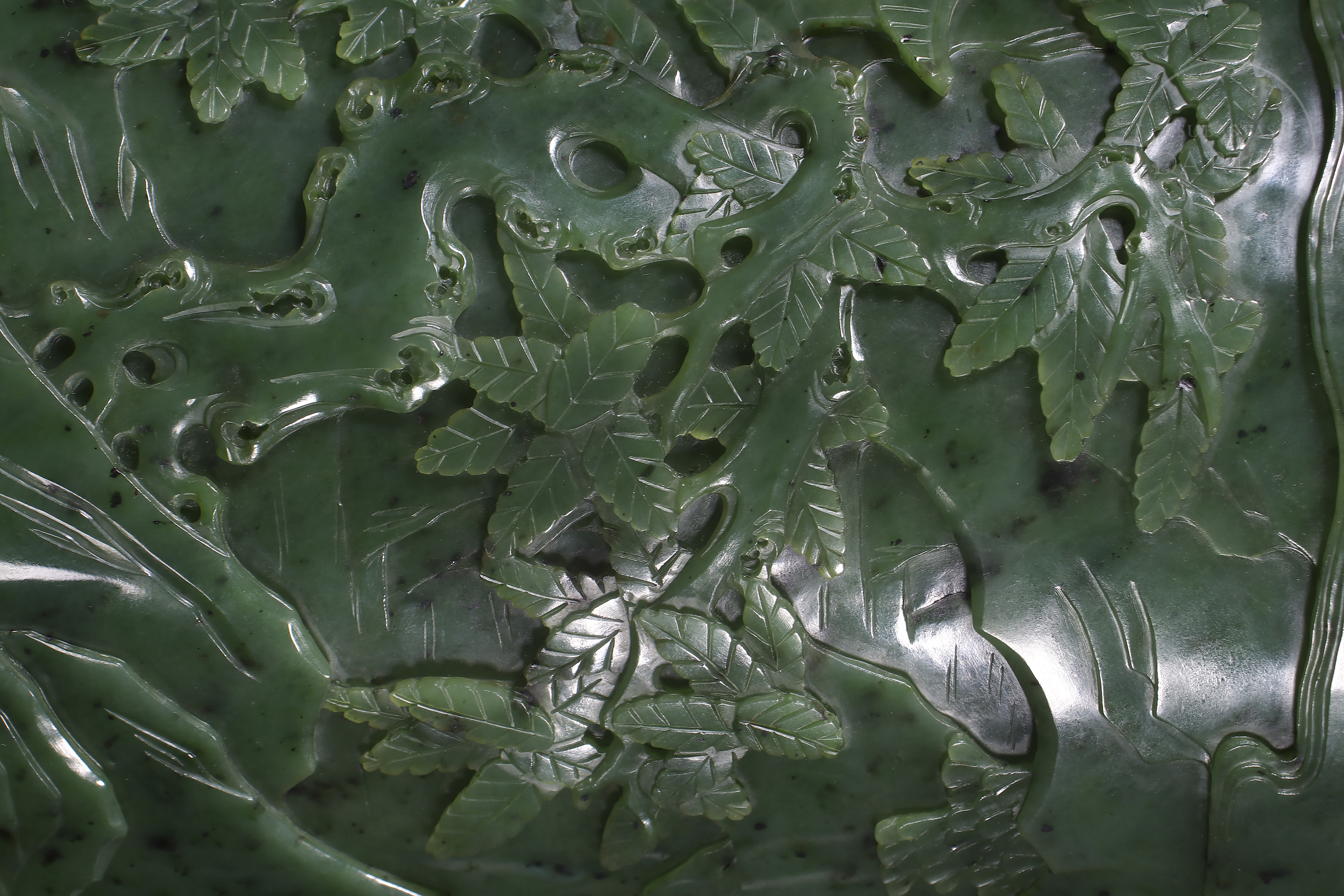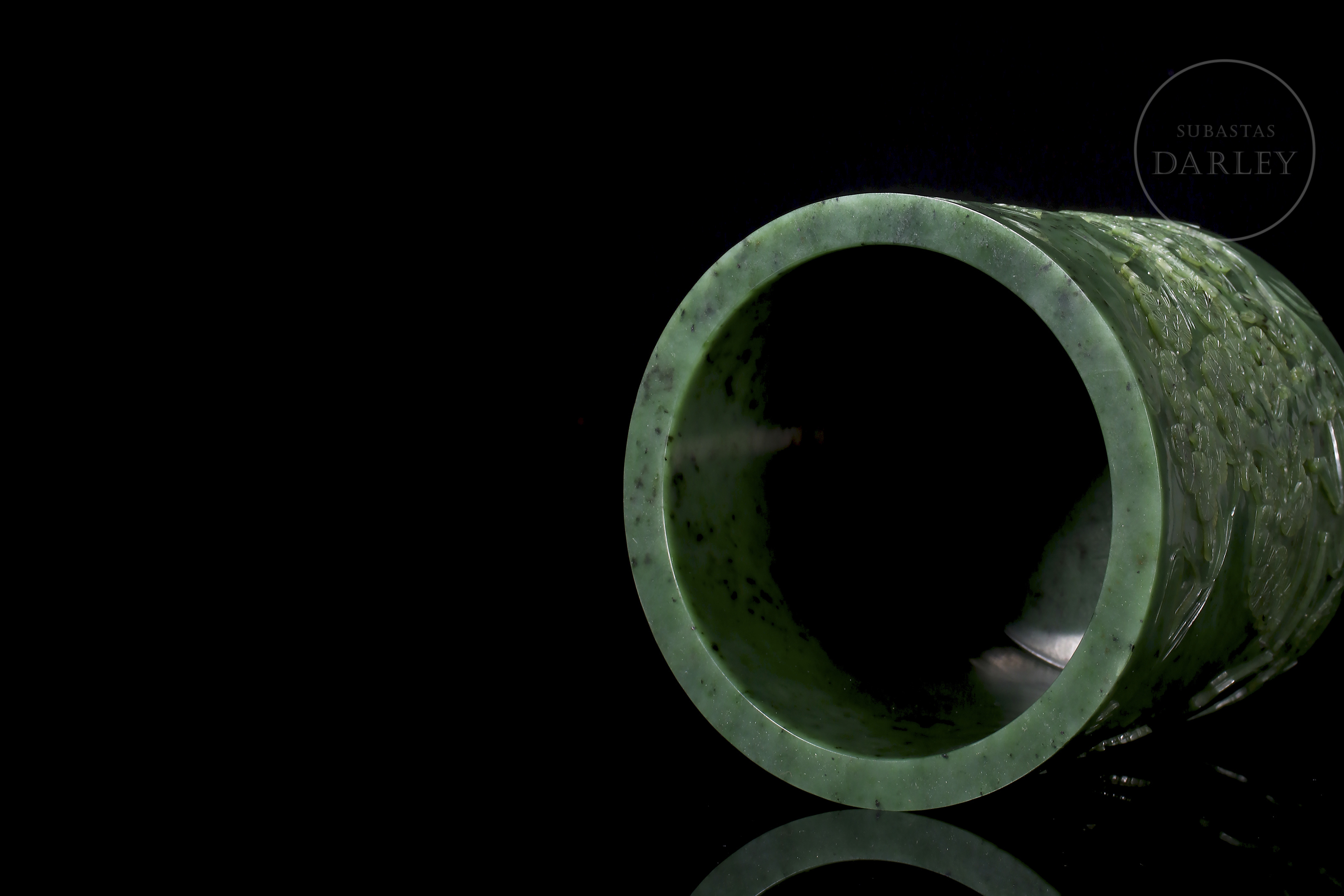 Bote para pinceles de jade verde espinaca de Hetian "Paisaje", dinastía Qing