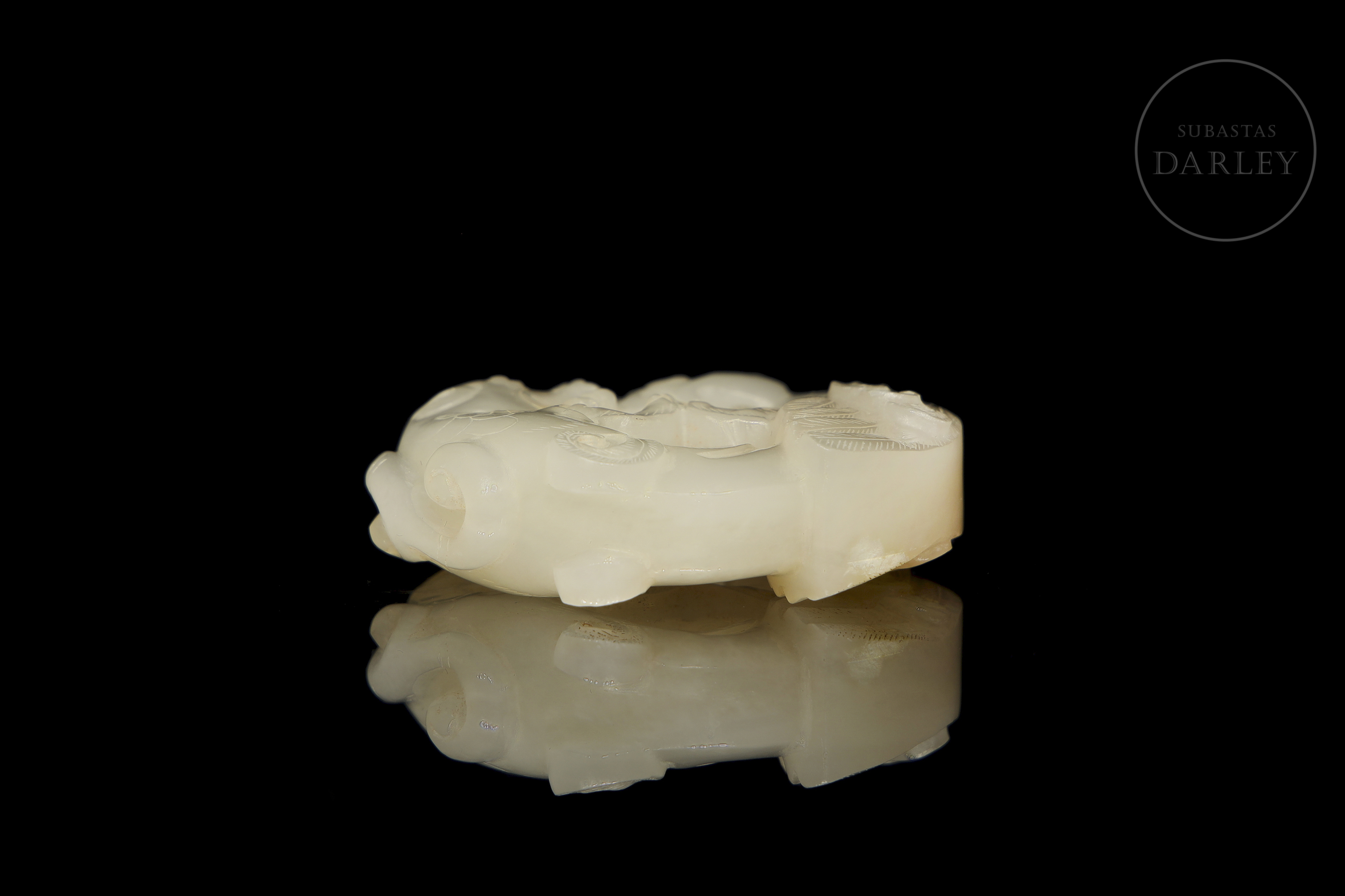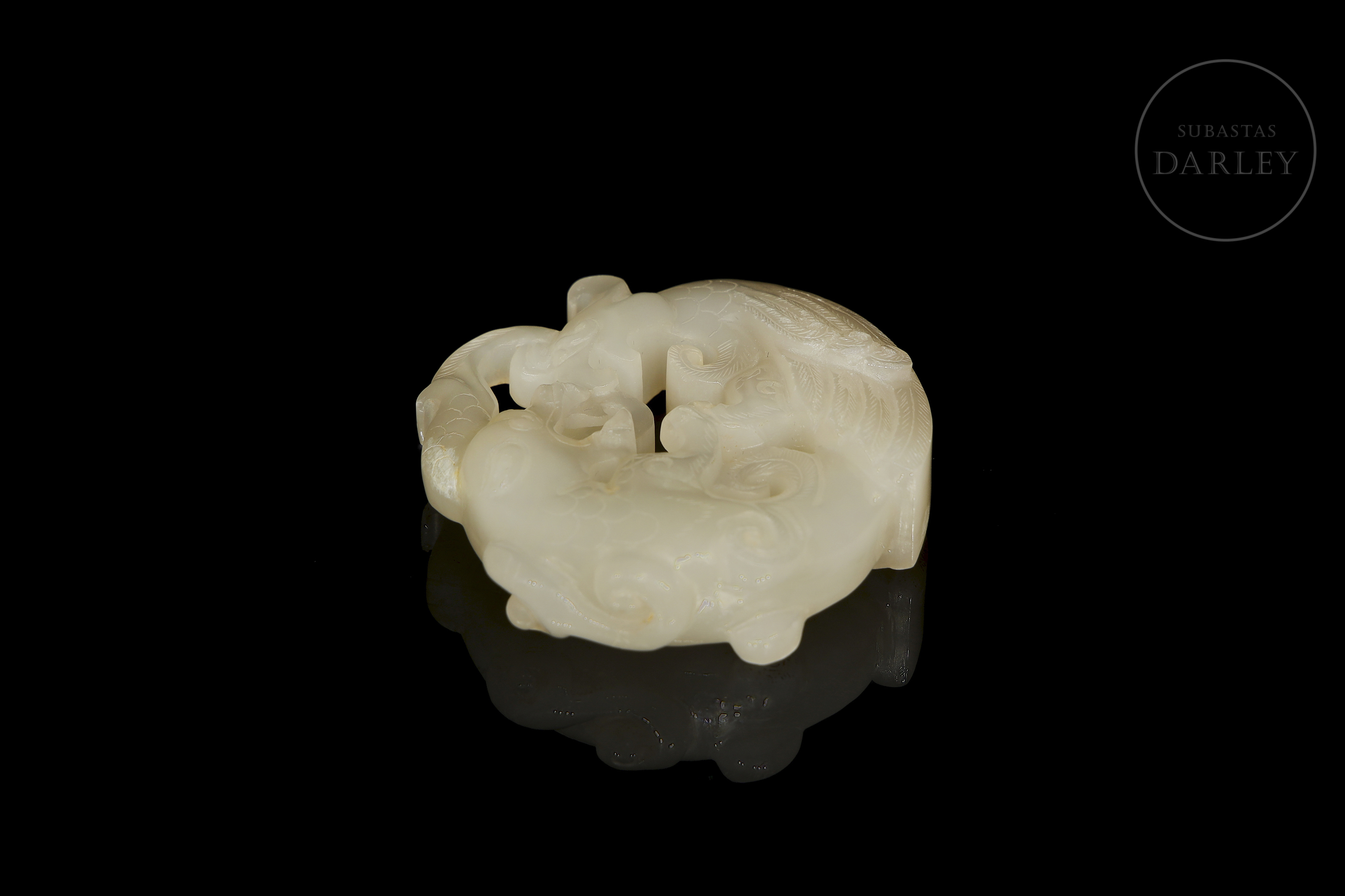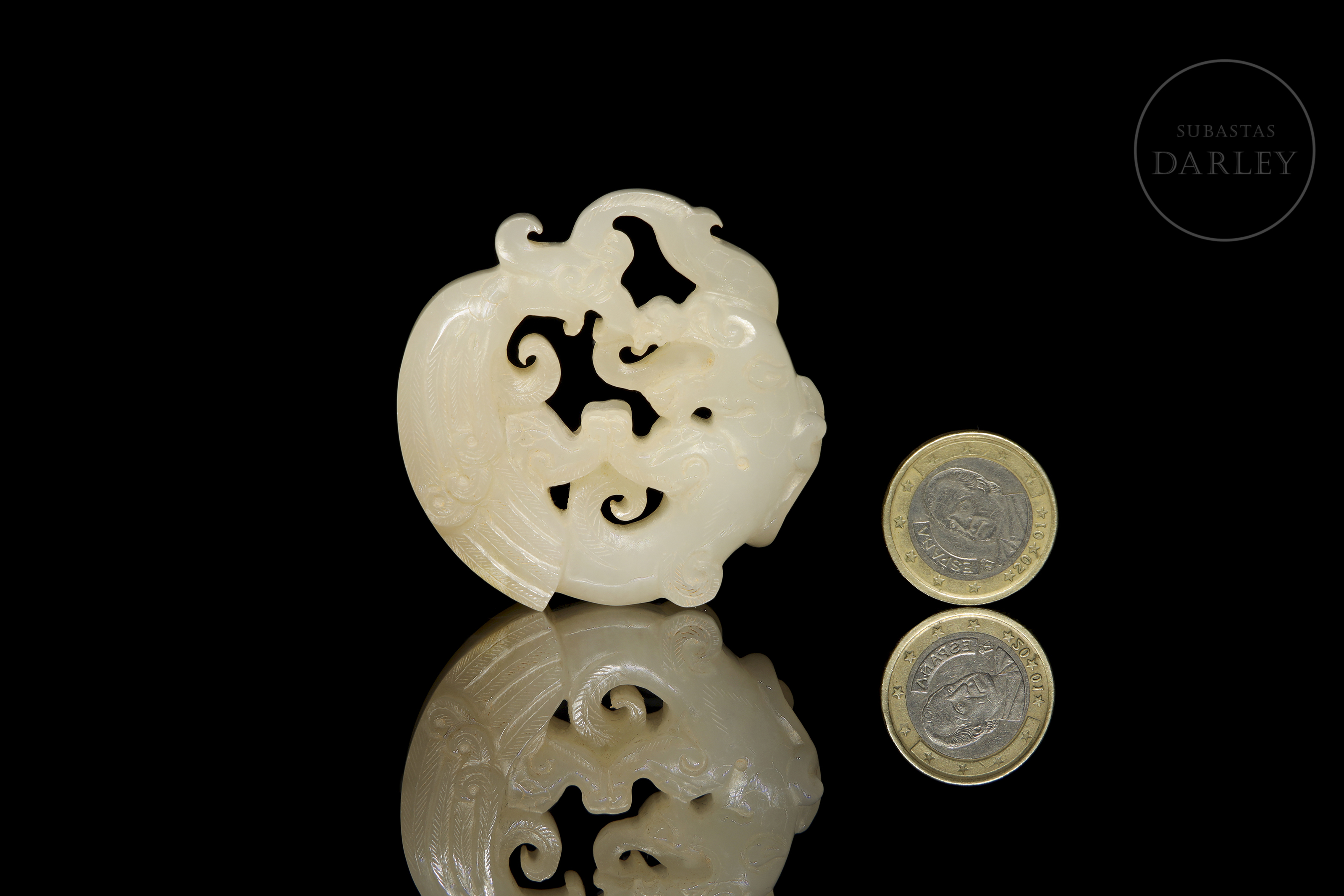 Colgante de jade blanco "Fénix y dragón", dinastía Han del Este