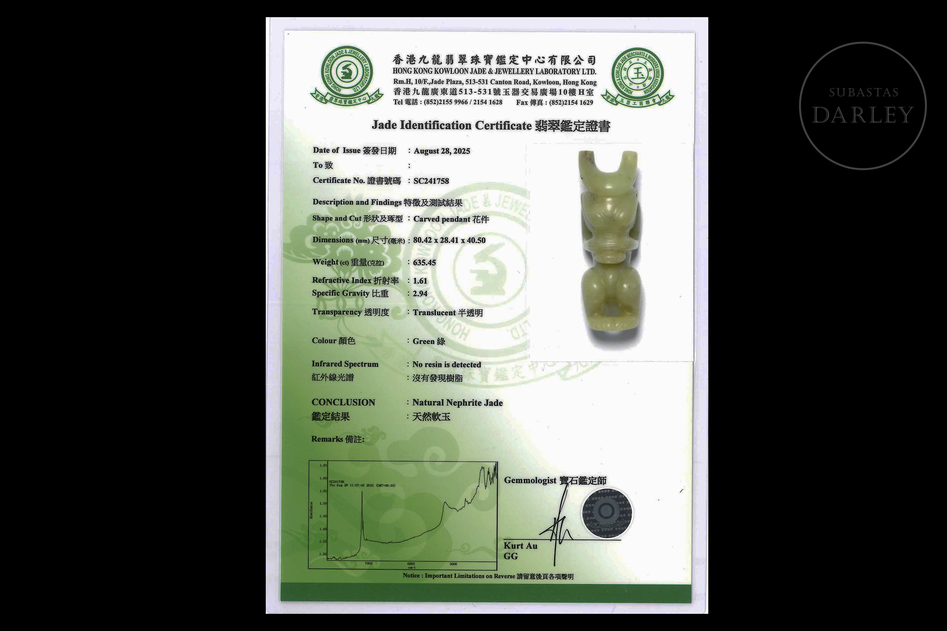 Con Certificado de Identificación SC241758, realizado por Hong King Kowloon Jade & Jewellery Laboratory LTD (August 28, 2025).