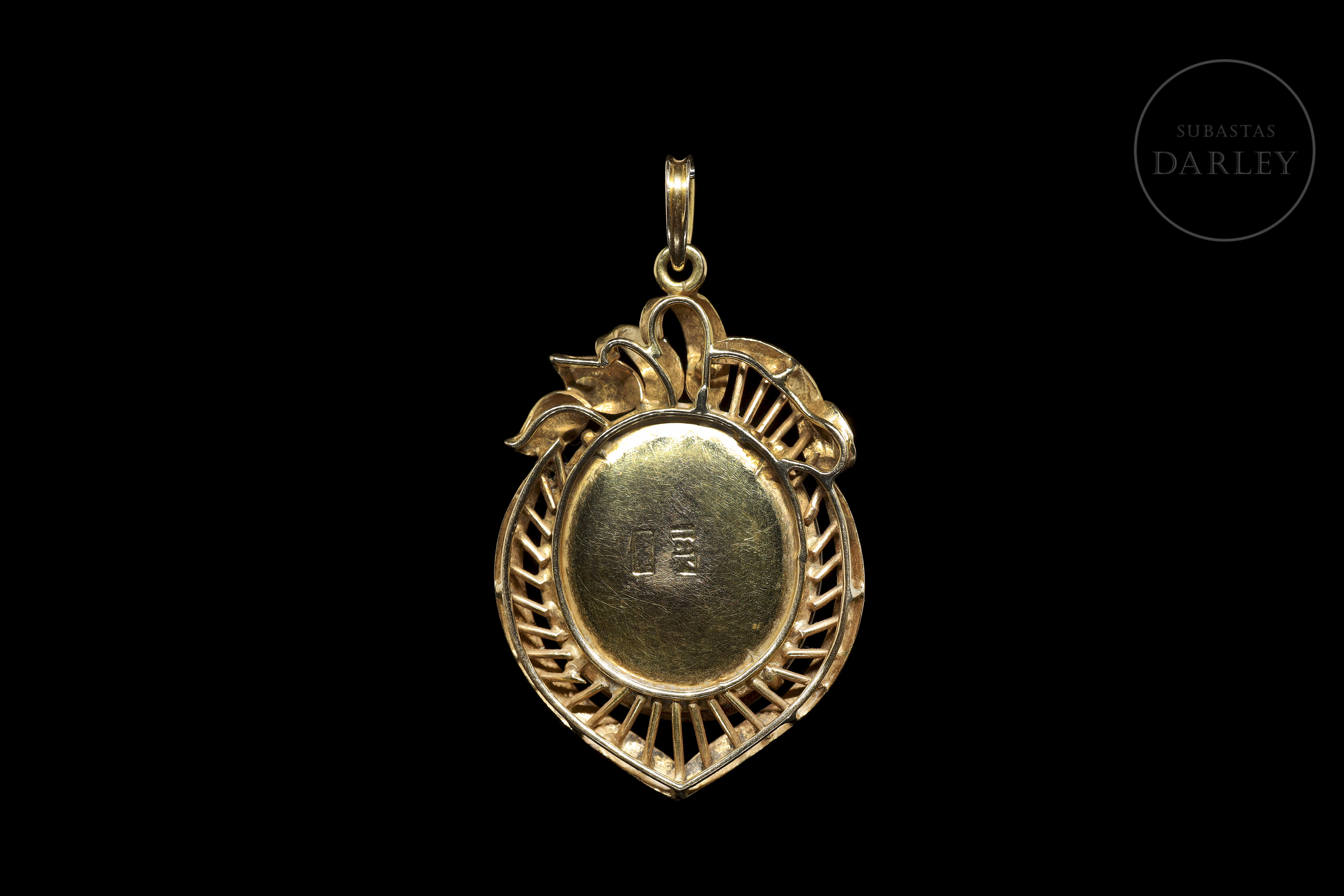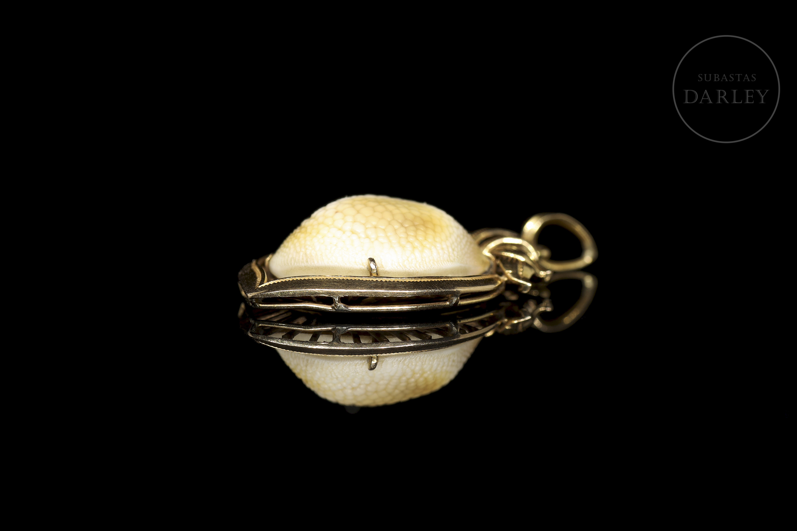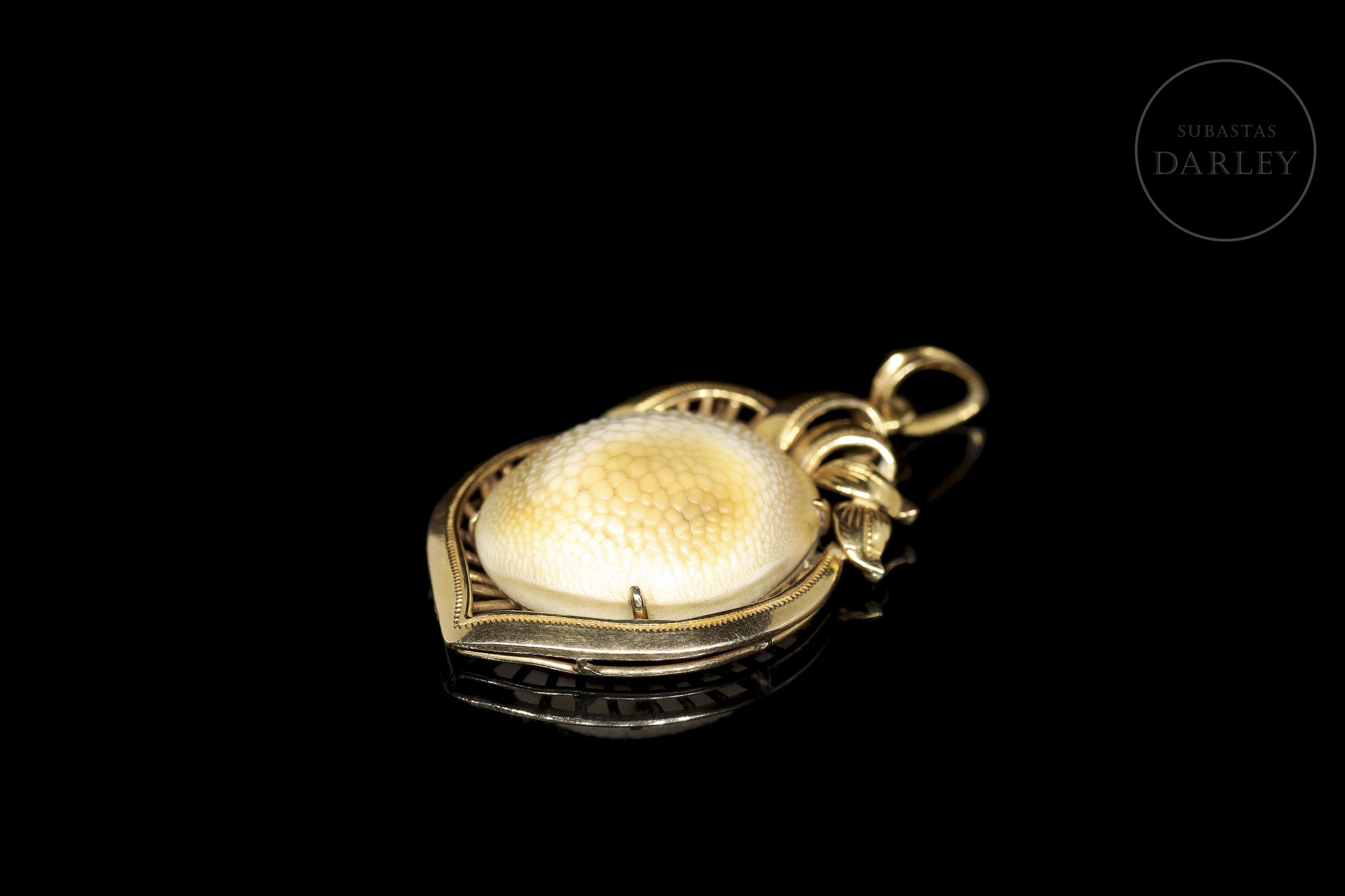 Colgante de oro amarillo de 18 kt con concha, estilo Eduardino