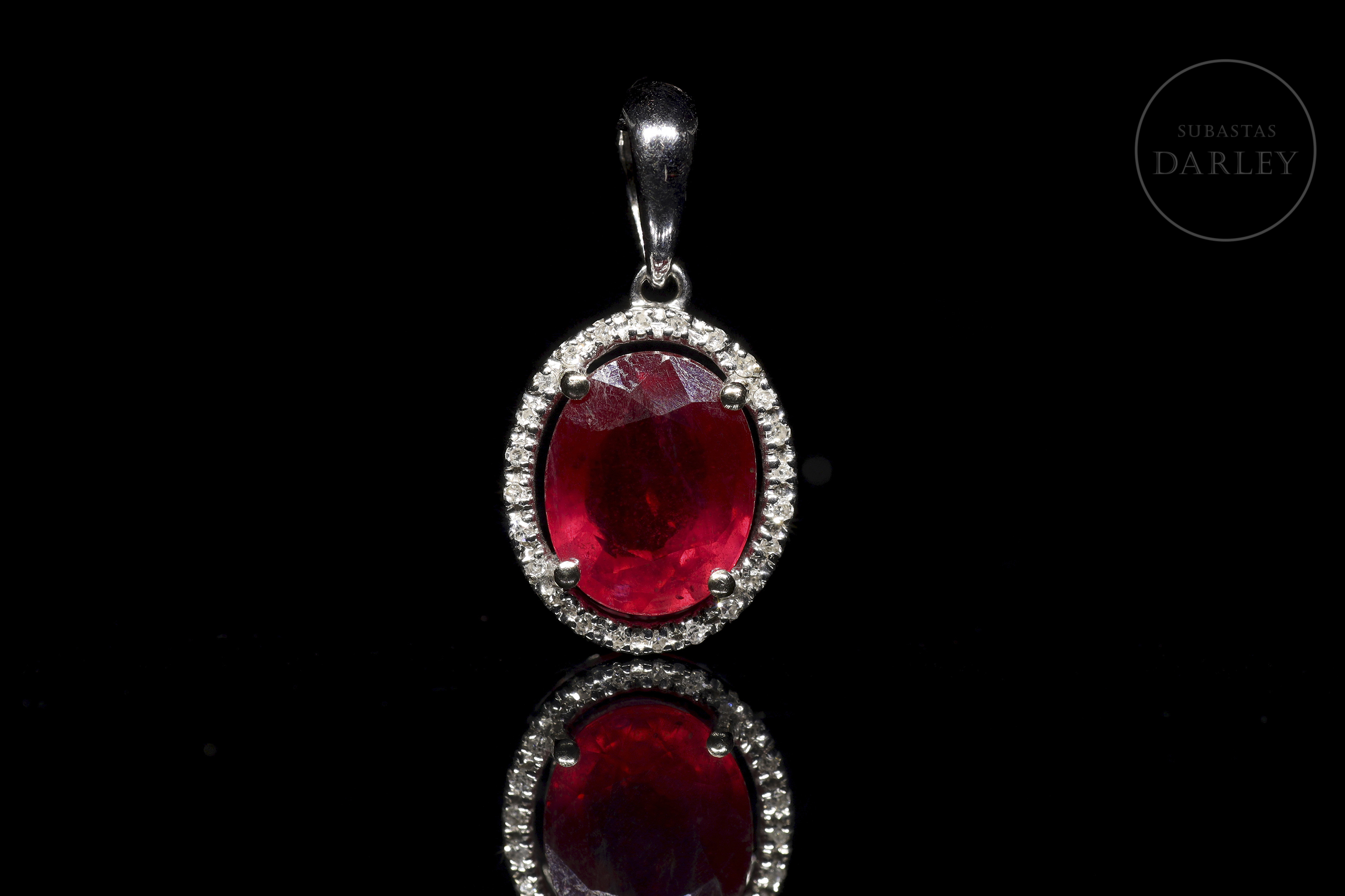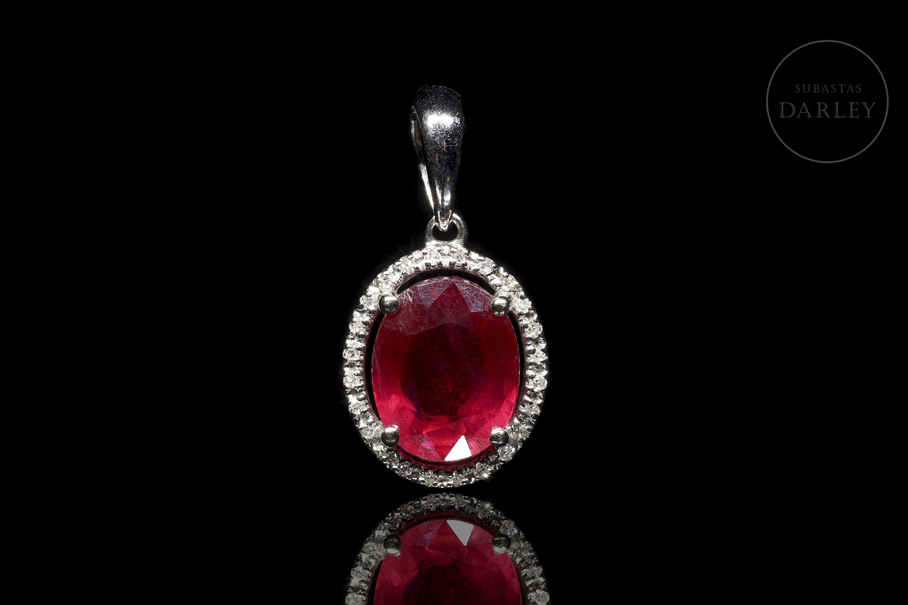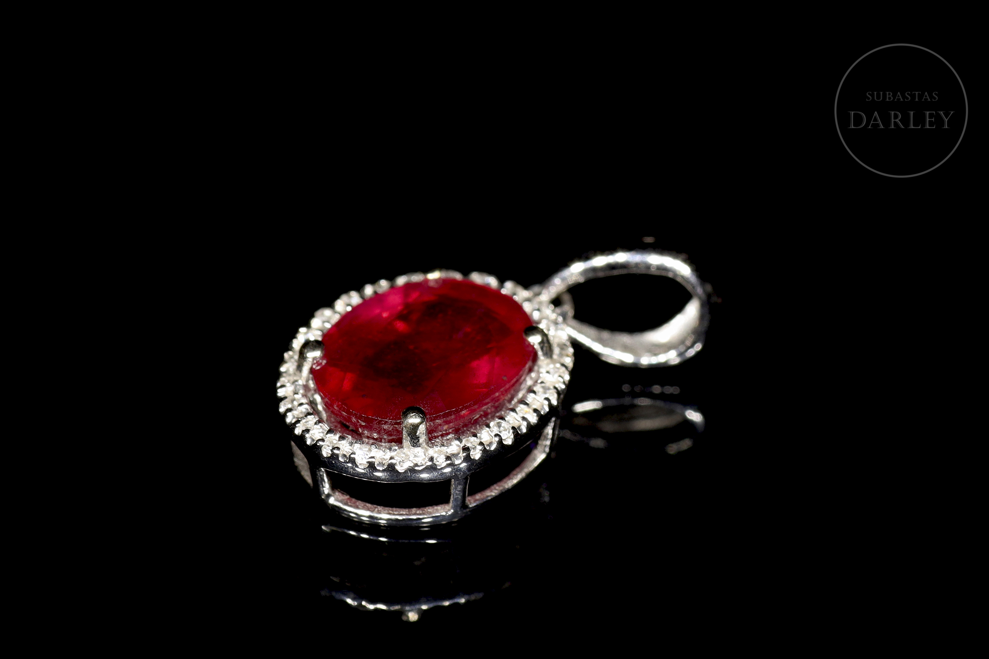 Colgante de oro blanco de 18k con rubí y diamantes