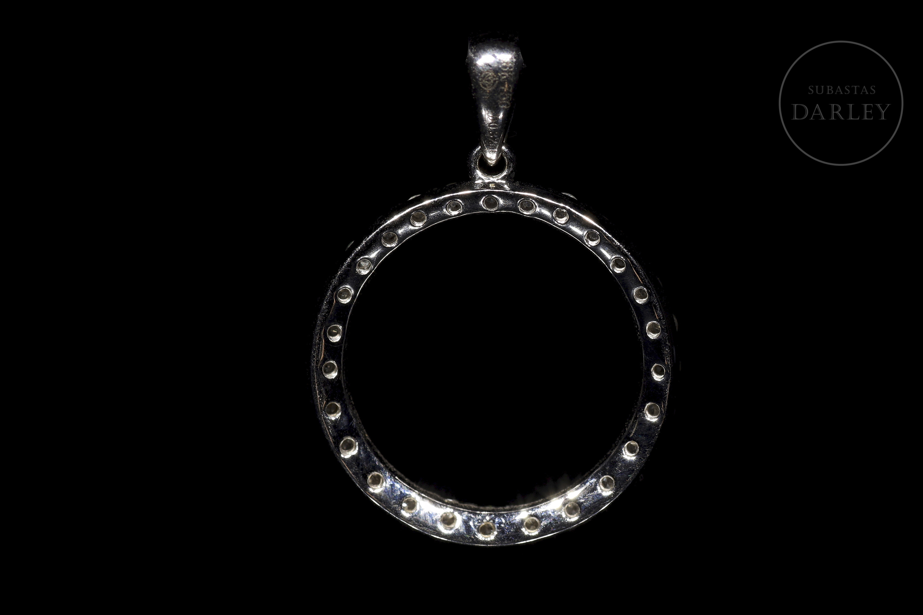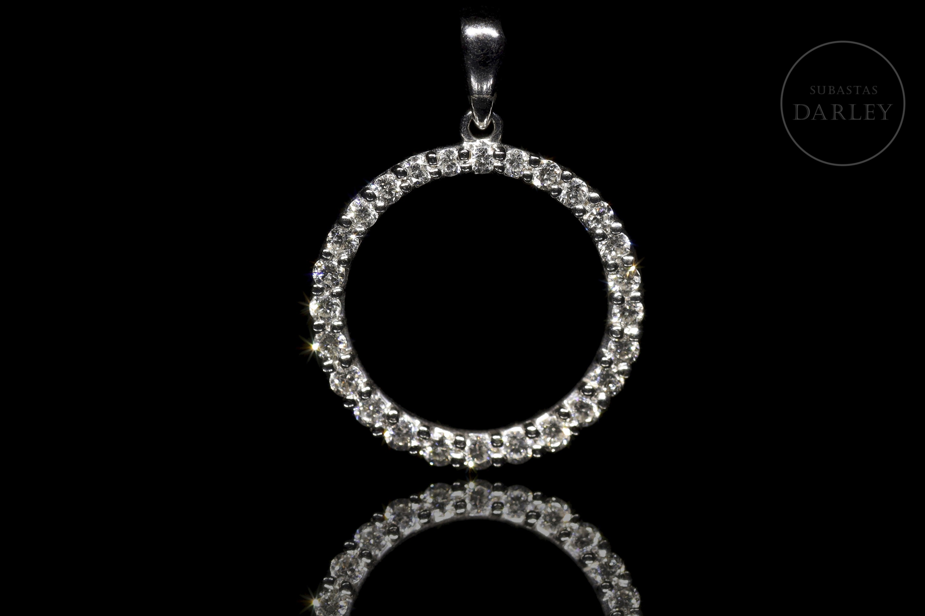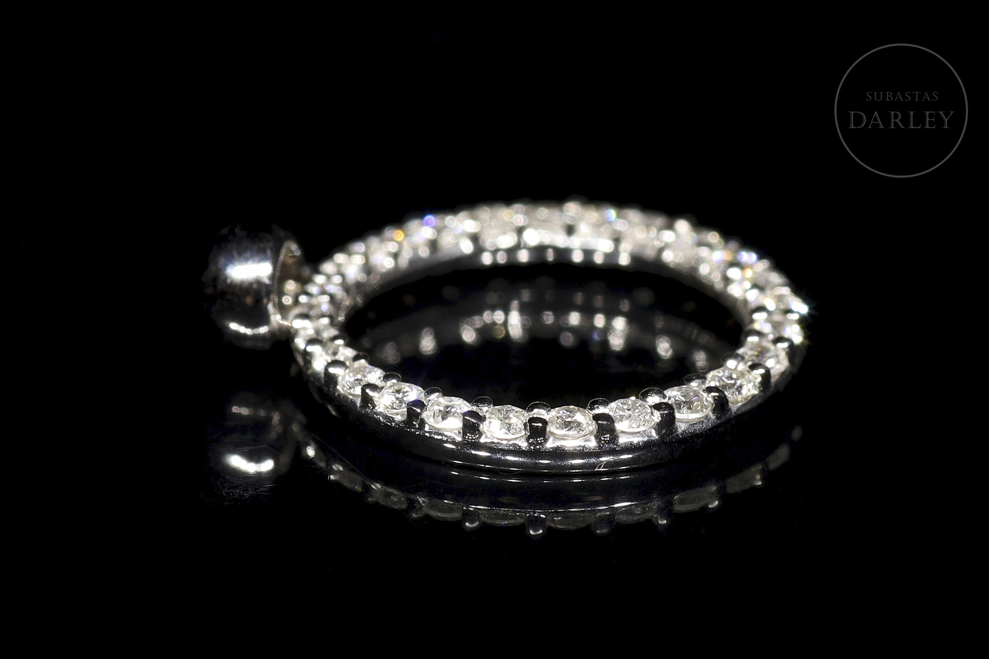 Oro blanco de 18 kt. Sencillo modelo con frontis de aro cubierto por 26 diamantes, talla brillante de peso total 0,32 cts. Asa de cuña lisa.