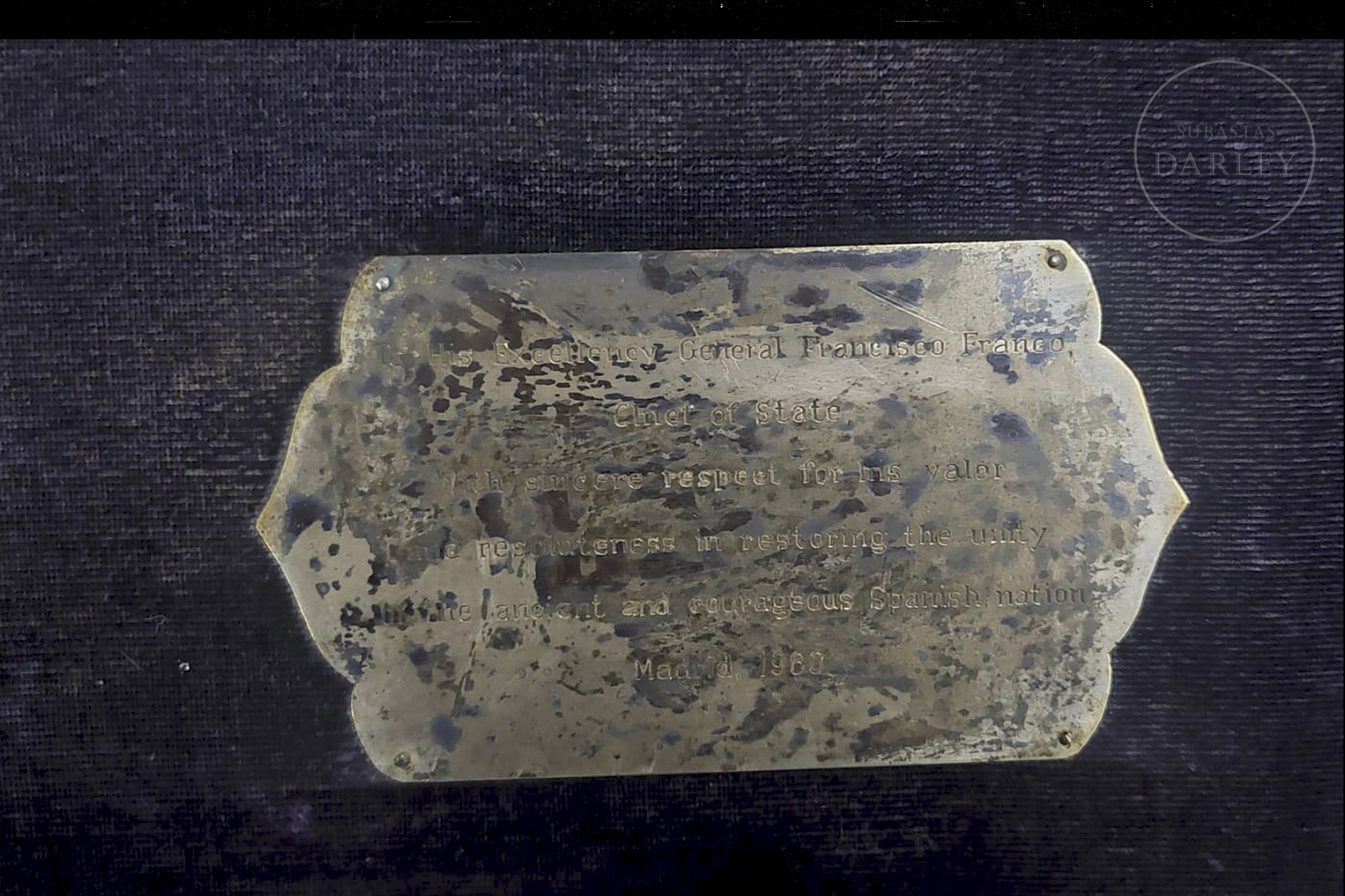 Perteneció al despacho del Palacio del Prado del General Francisco Franco, durante los años 60, hasta ser regalado por Coronel José Segoviano Gómez, al padre del propietario actual.