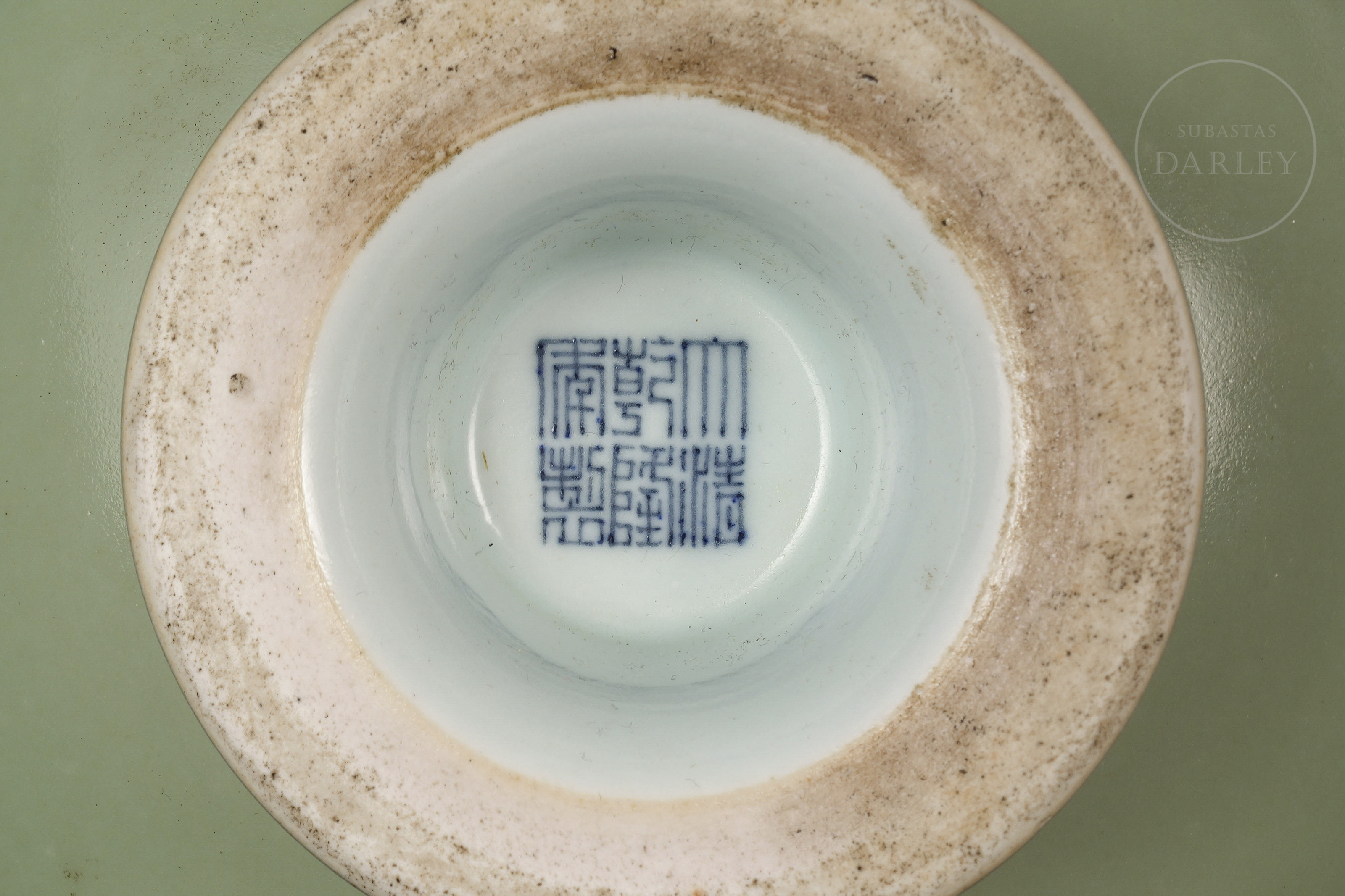 Cuenco con pie de porcelana "Sohu", con sello Qianlong