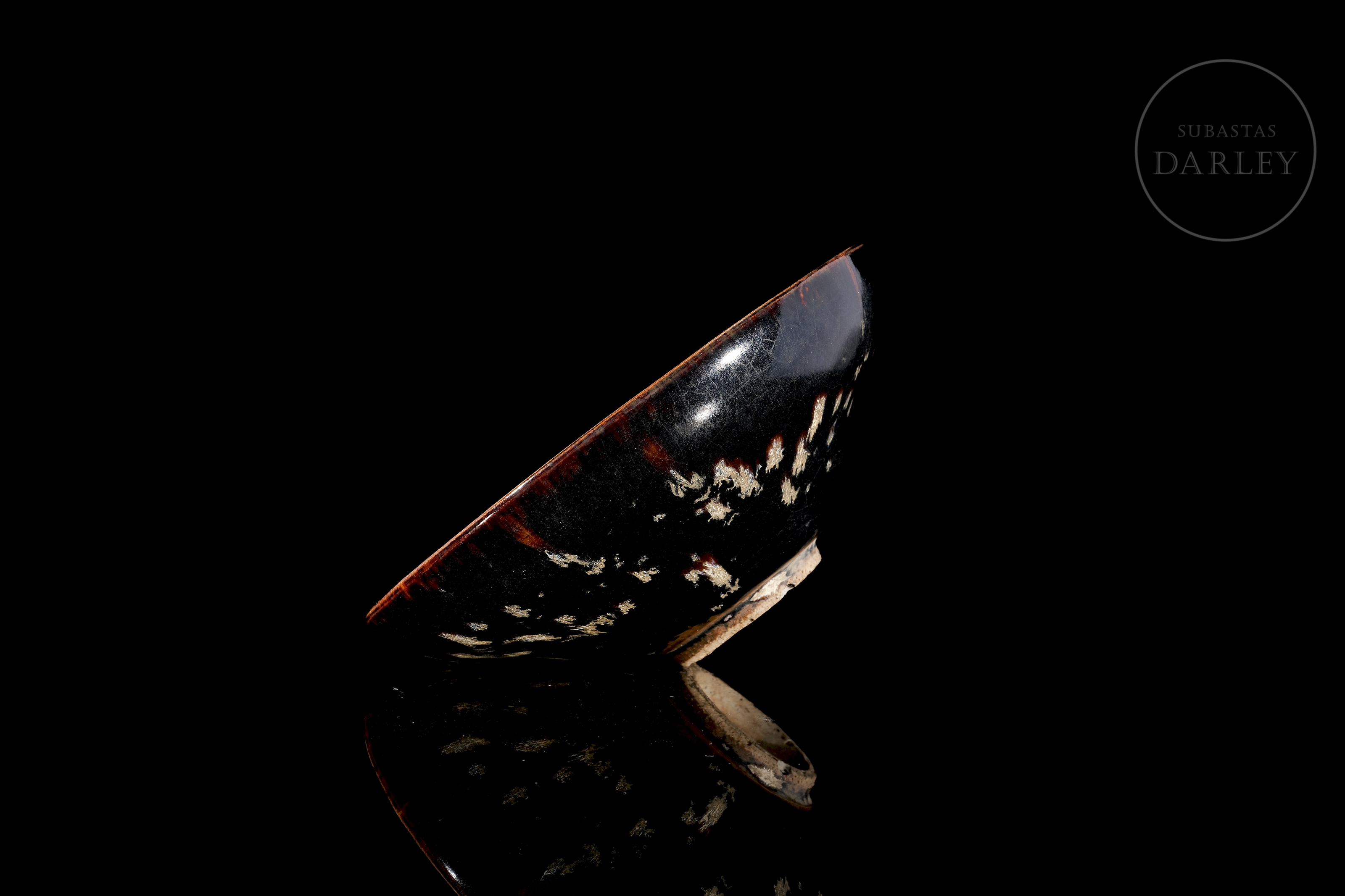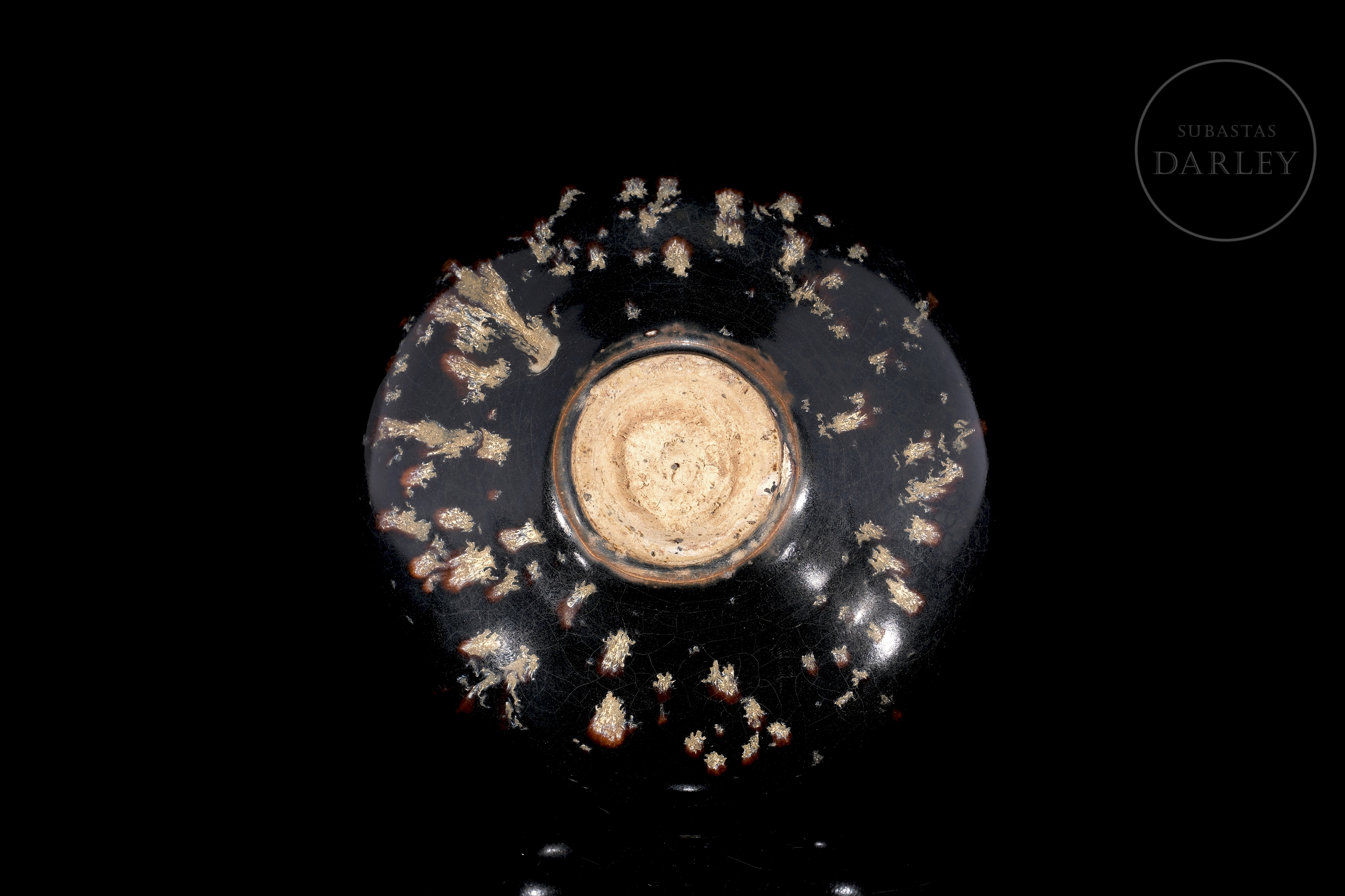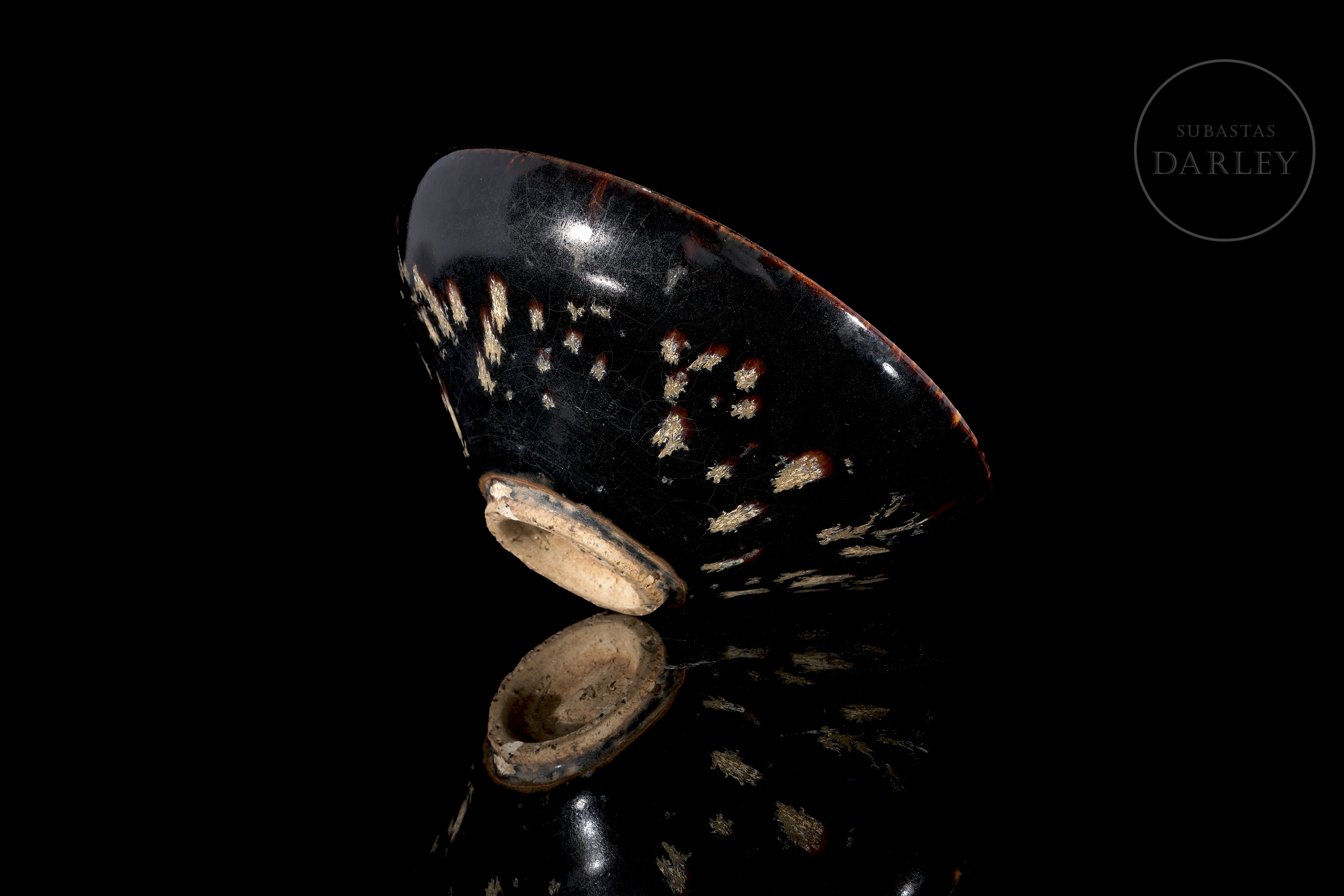 Cuenco de cerámica con esmalte negro del horno Jizhou, estilo Song