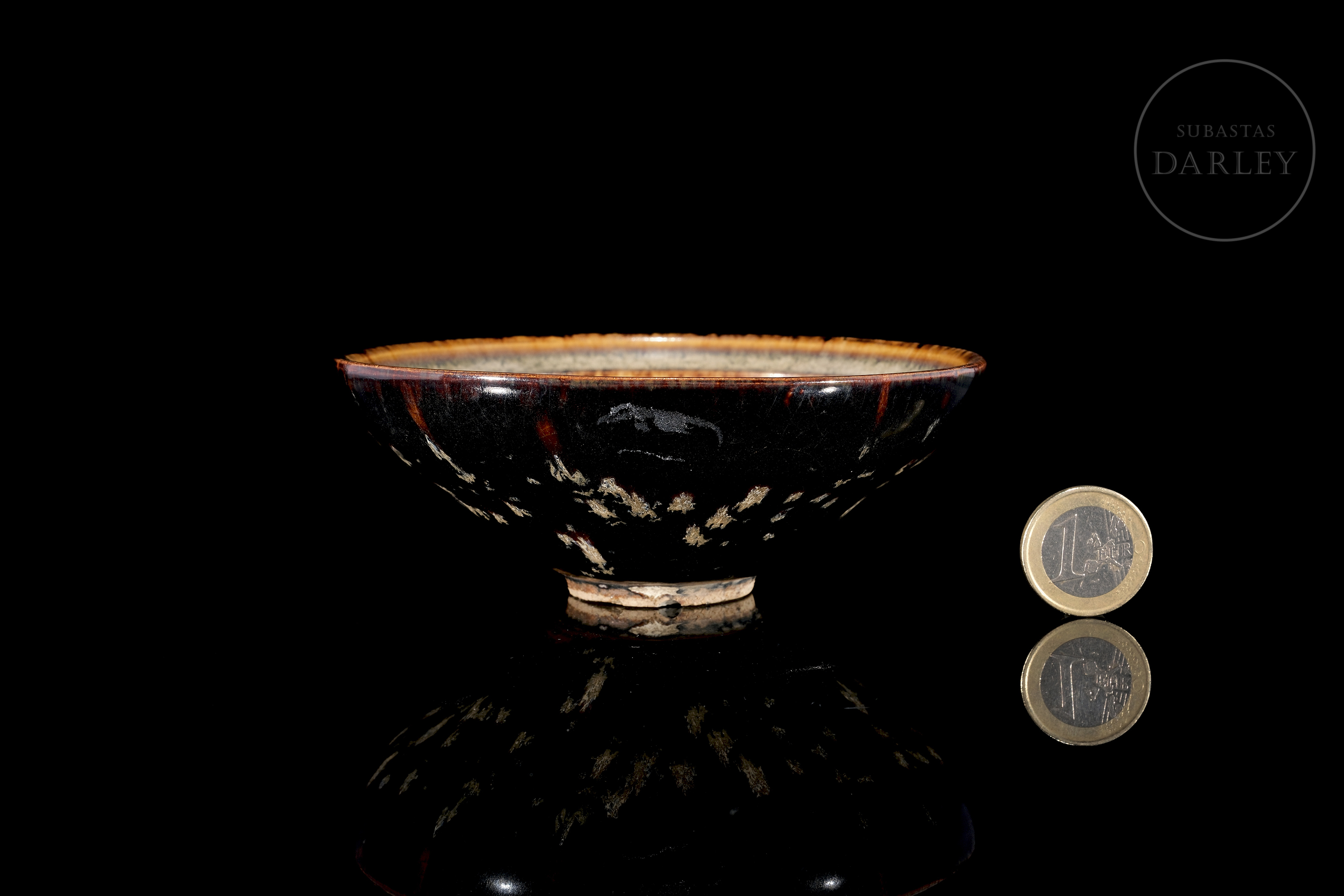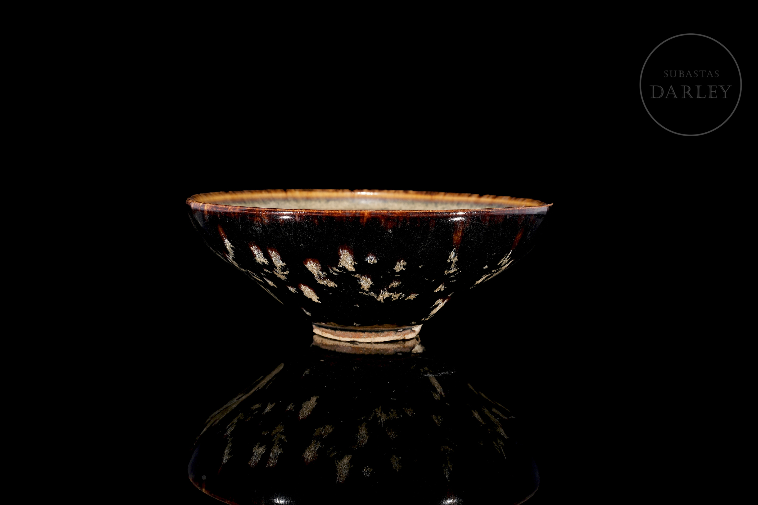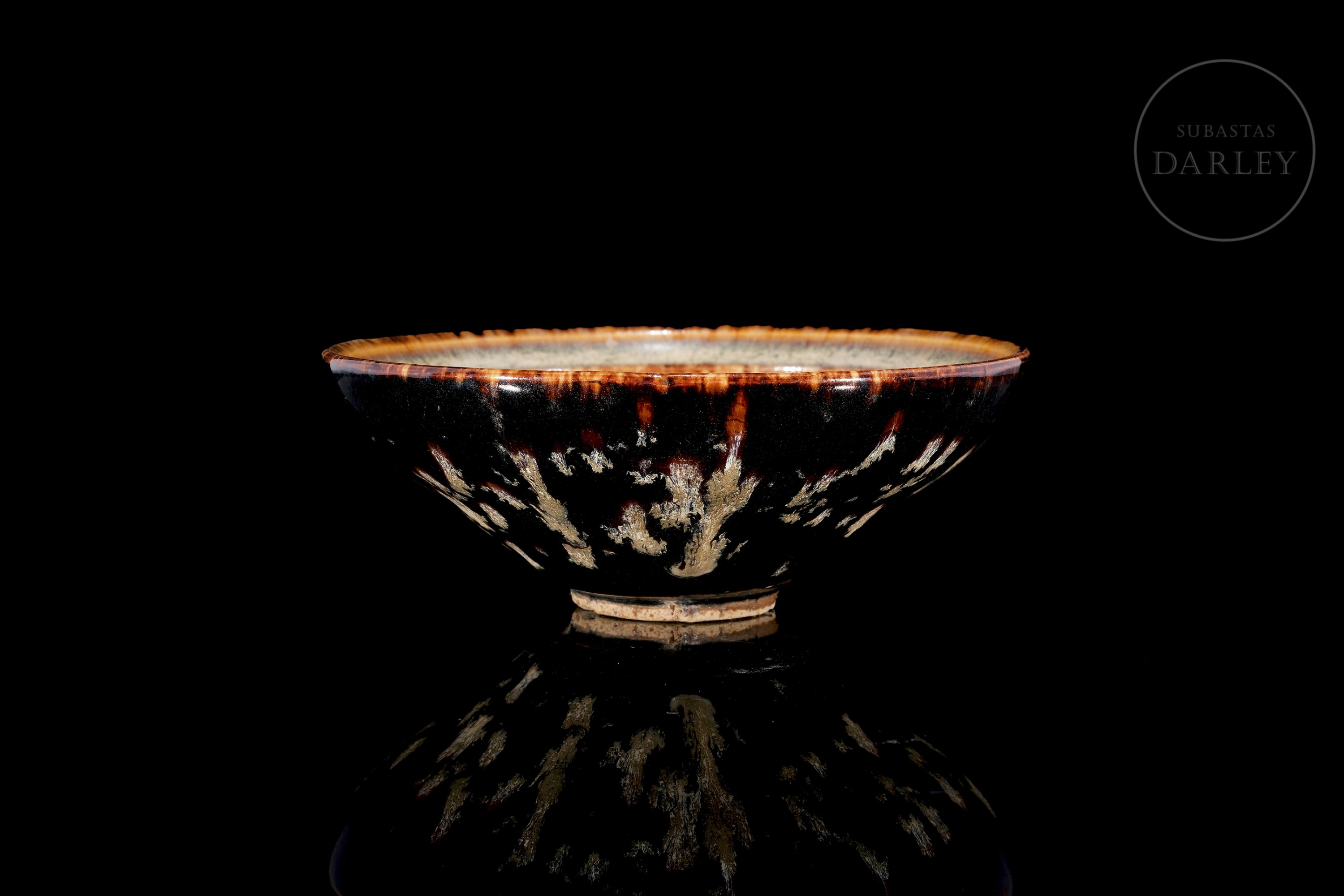 Cuenco de cerámica con esmalte negro del horno Jizhou, estilo Song