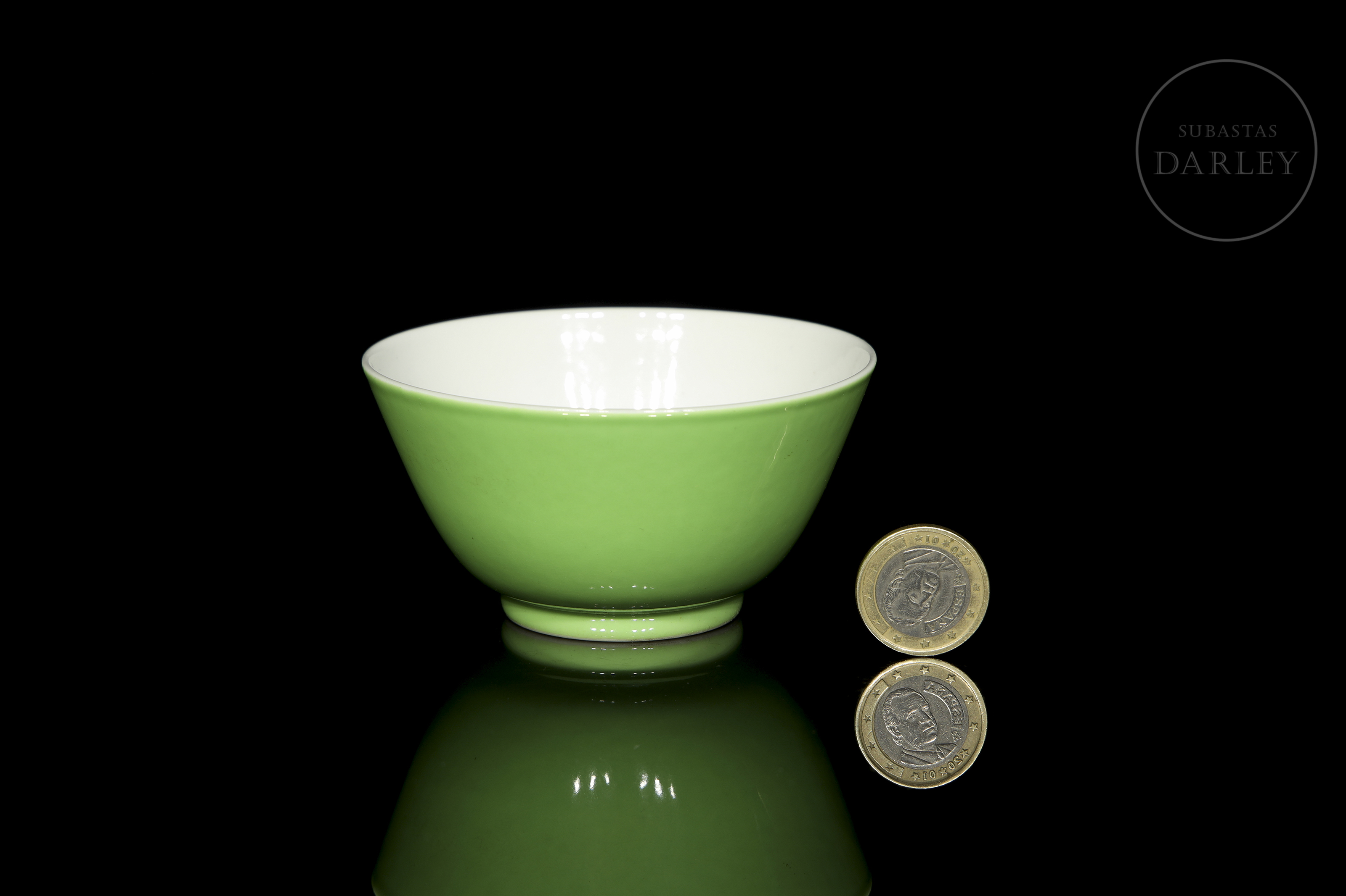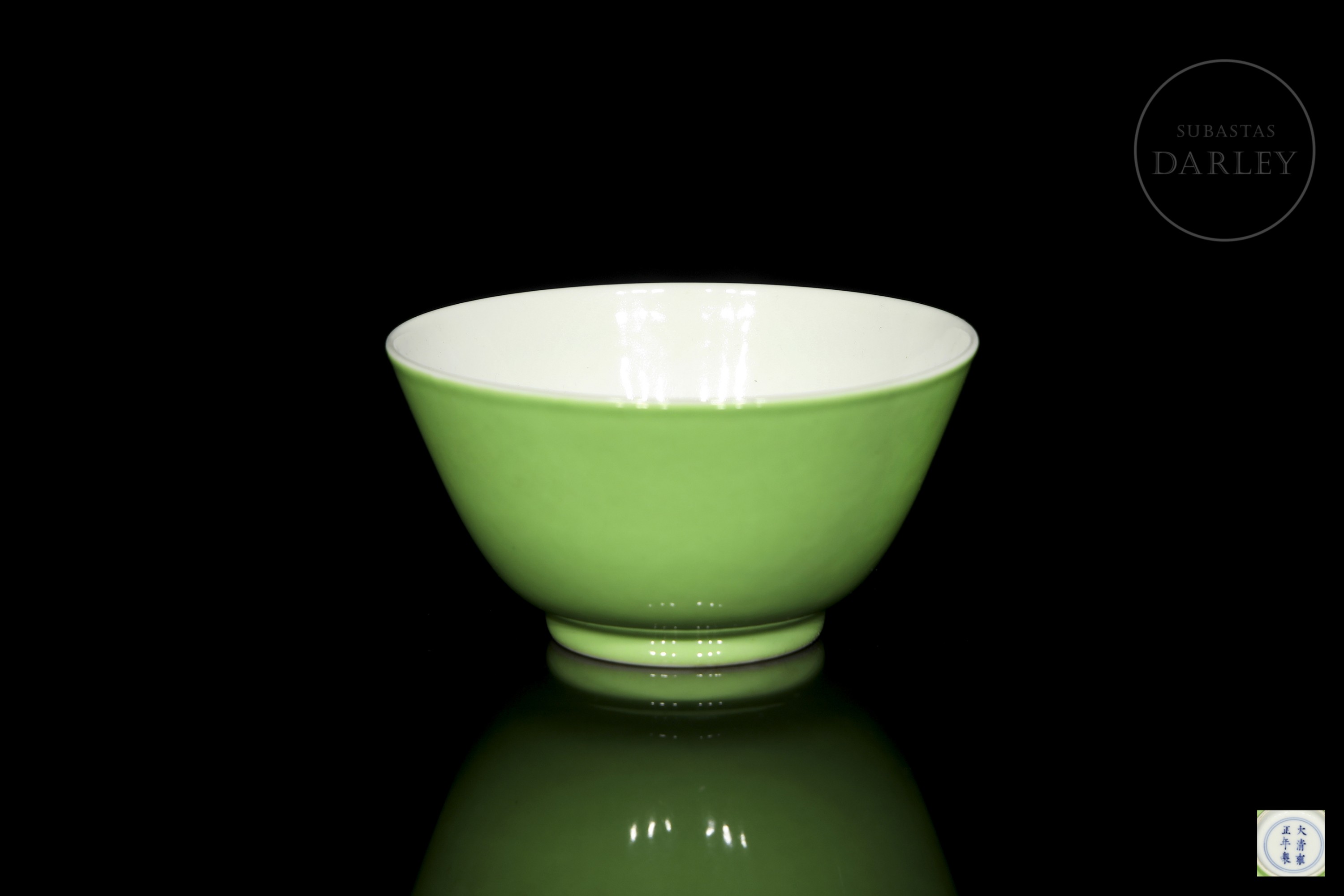 Cuenco de porcelana con esmalte verde, con marca Yongzheng