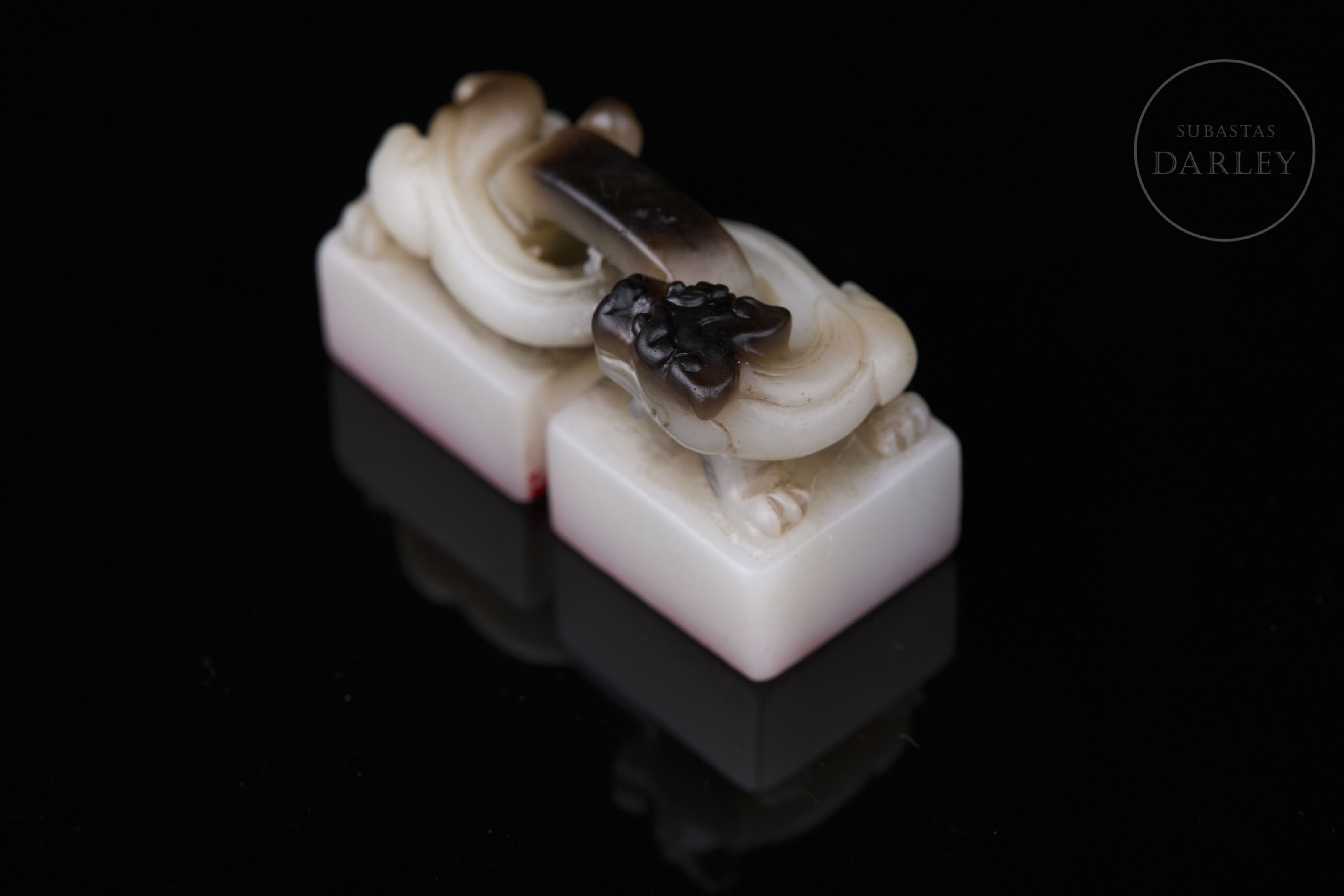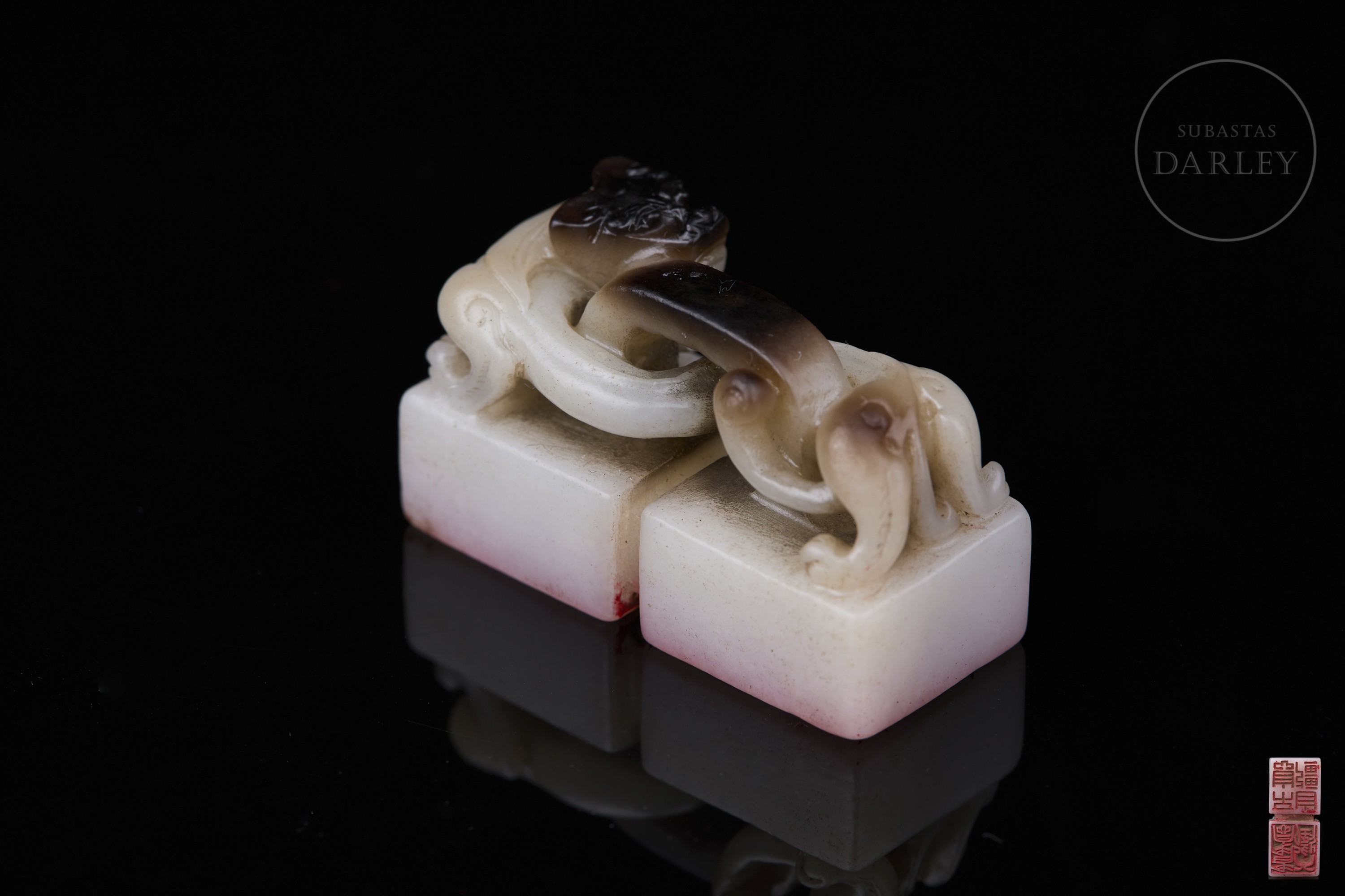 Doble sello de jade blanco "Dragón", dinastía Qing