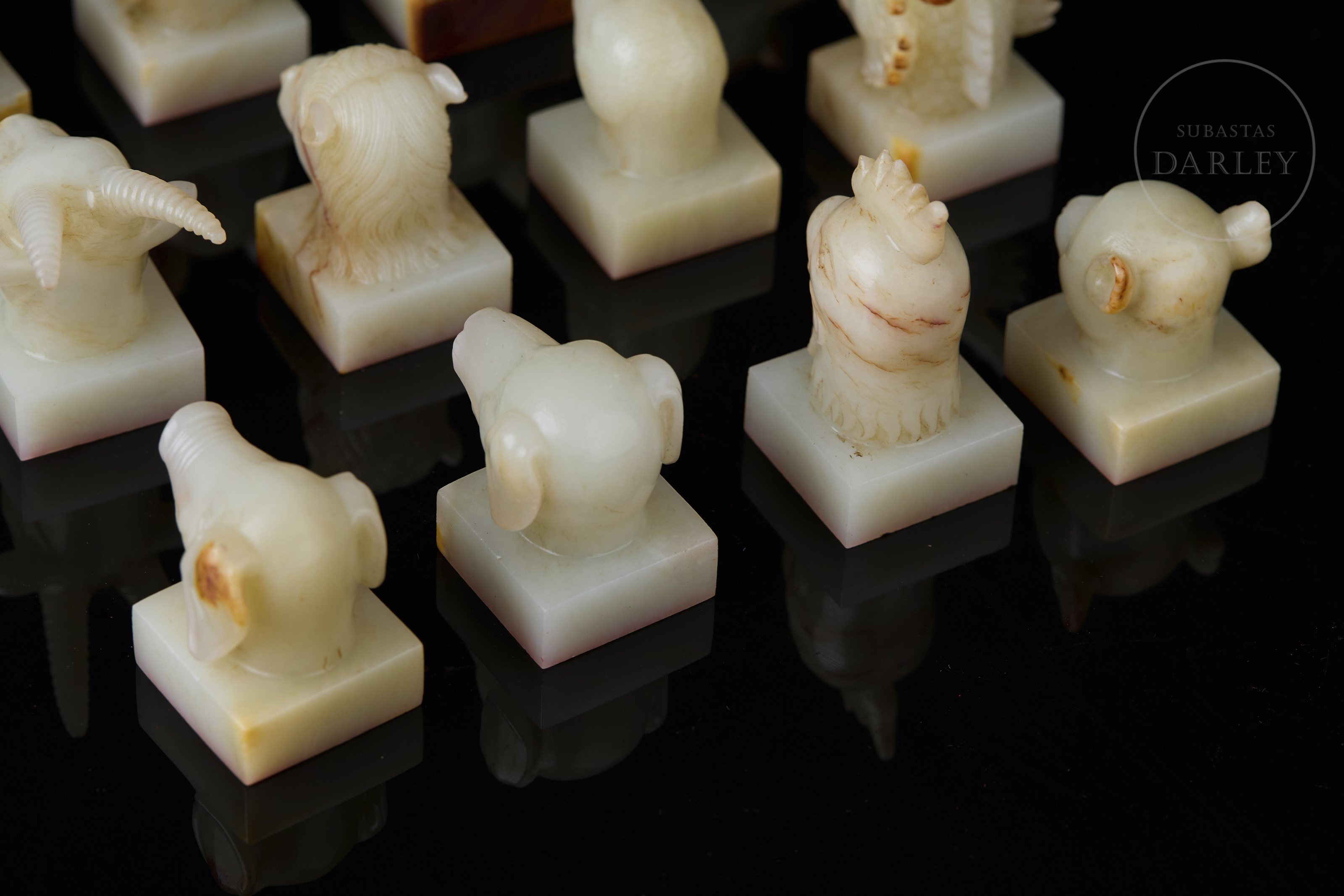 Doce sellos de jade "Zodiaco", dinastía Qing