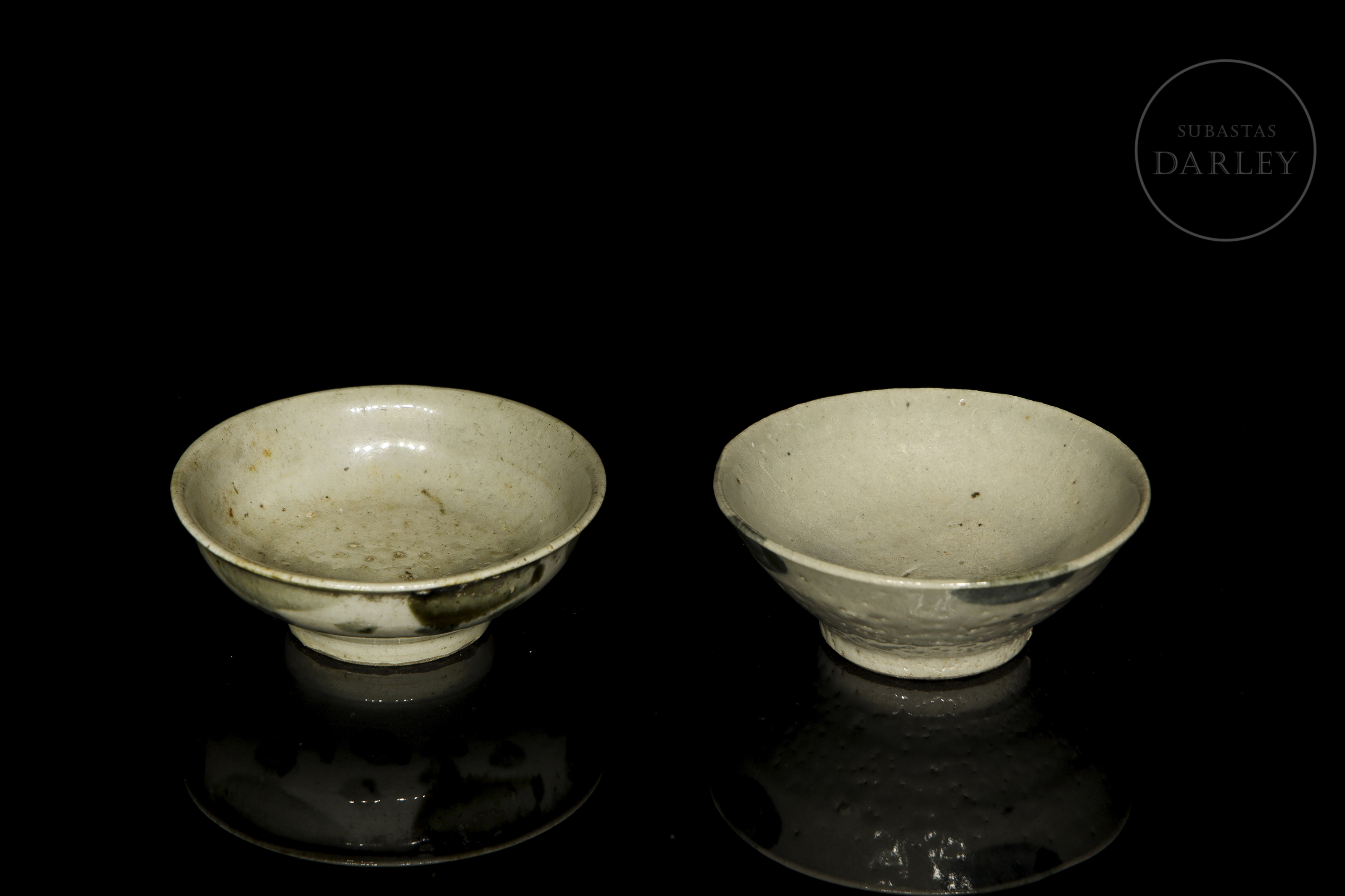 Dos cuencos de cerámica vidriada, dinastía Qing