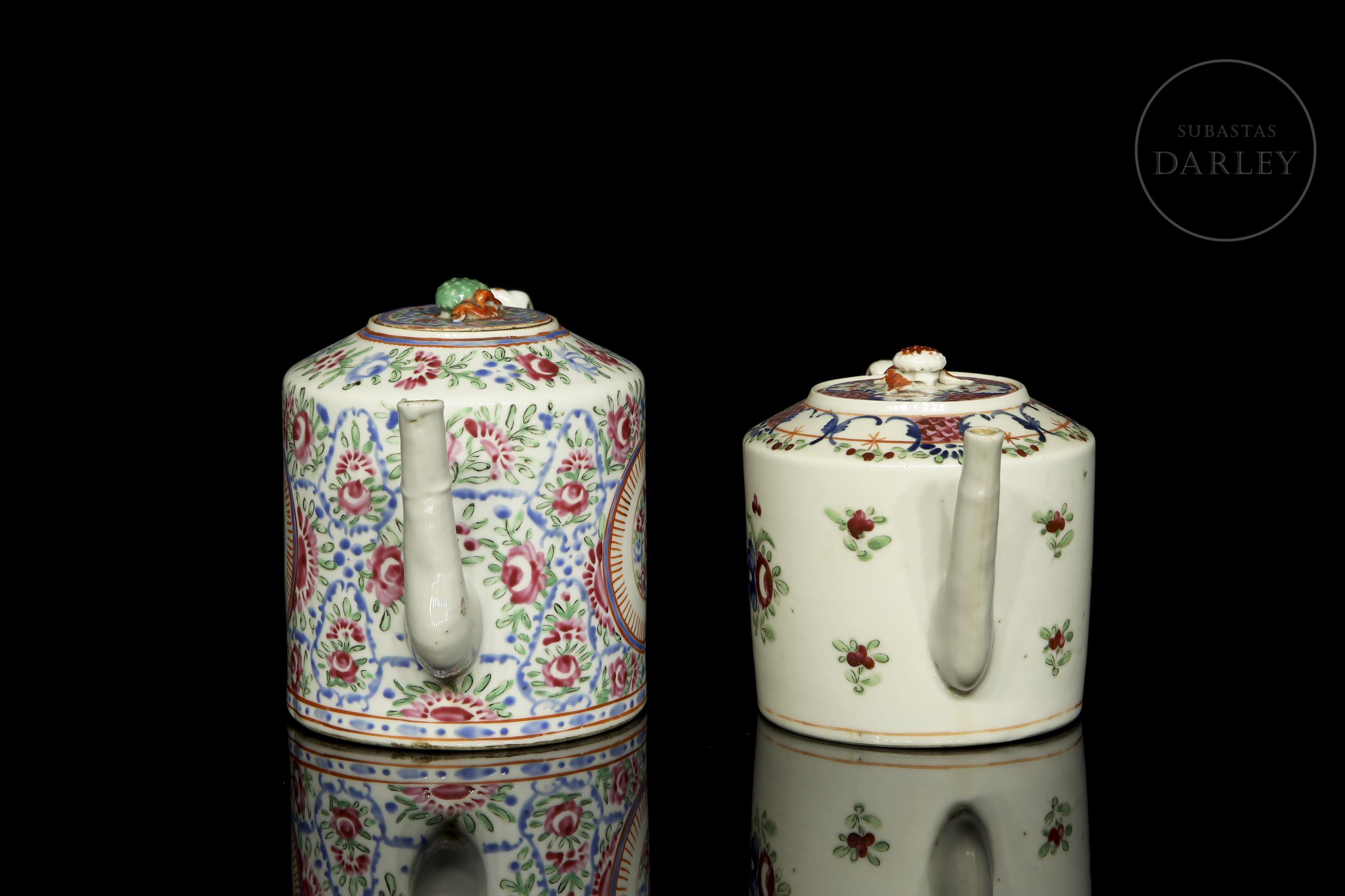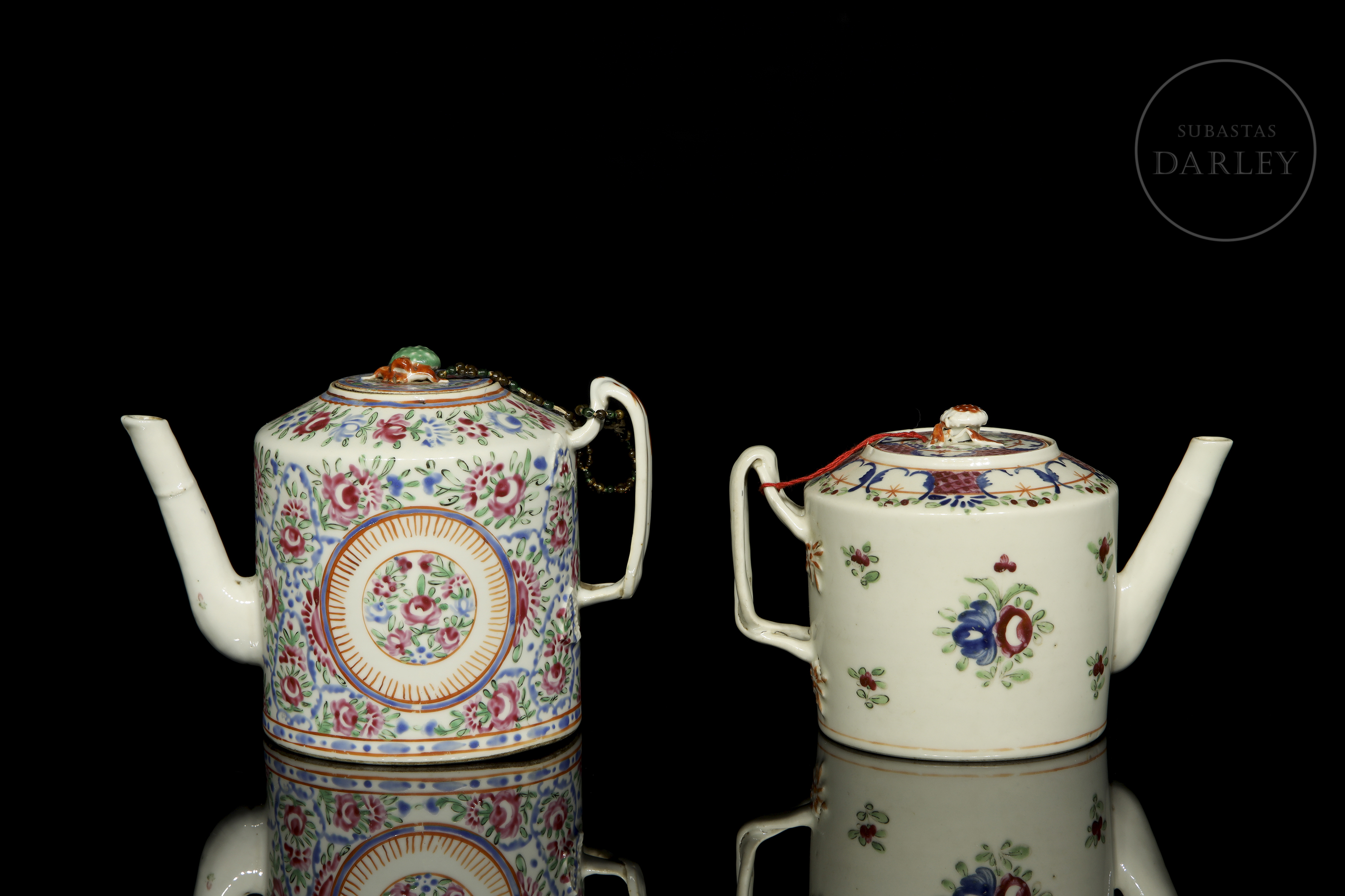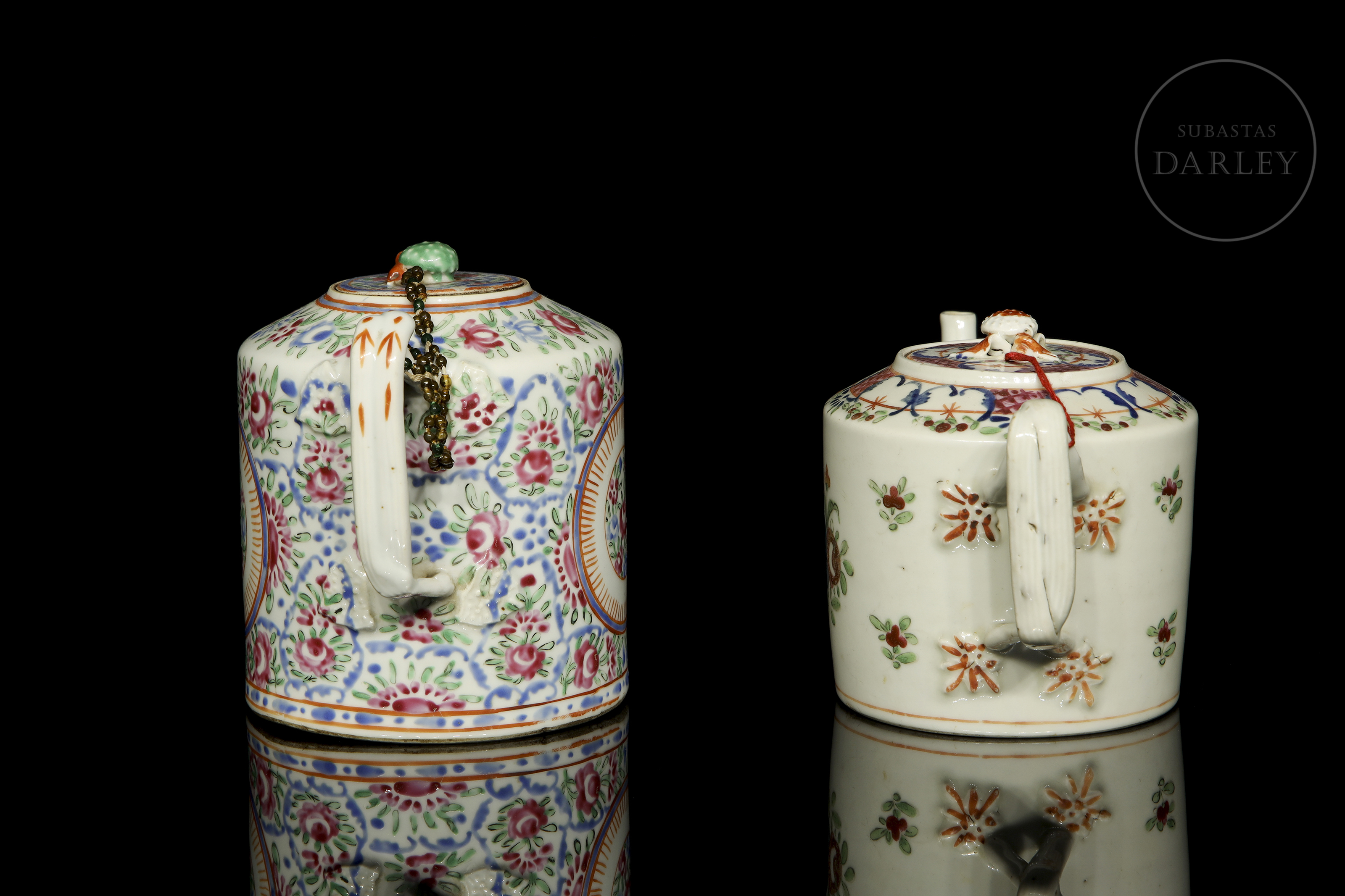 Dos teteras de porcelana esmaltada, dinastía Qing