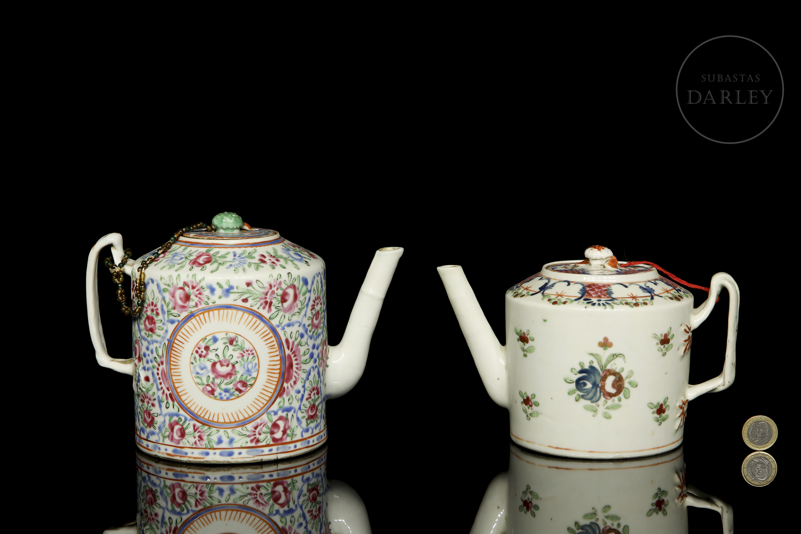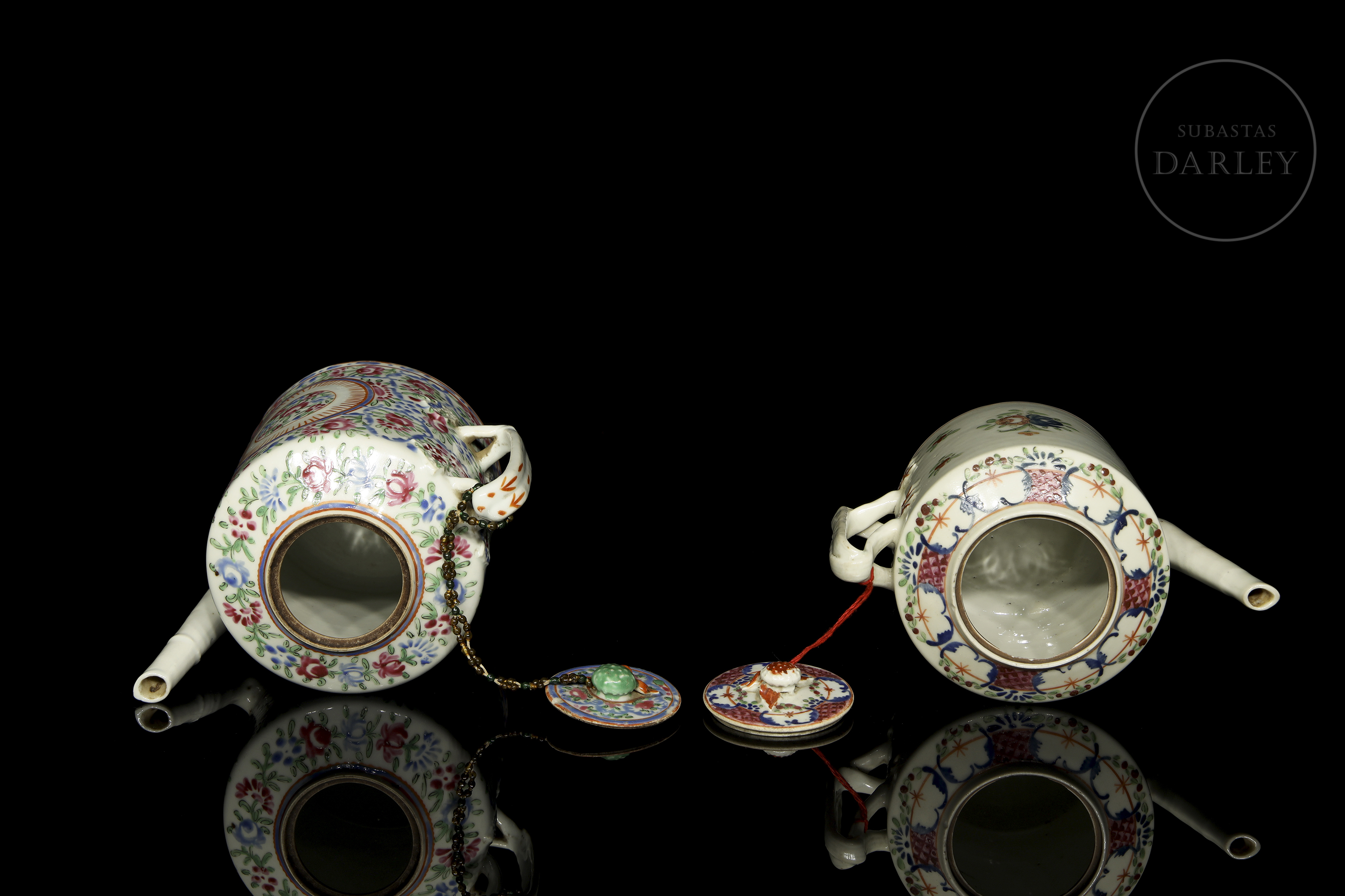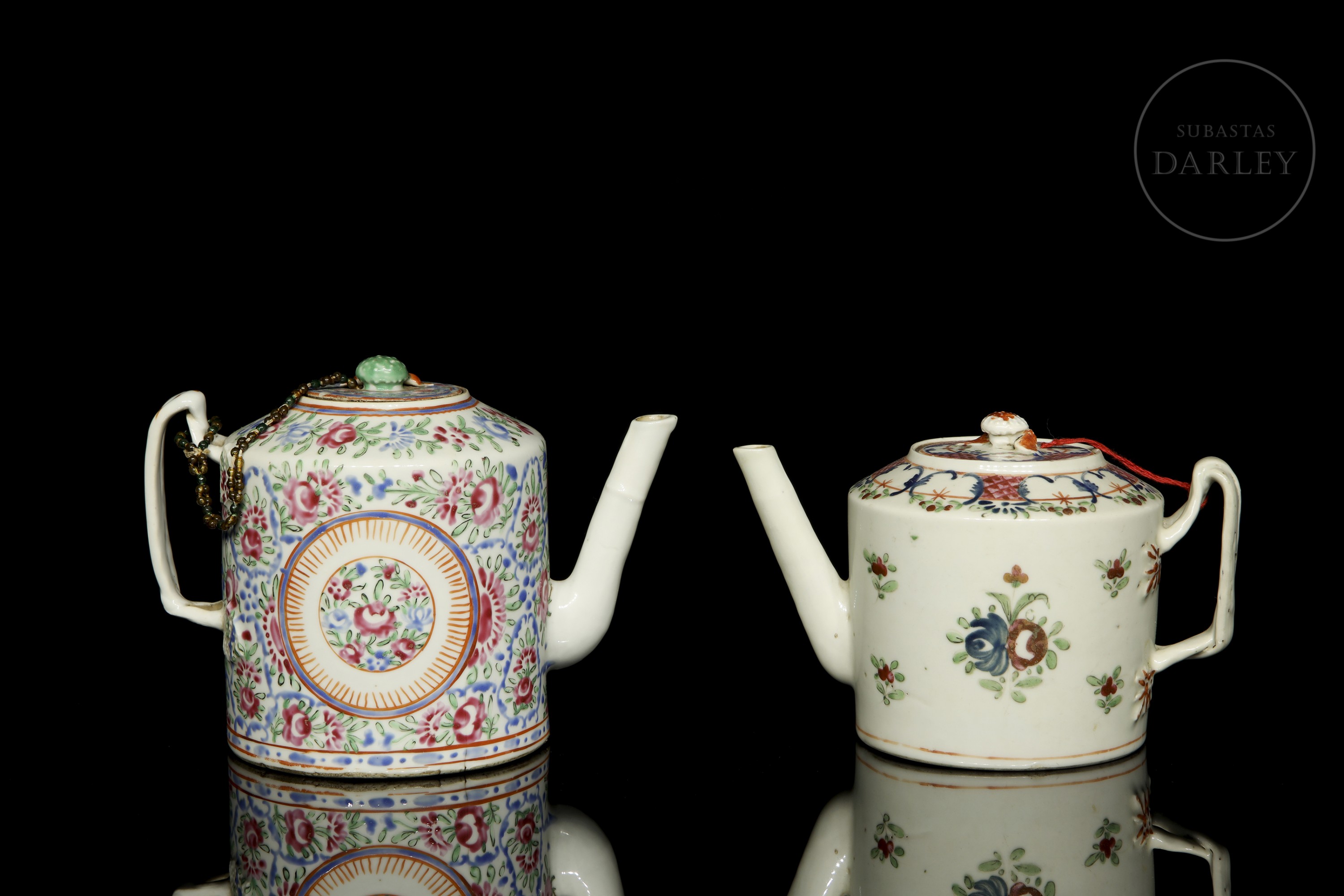 Dos teteras de porcelana esmaltada, dinastía Qing
