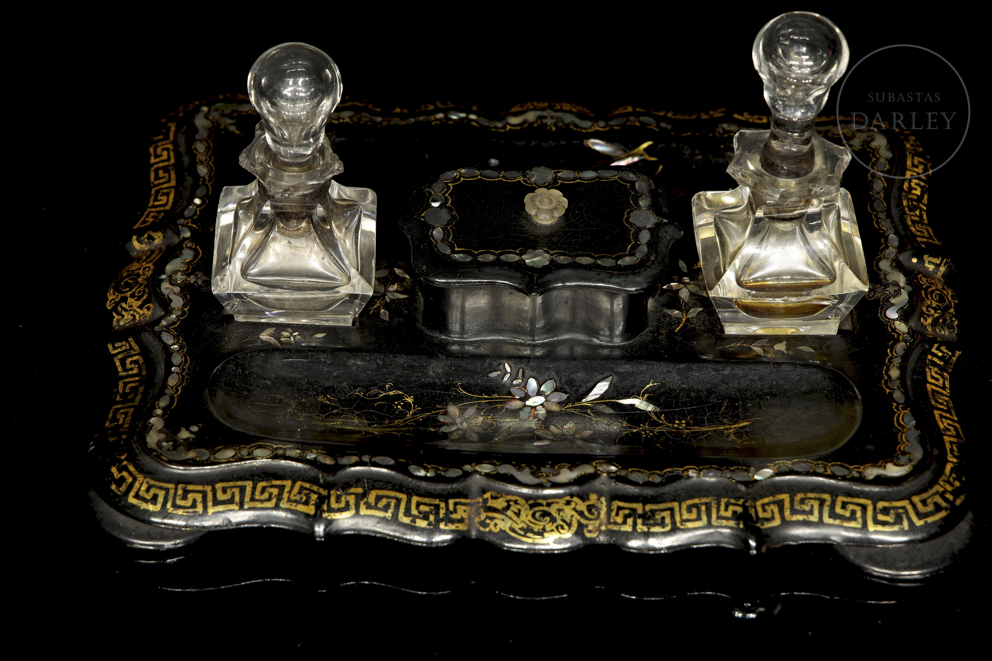 Escribanía victoriana de papier-mâché y nácar, s.XIX