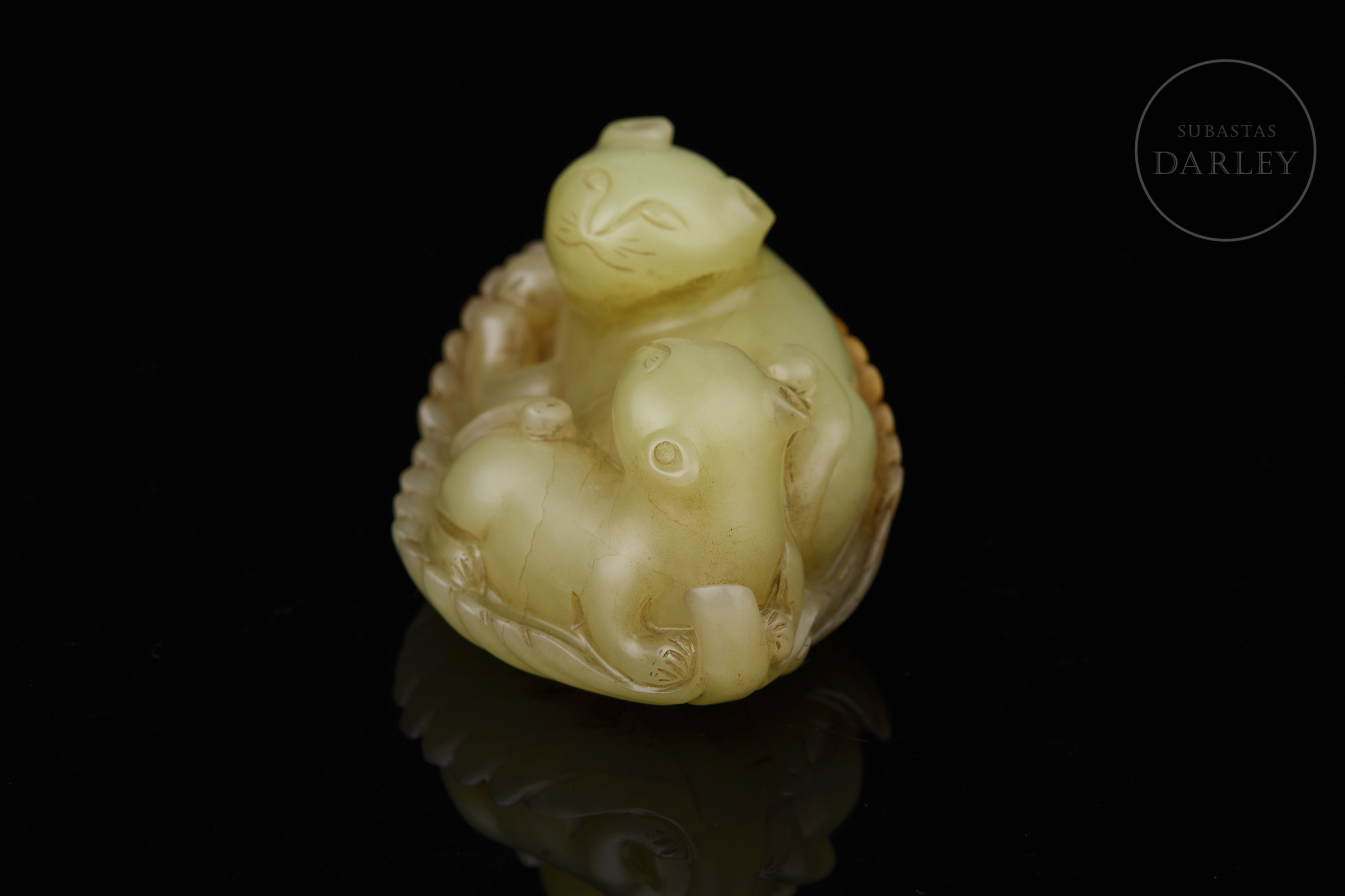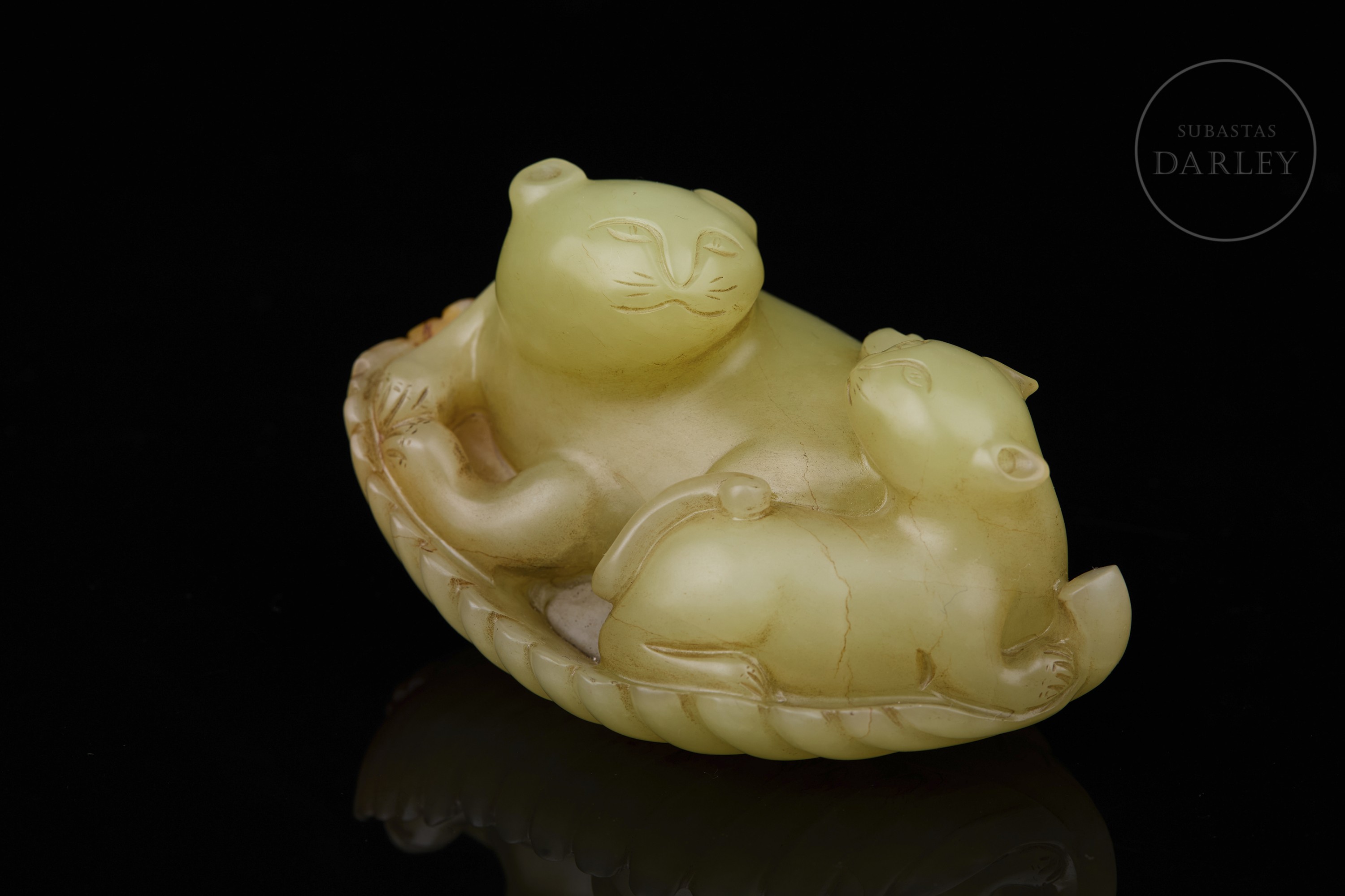 Figura de jade amarillo "Leona con cría", dinastía Qing