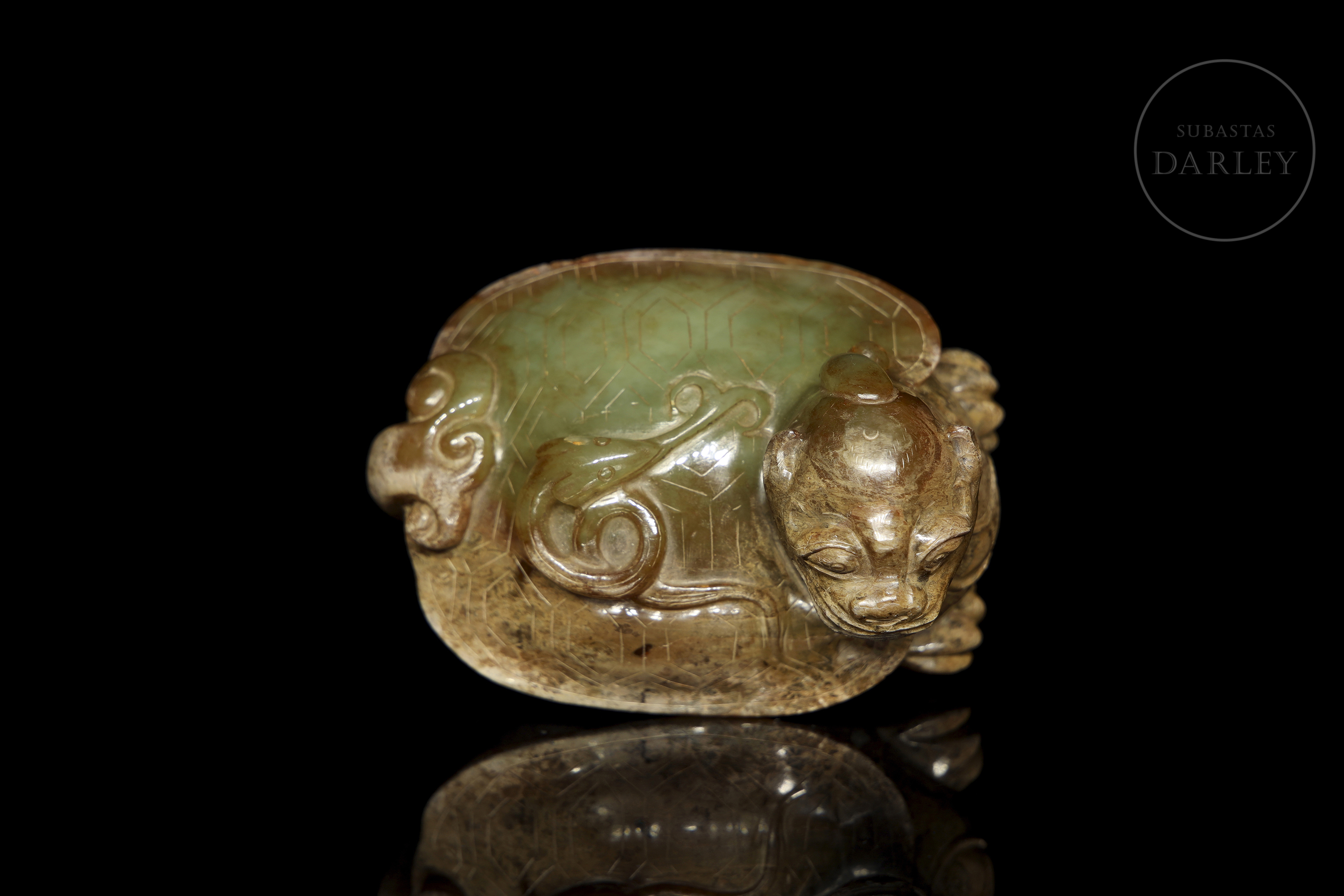 Figura de jade amarillo "Tortuga dragón", periodo Reinos Combatientes