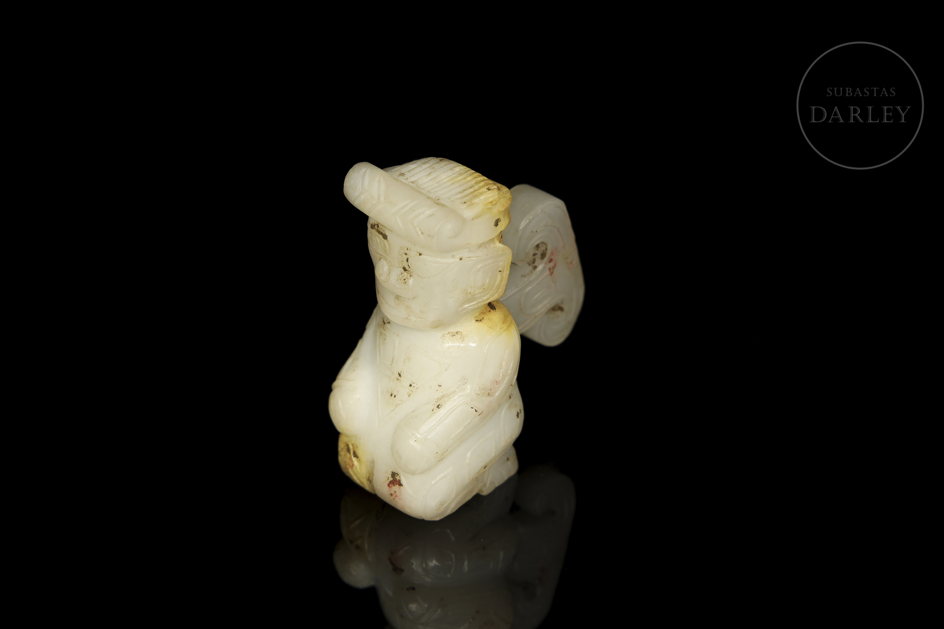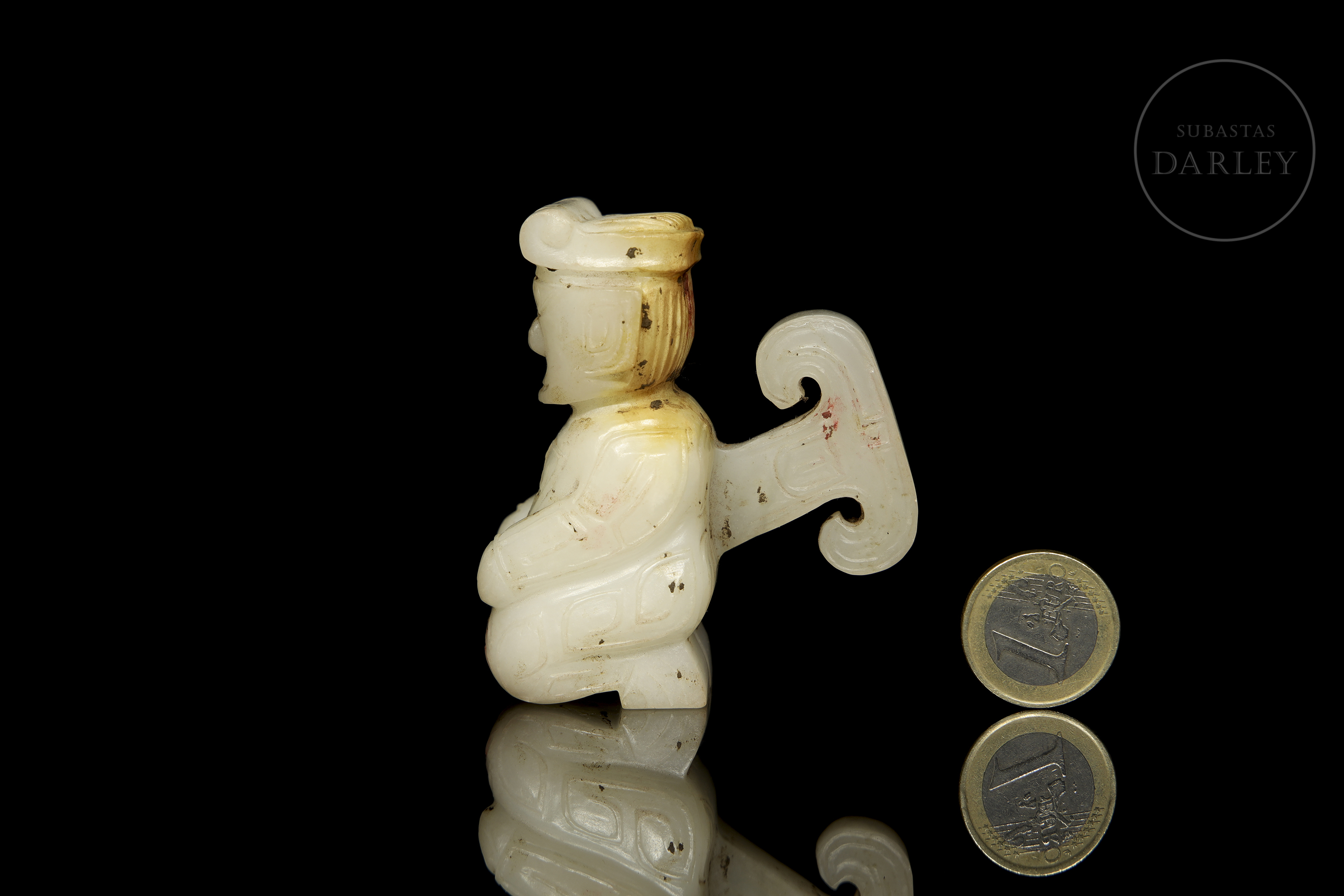Figura de jade blanco "Hombre arrodillado", dinastía Shang