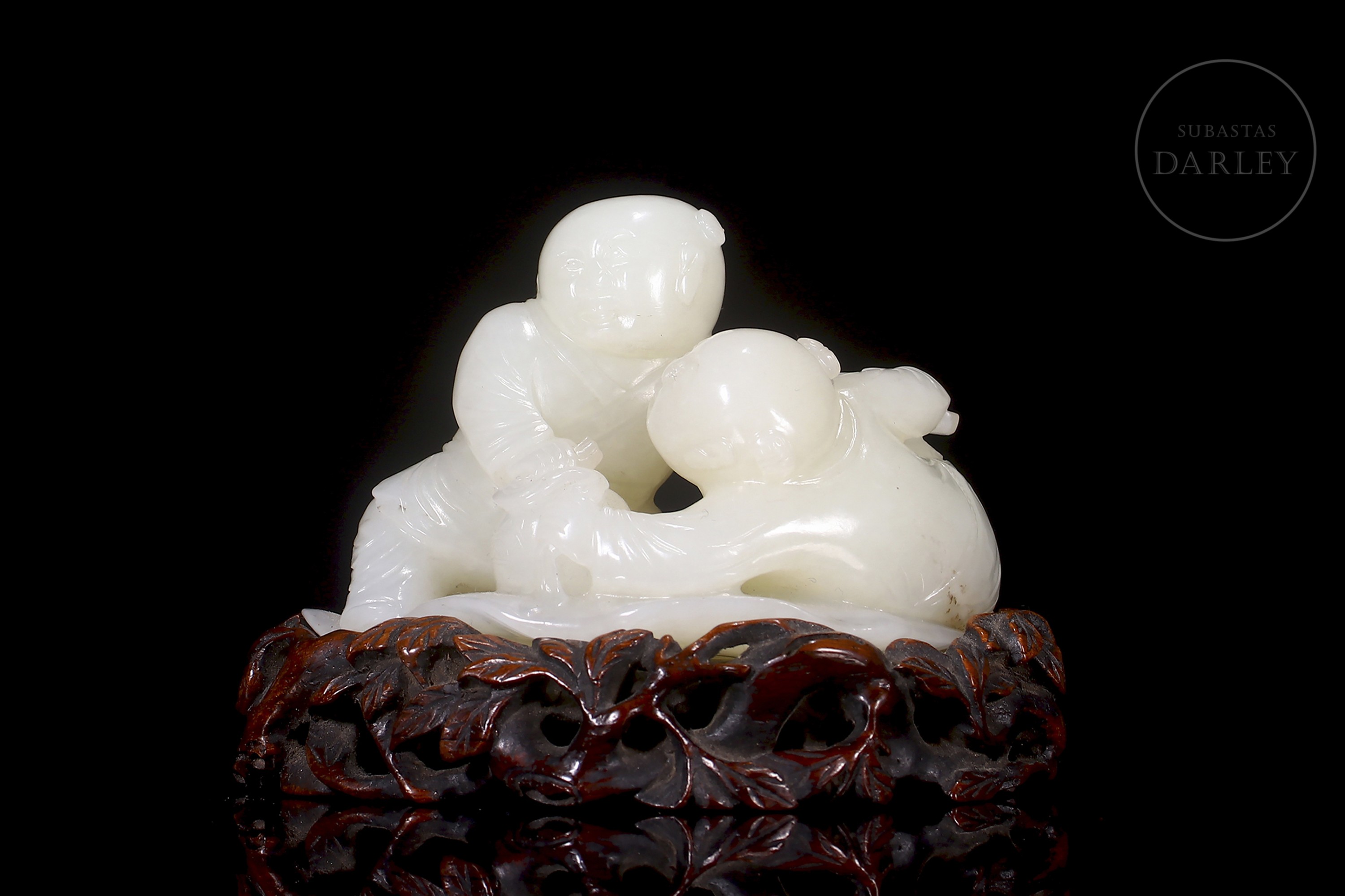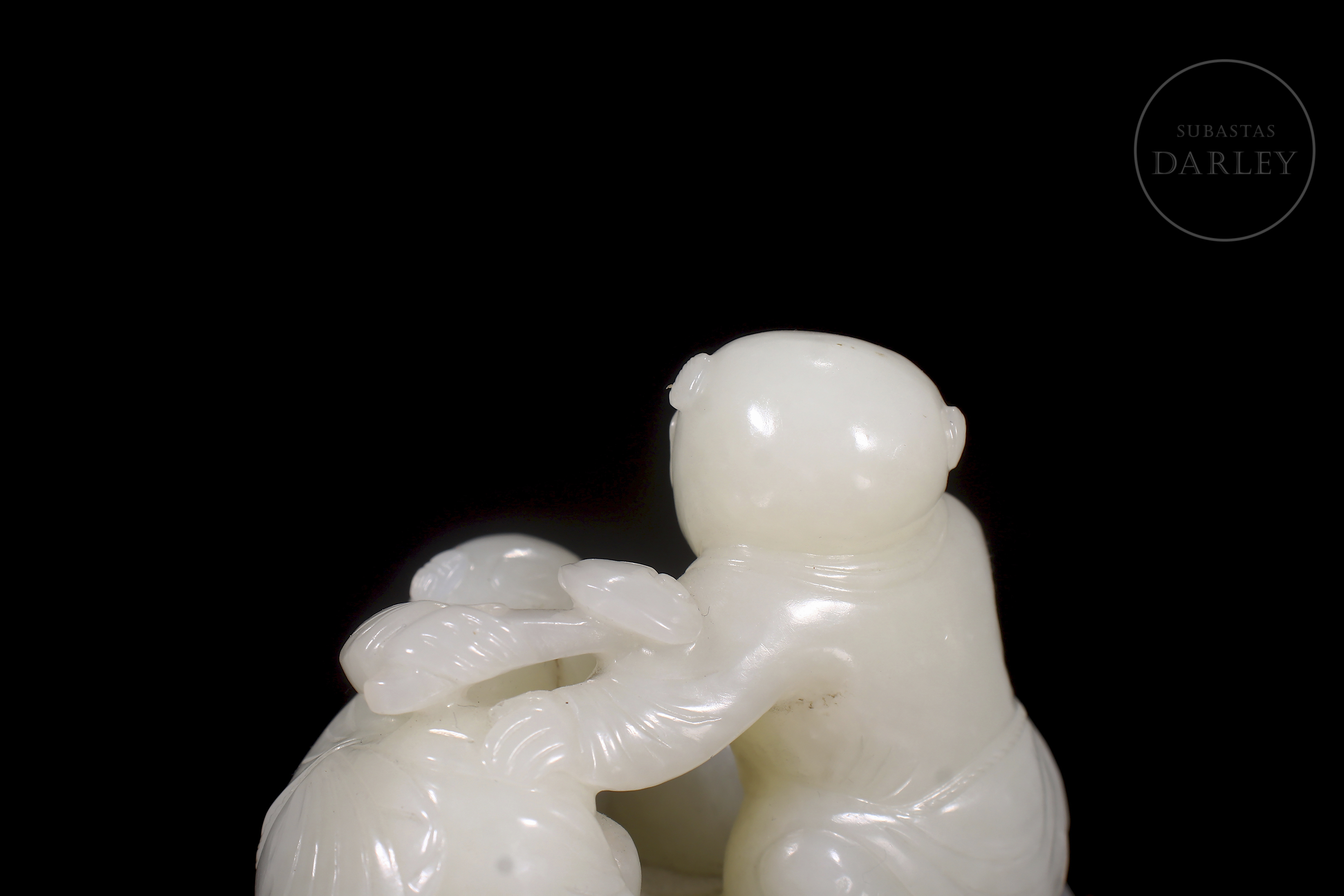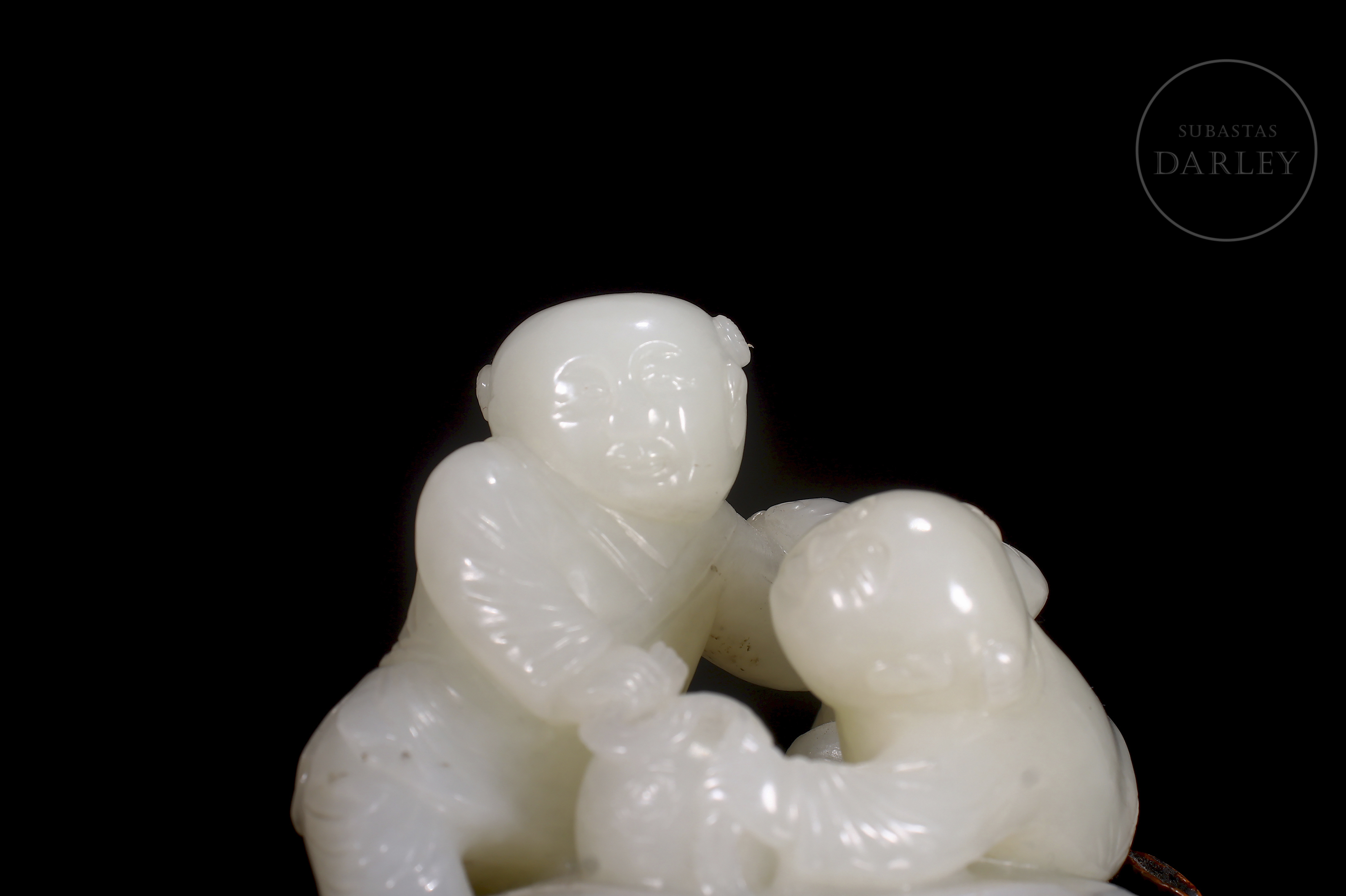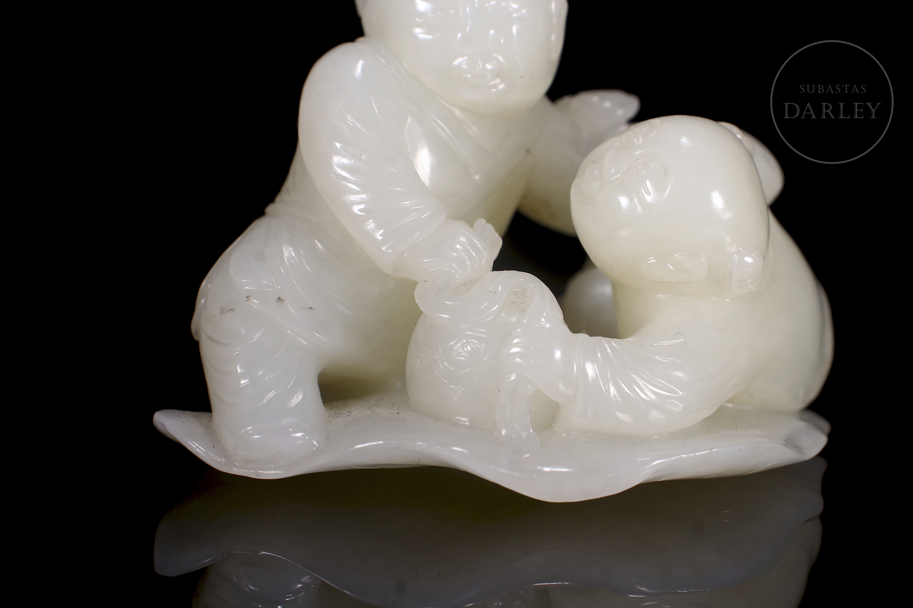 Figura de jade blanco "Niños jugando", dinastía Qing