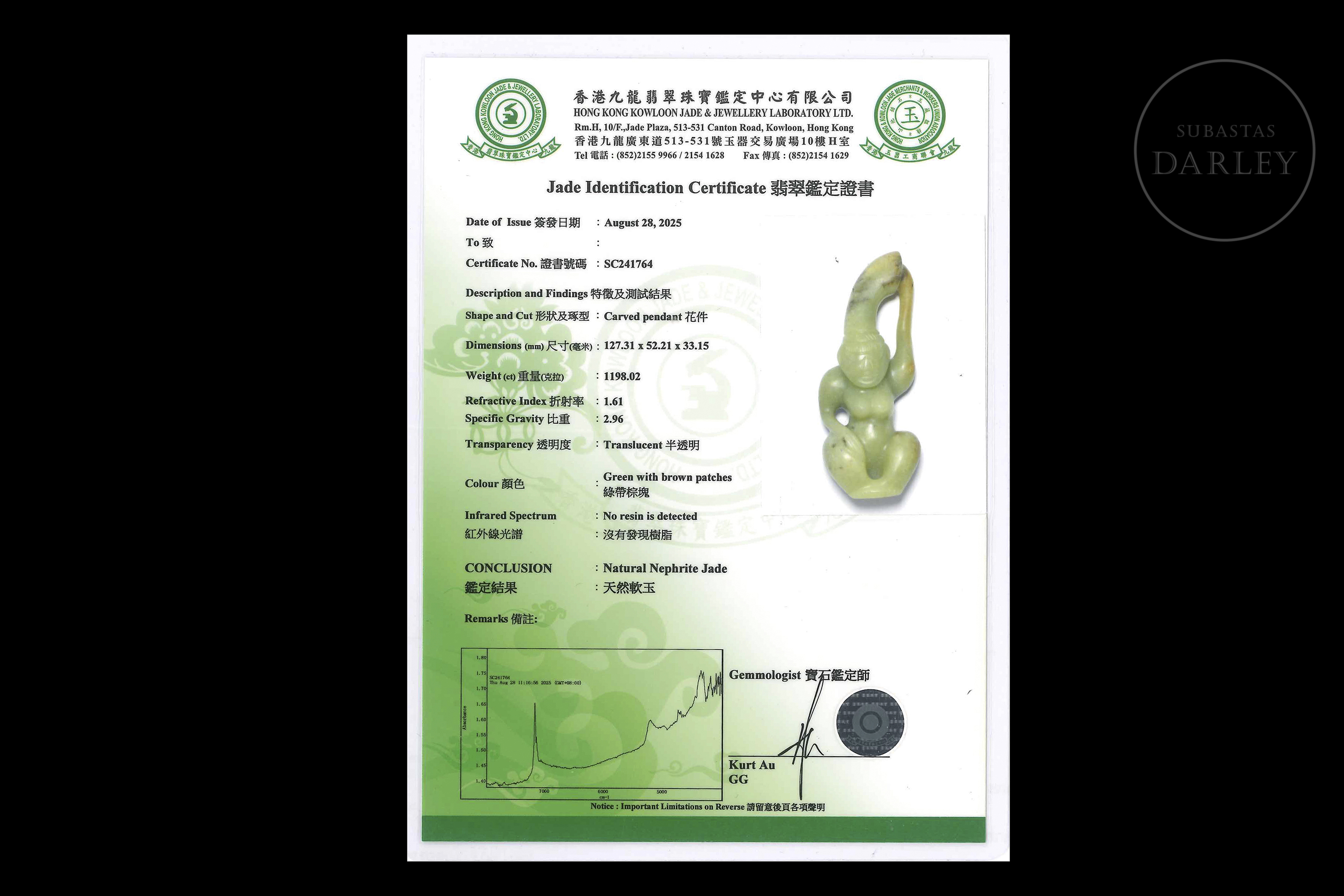 La pieza se acompaña de un certificado gemológico emitido por Hong Kong Kowloon Jade & Jewellery Laboratory LTD en el año 2025. SC241762.