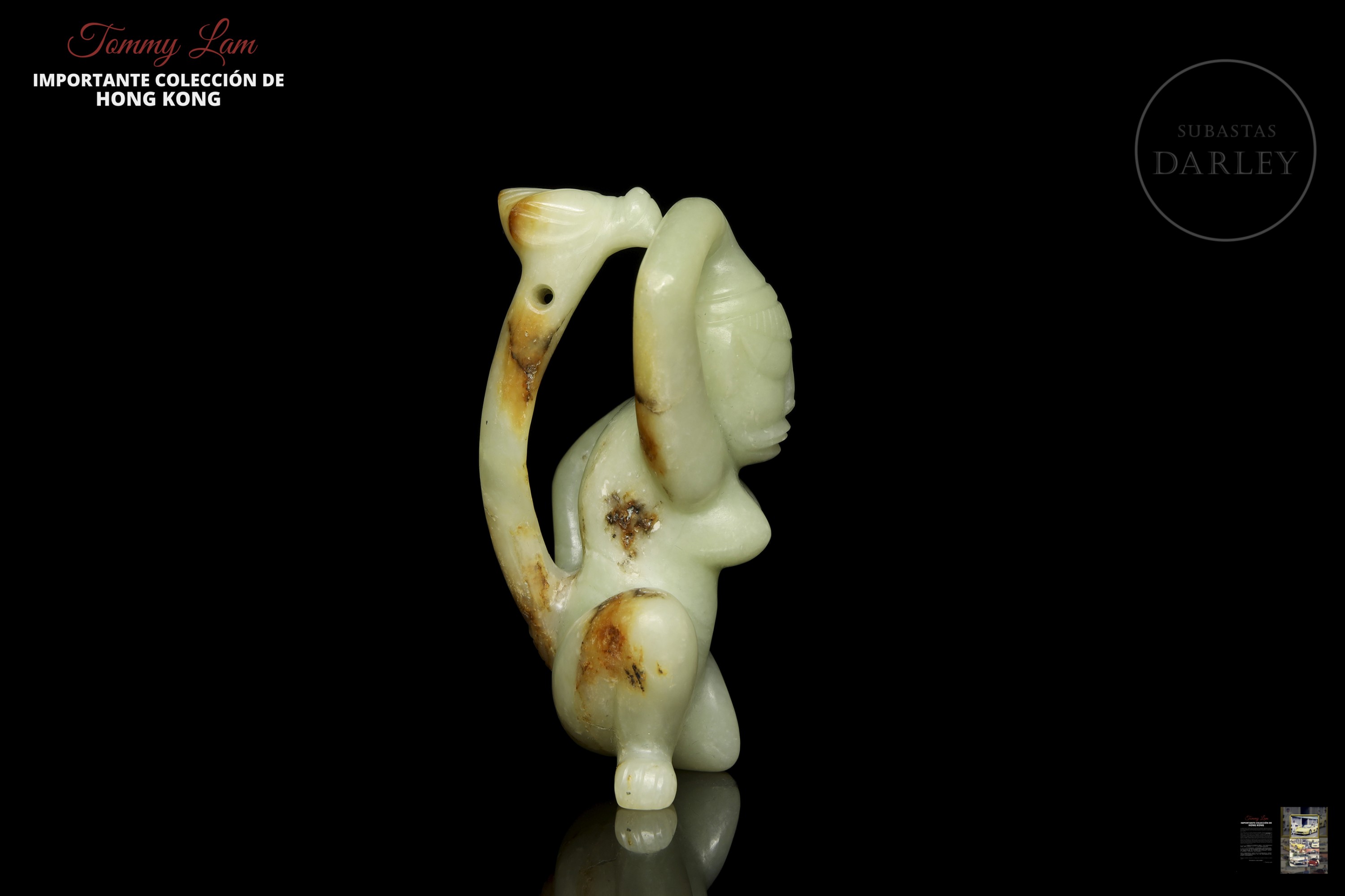 Figura de jade tallado "Deidad con dragón", cultura Hongshan