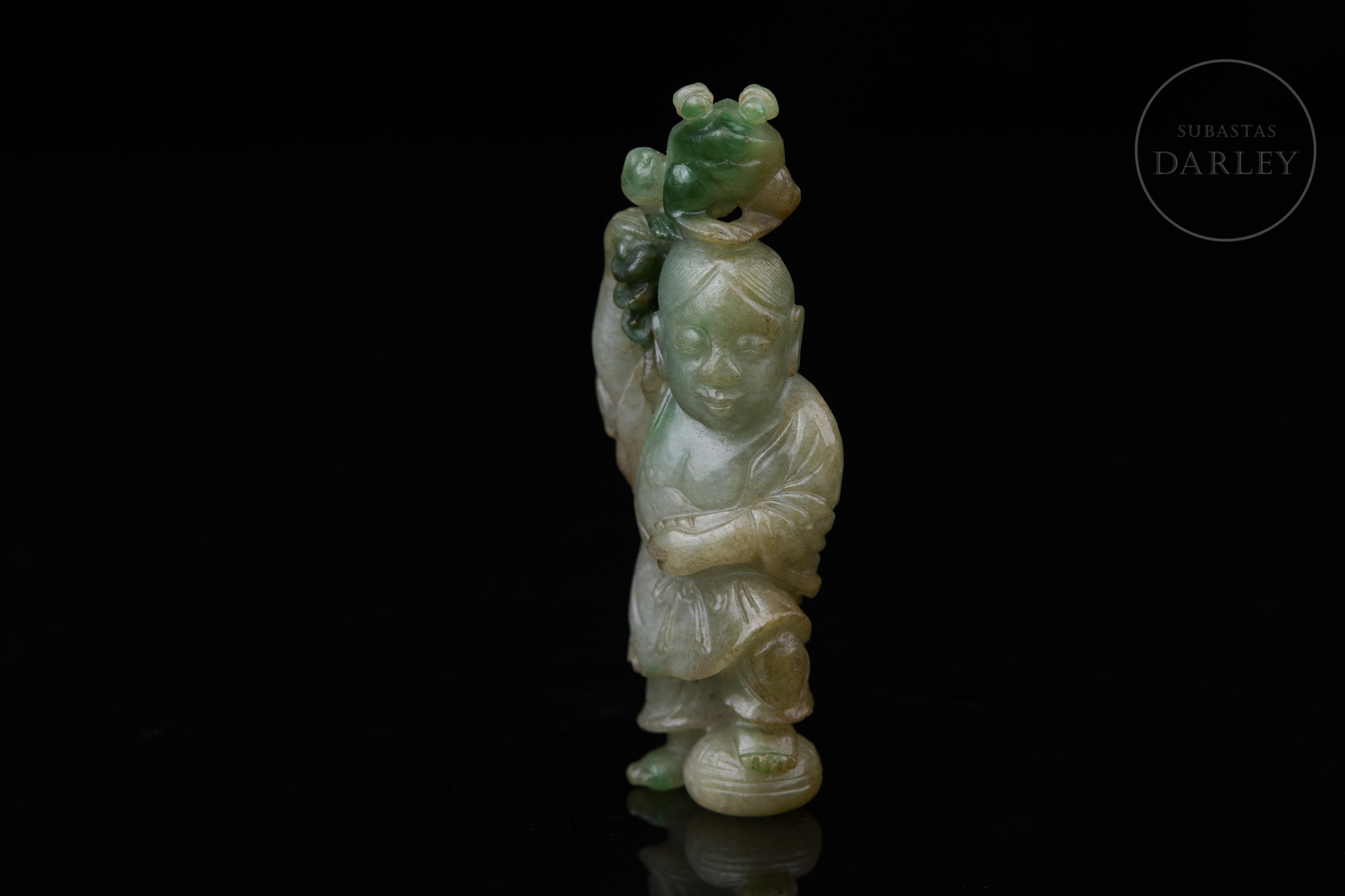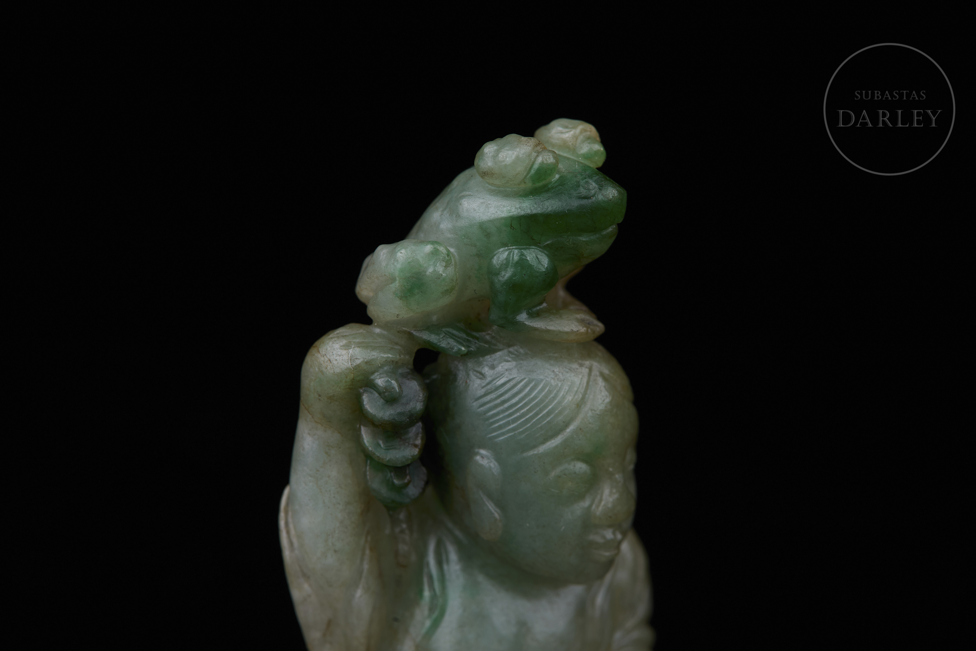 Figura de jadeíta "Liu Hai burlándose del sapo dorado", dinastía Qing