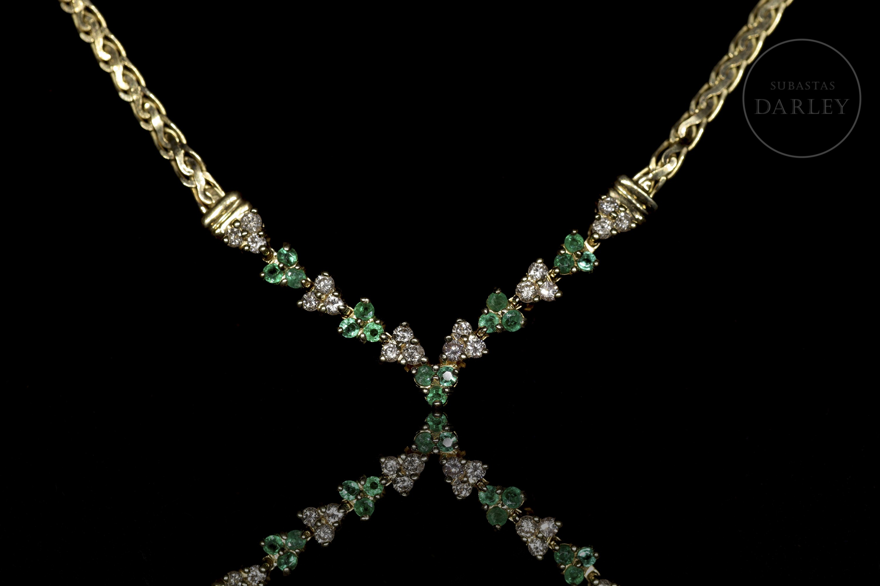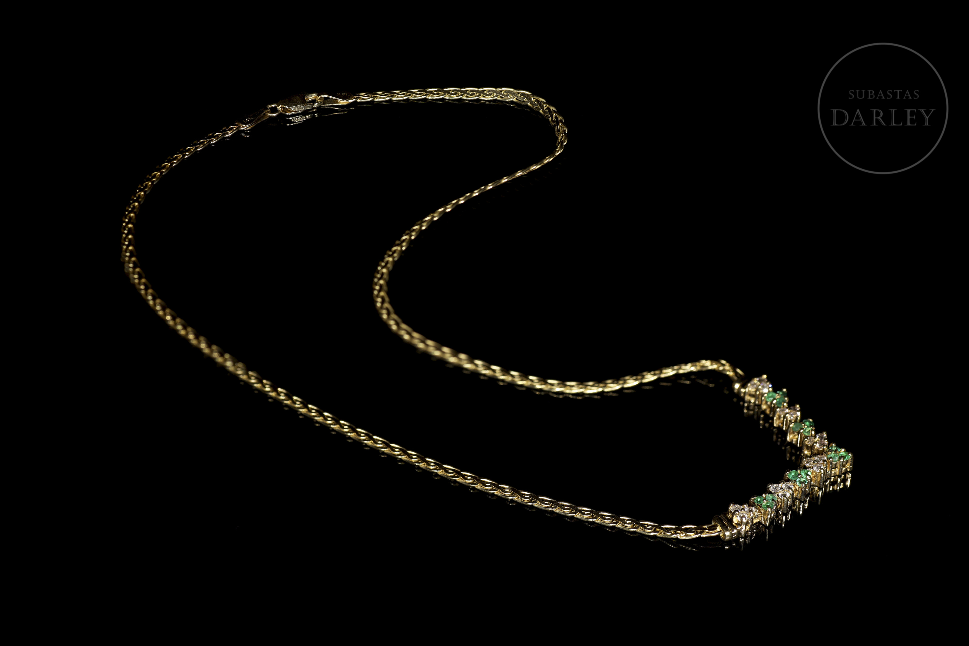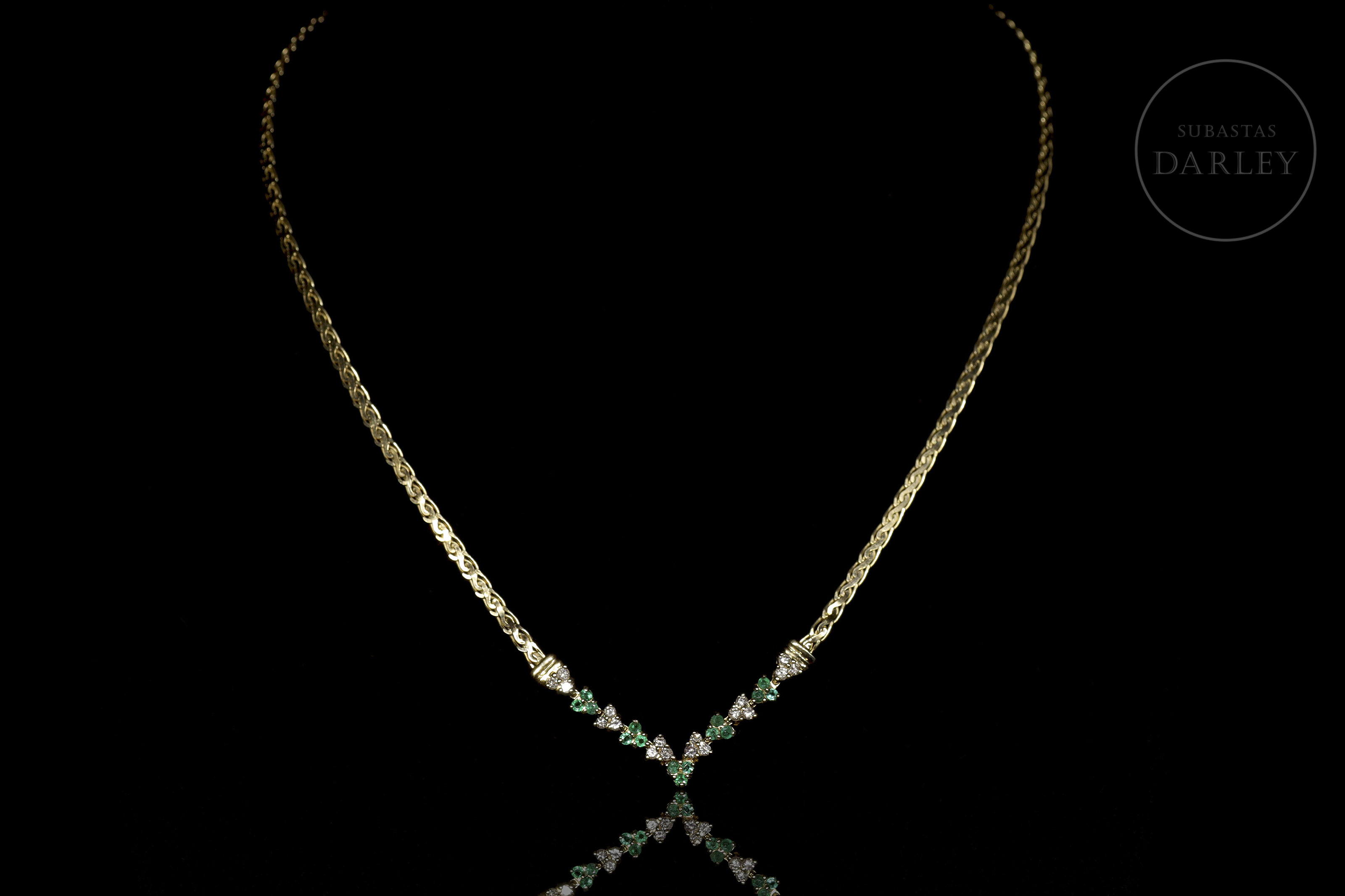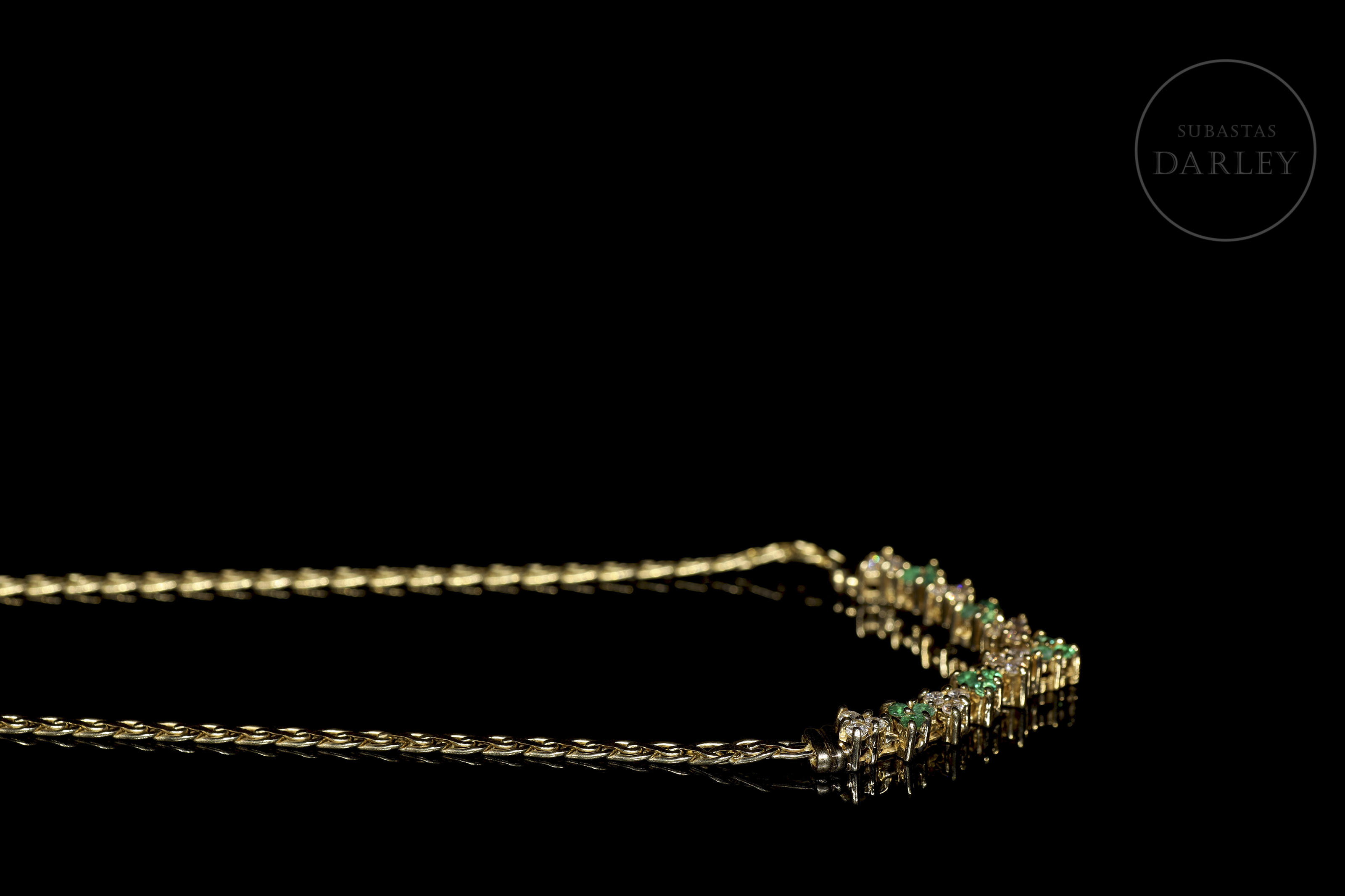 Gargantilla de oro amarillo con esmeraldas y diamantes