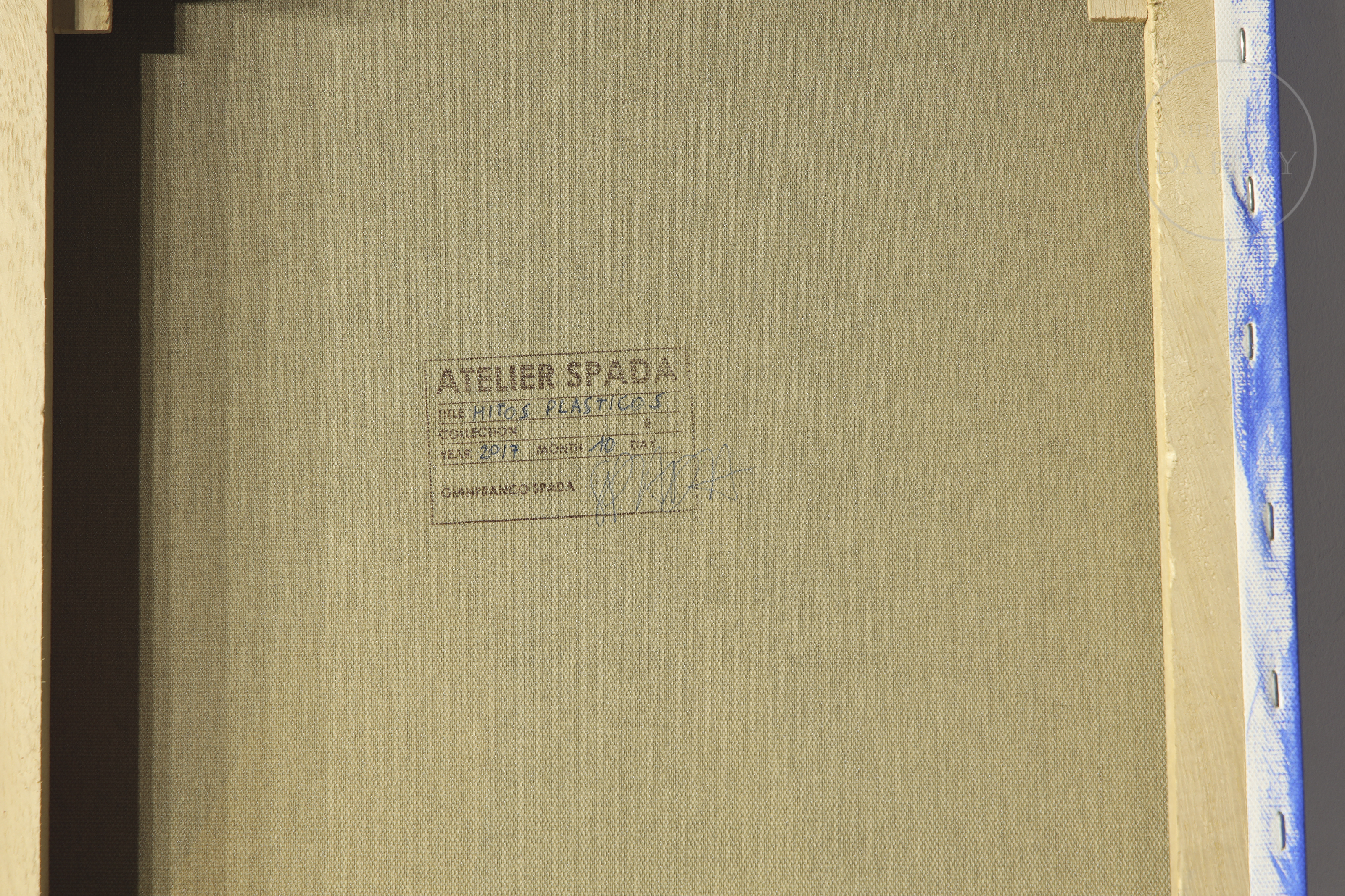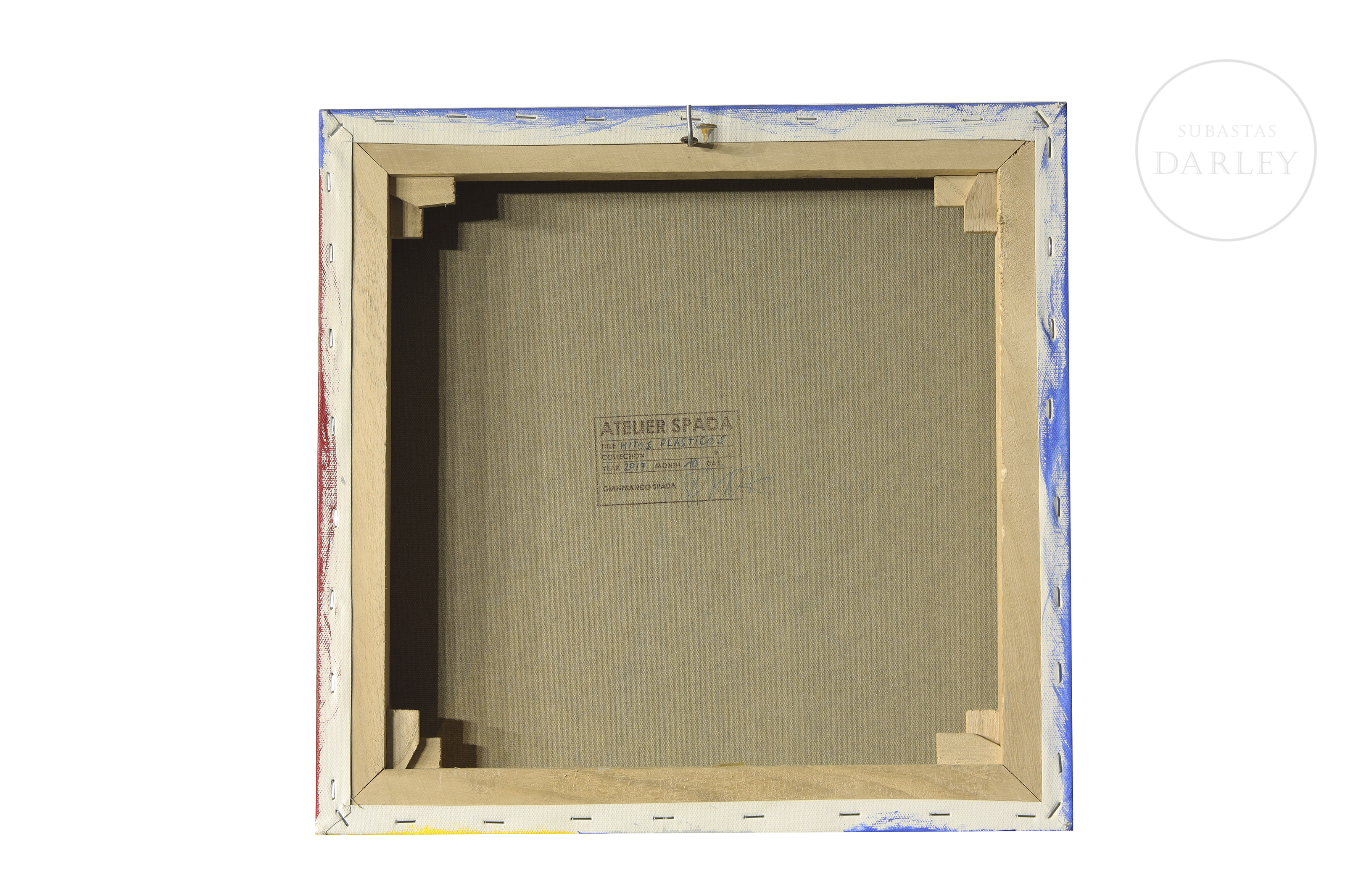 Acrílico sobre lienzo. Composición geométrica de estética minimalista y arquitectónica. En el reverso presenta la estampa del "Atelier Spada", taller multidisciplinar del arquitecto con sede en Valencia. Titulado, fechado y firmado en su parte posterior.