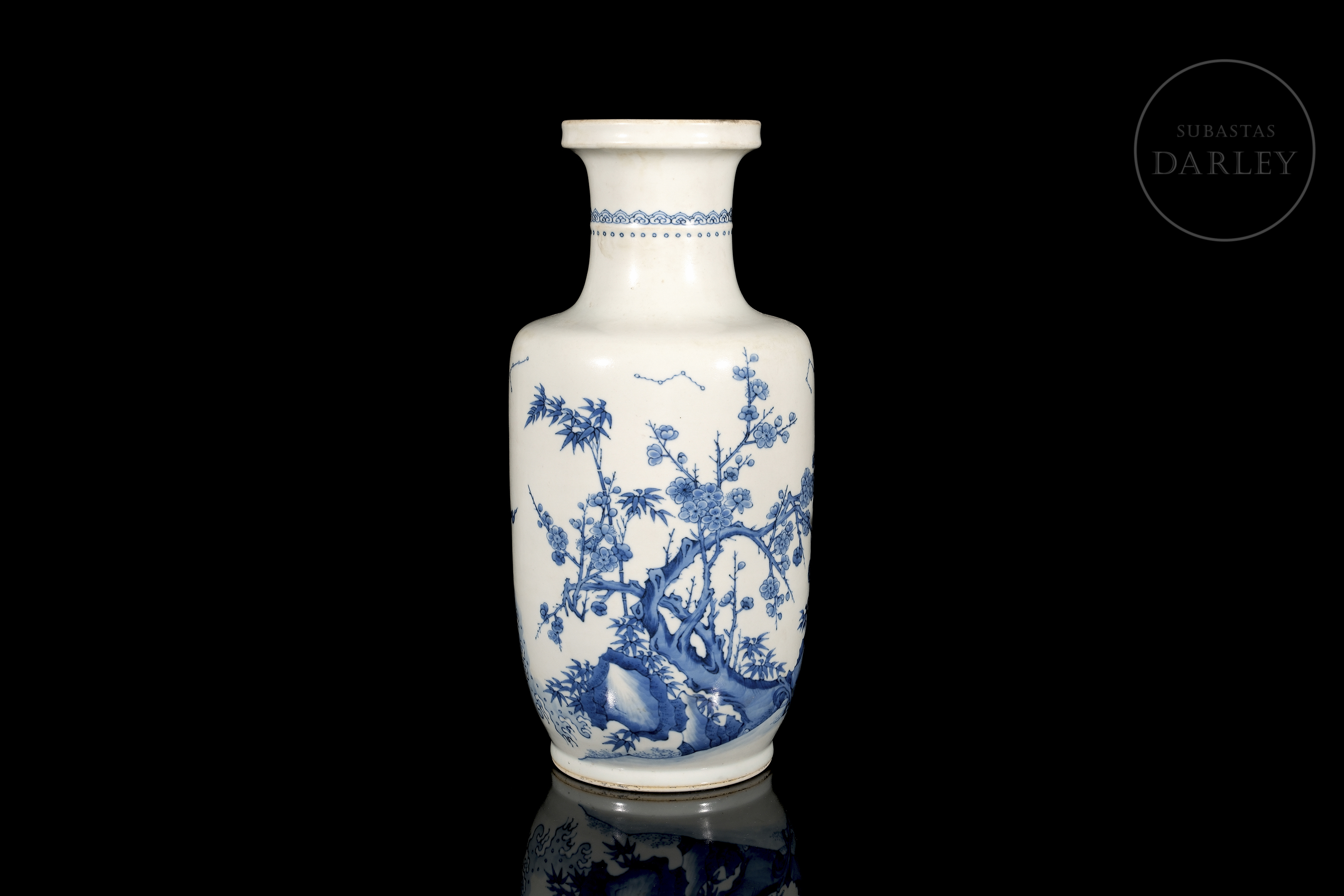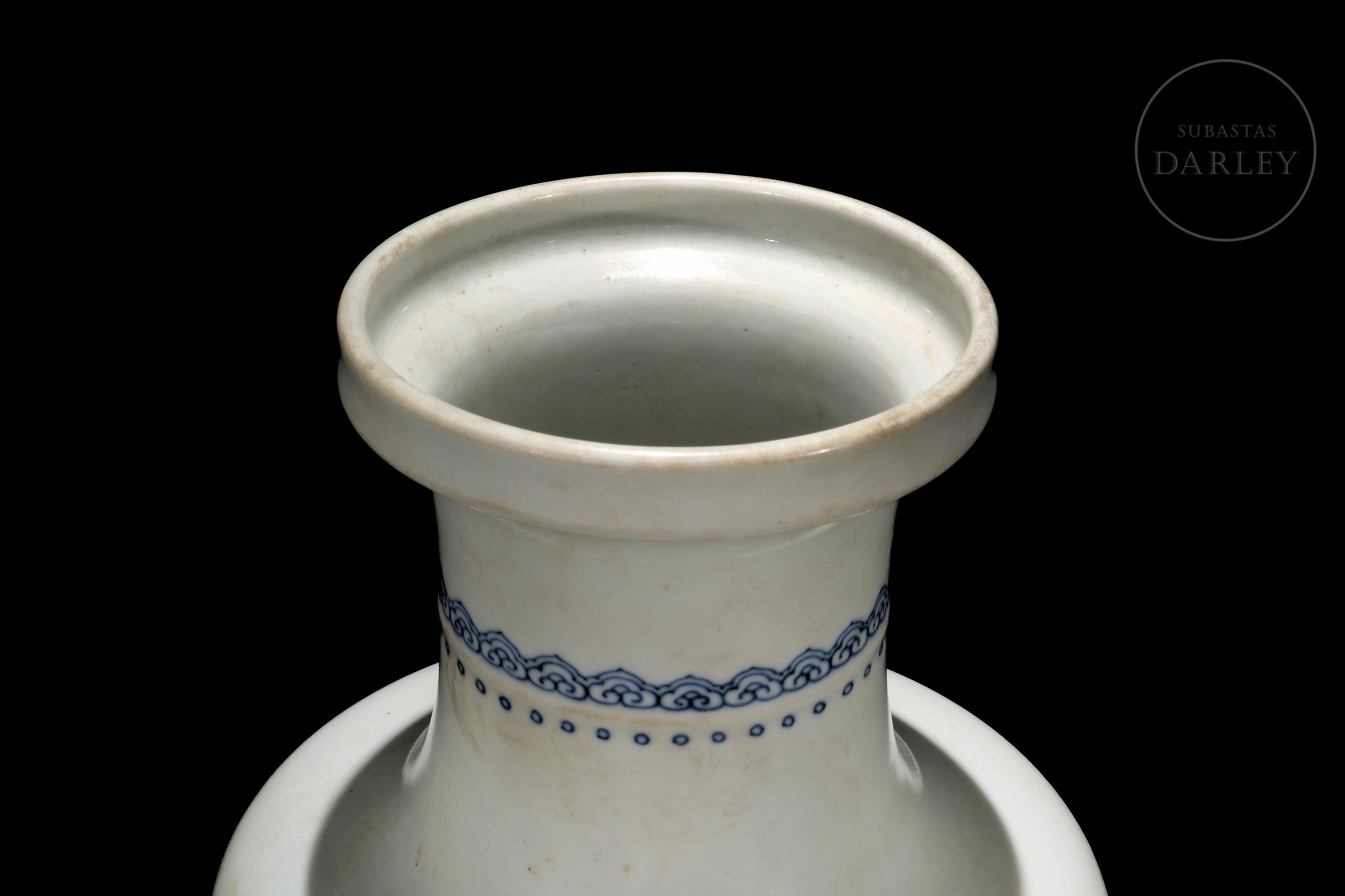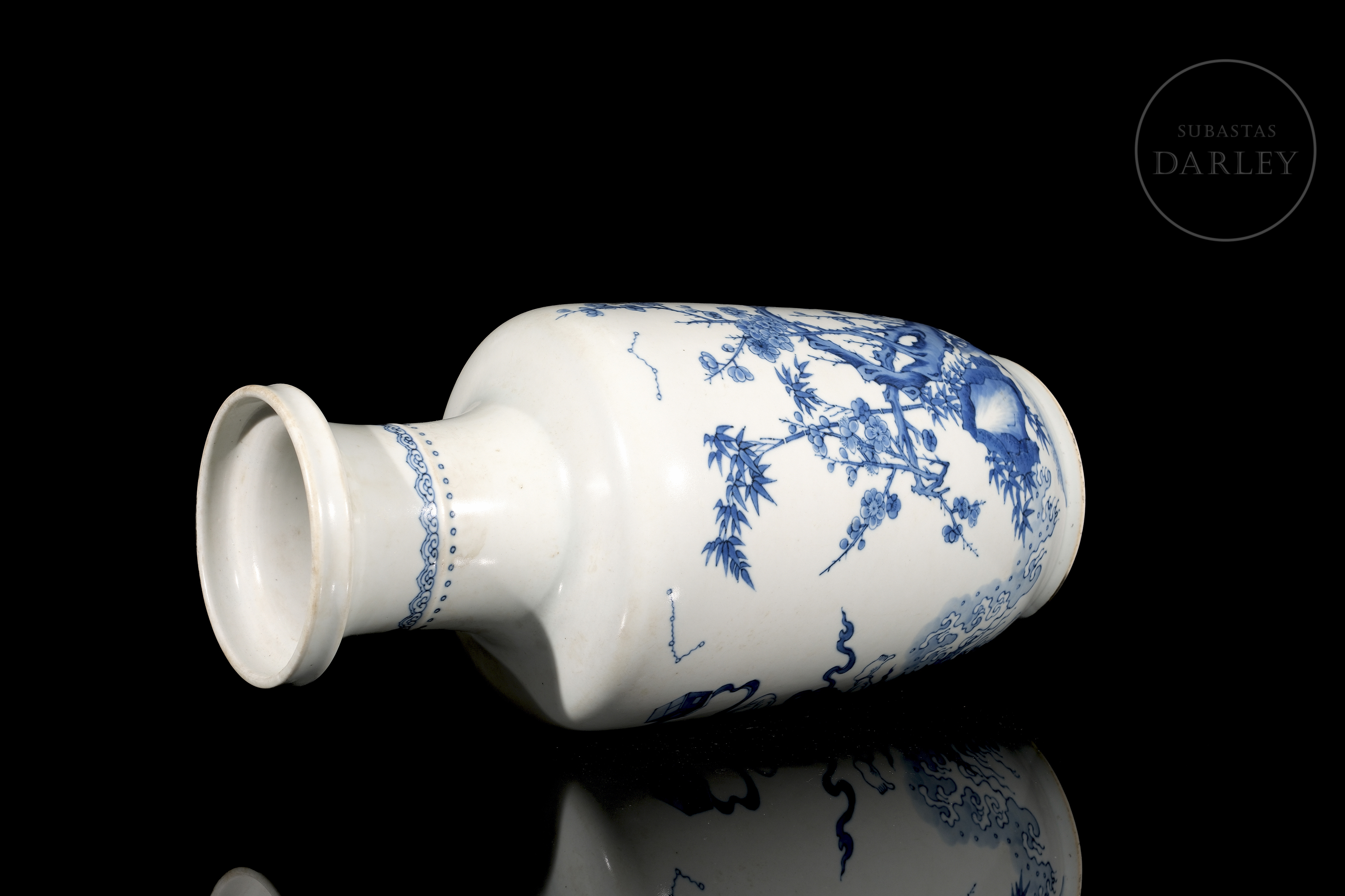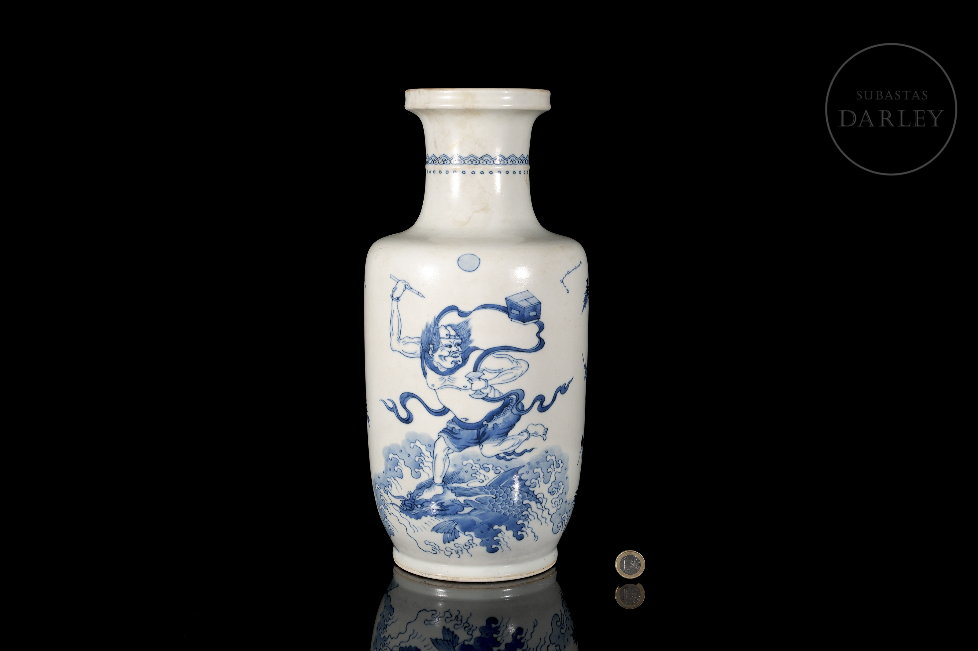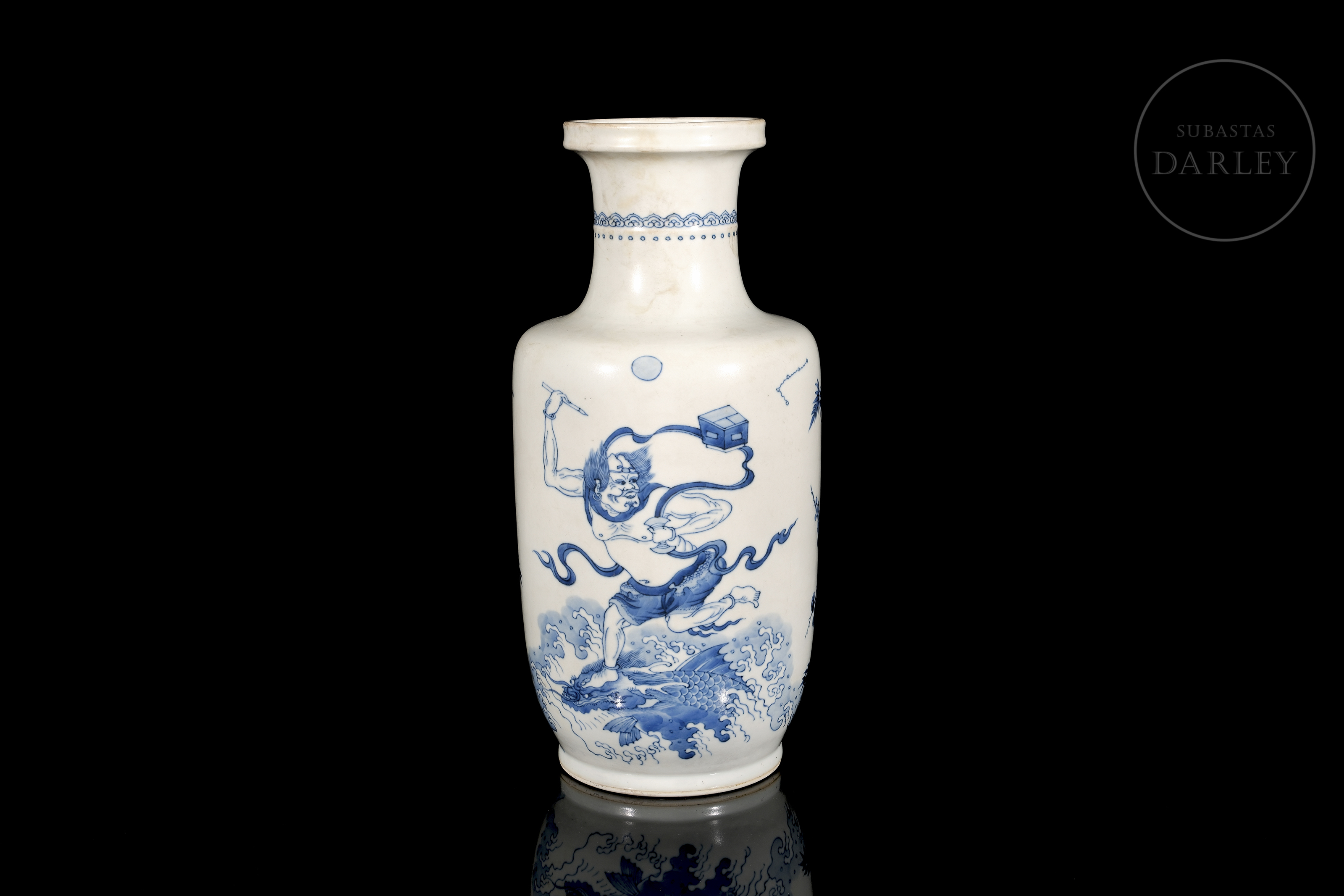 Jarrón de porcelana en azul y blanco "Deidad", dinastia Qing
