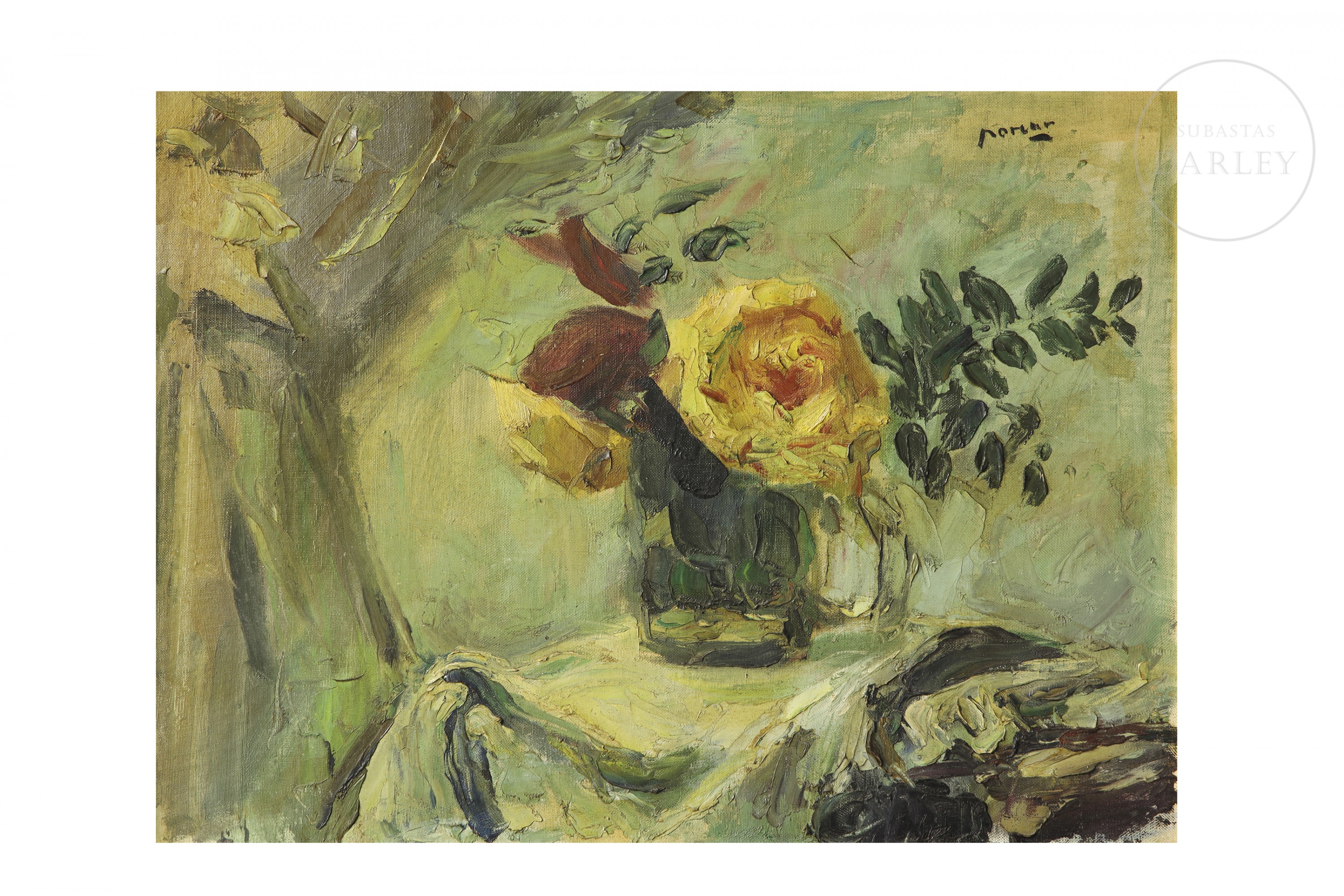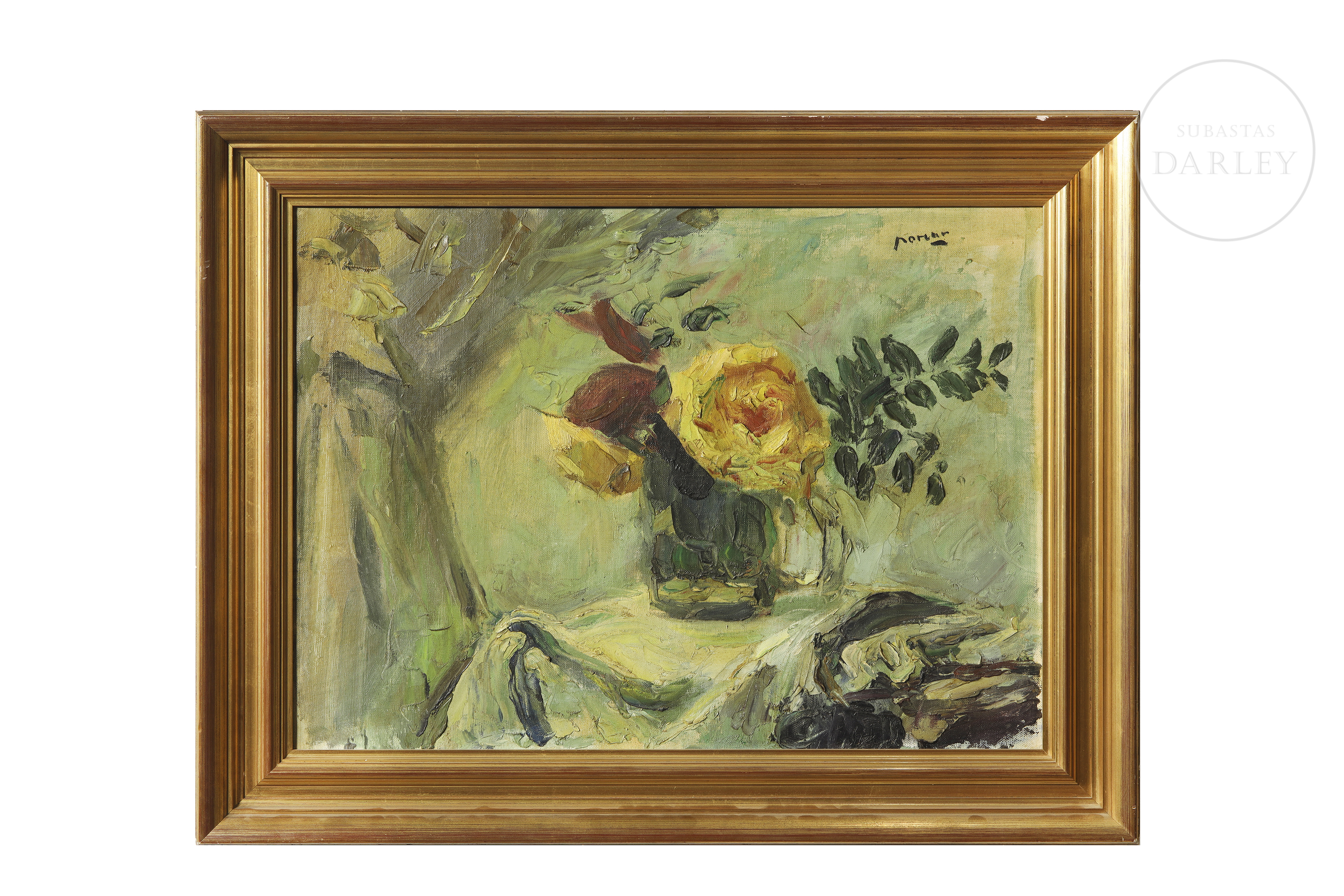 Juan Bautista Porcar Ripollés (1889-1974) "Bodegón con rosas"