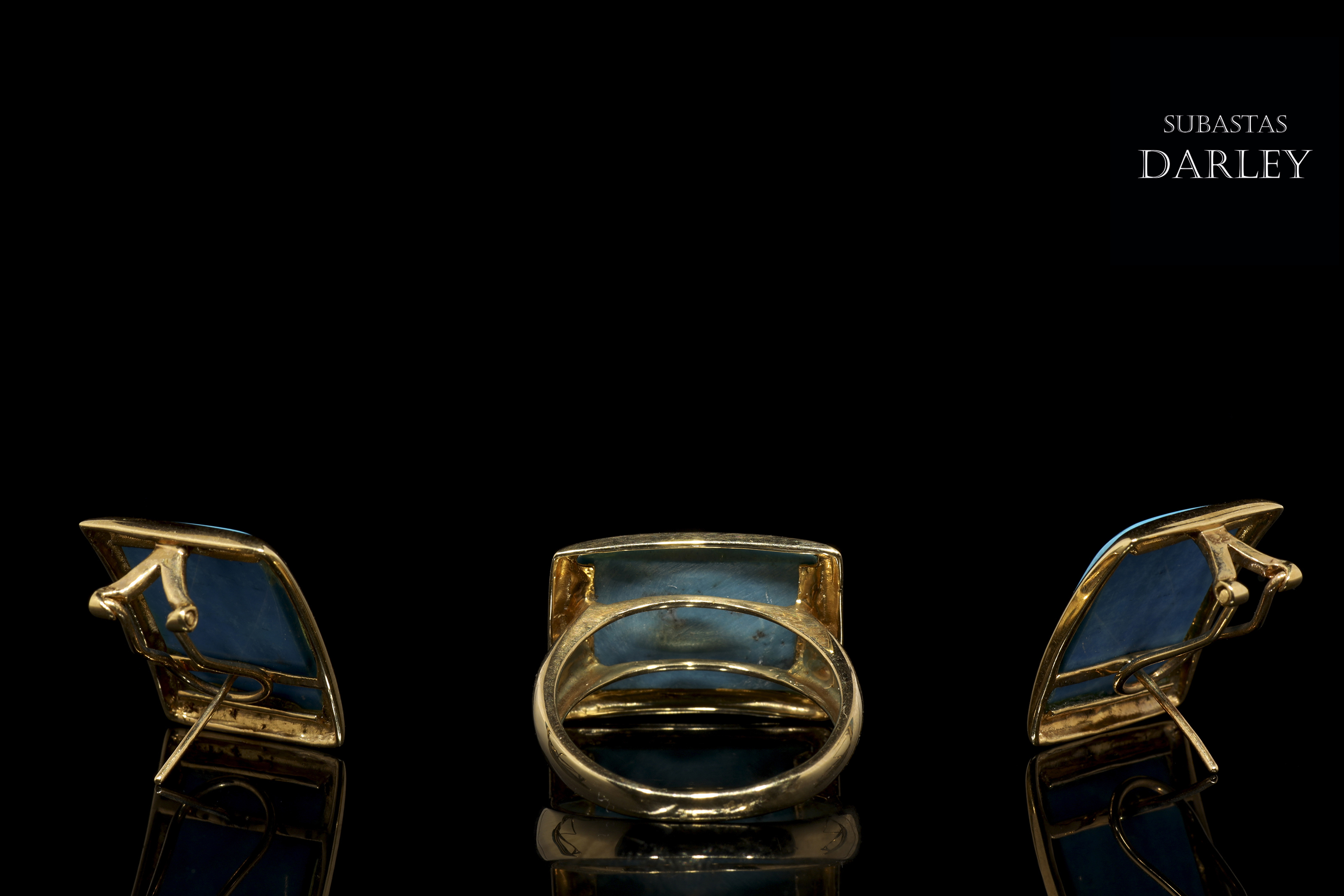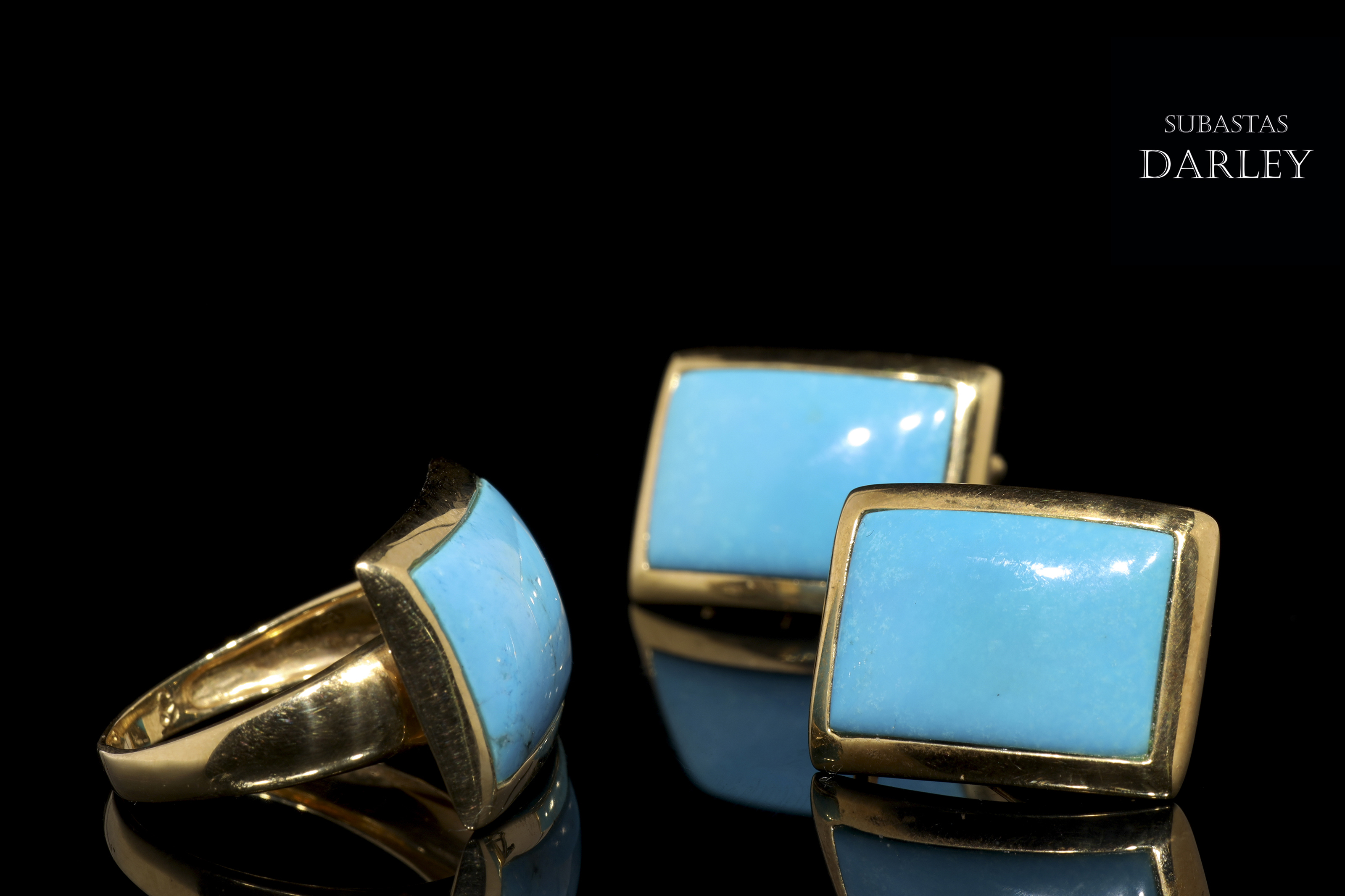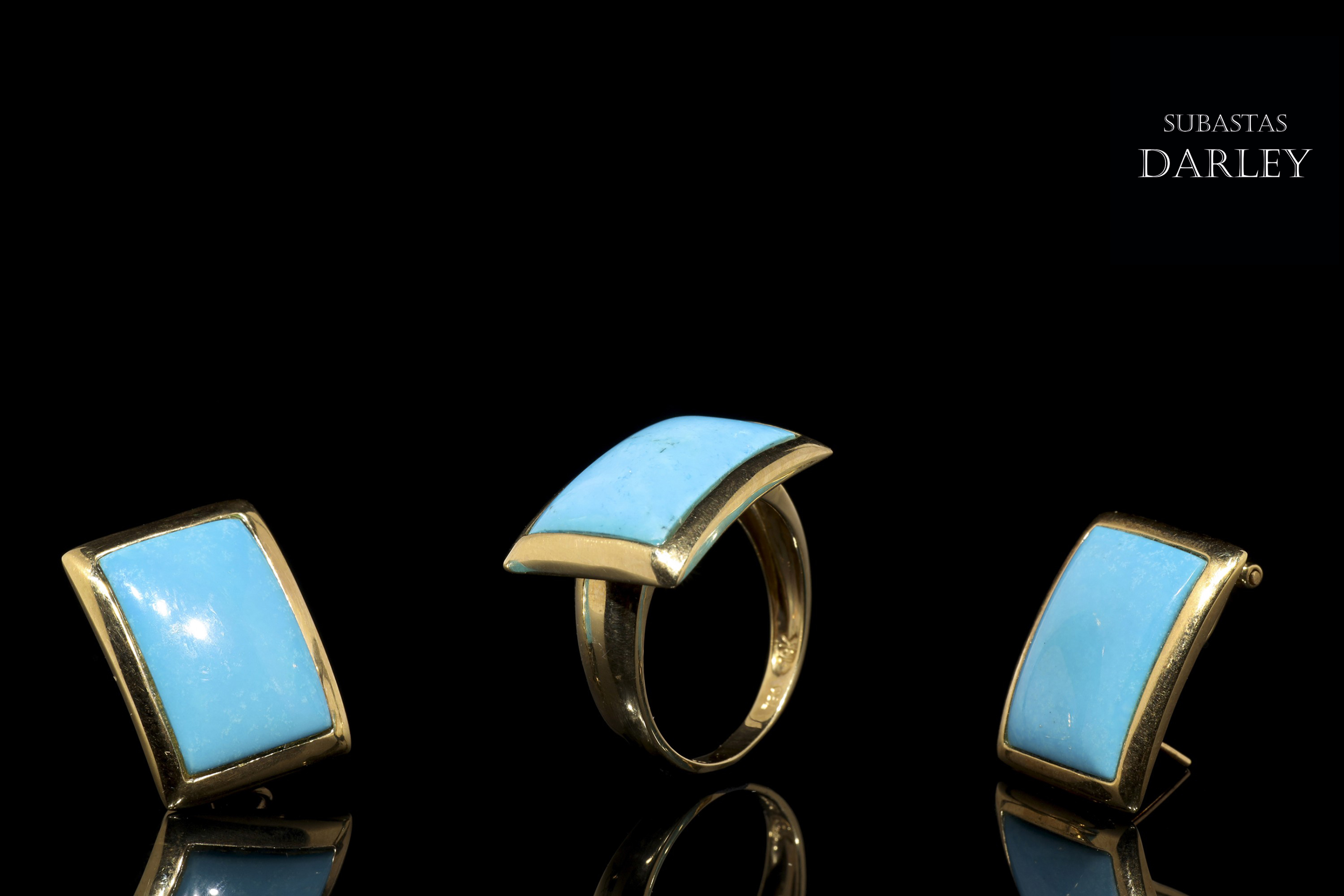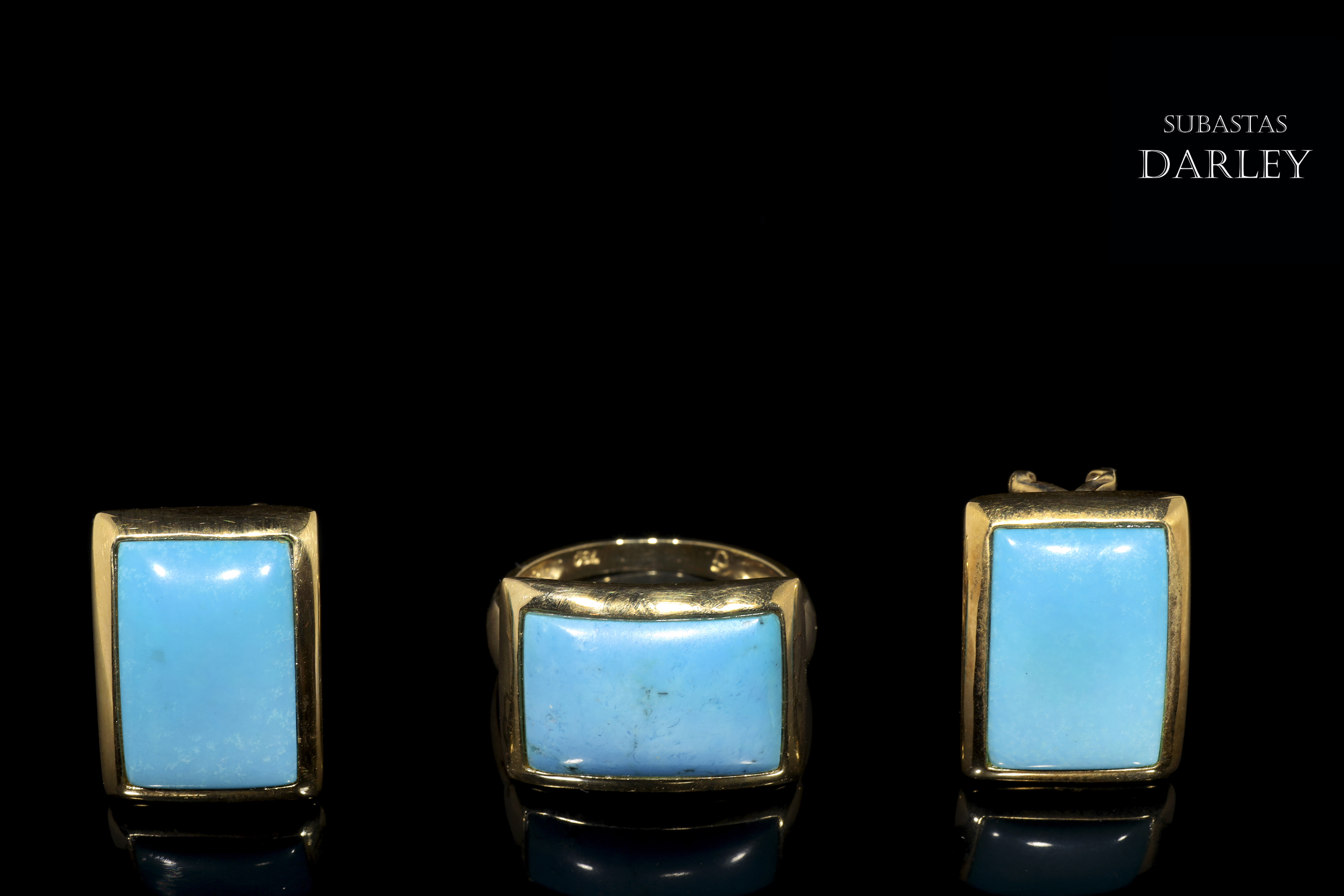 Juego de pendientes y anillo en oro amarillo 18 k y turquesas