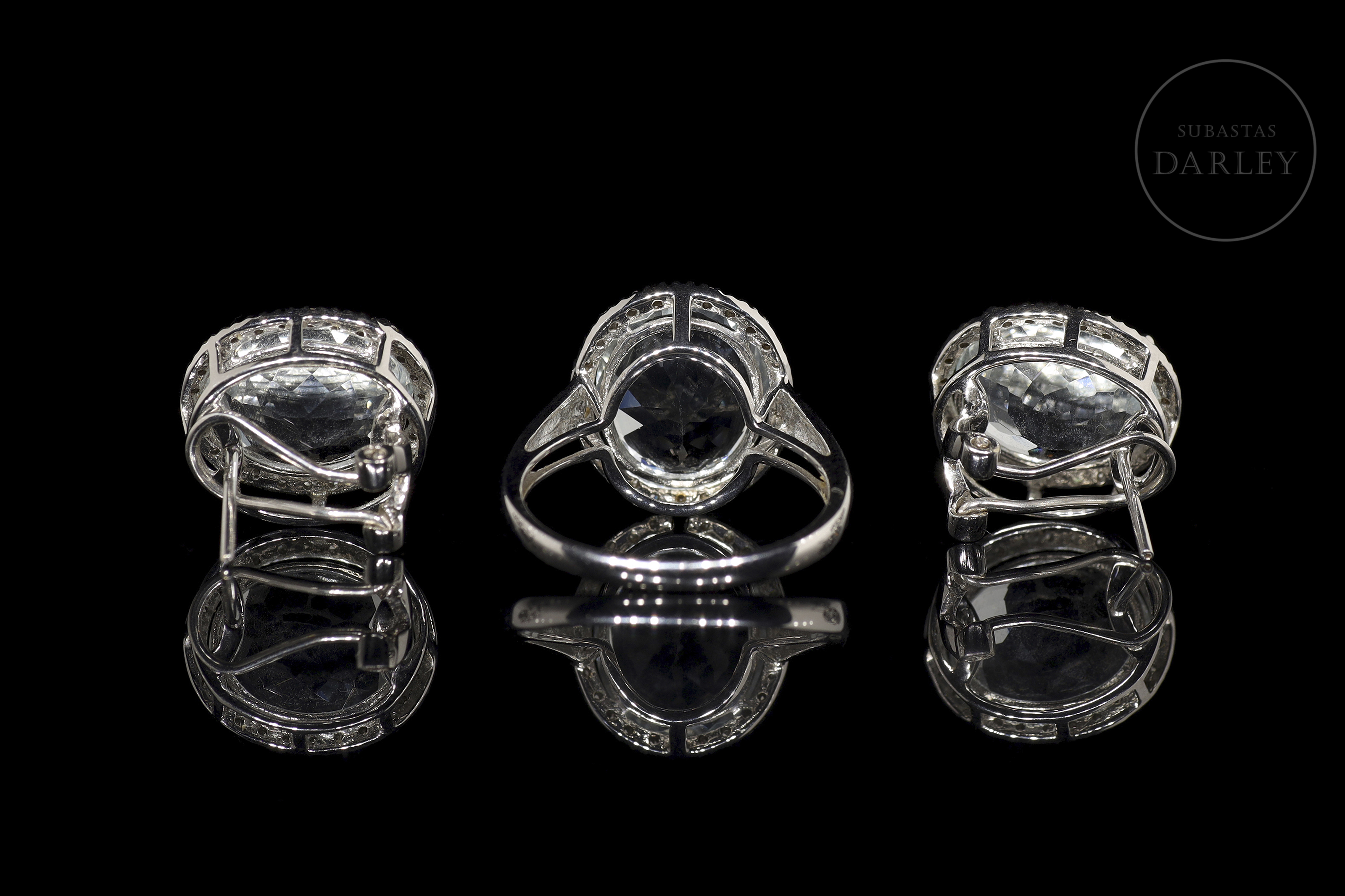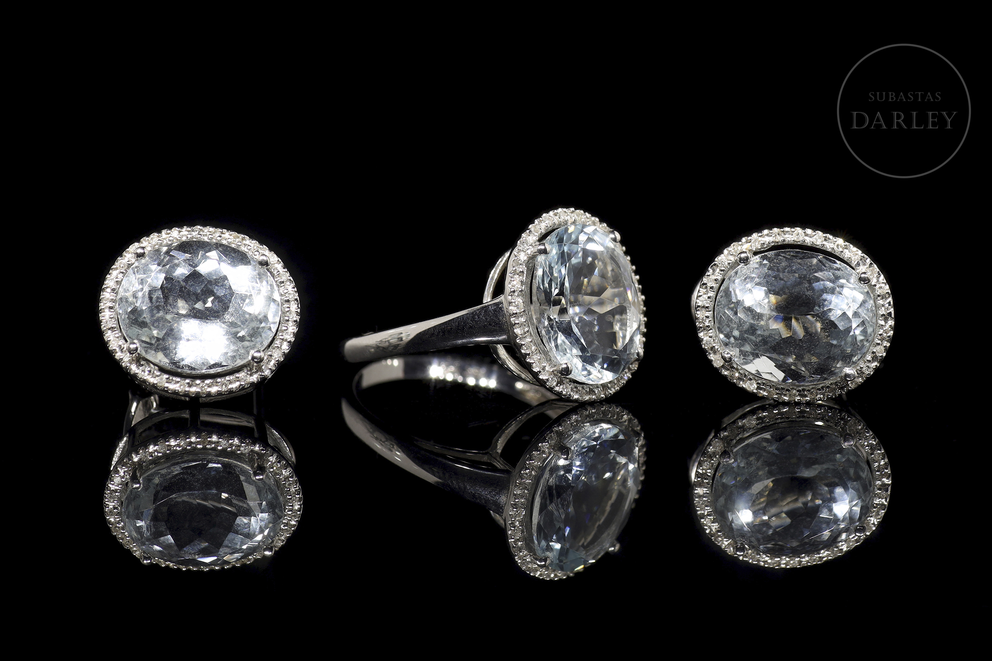 Juego en oro blanco de 18k con aguamarinas y diamantes