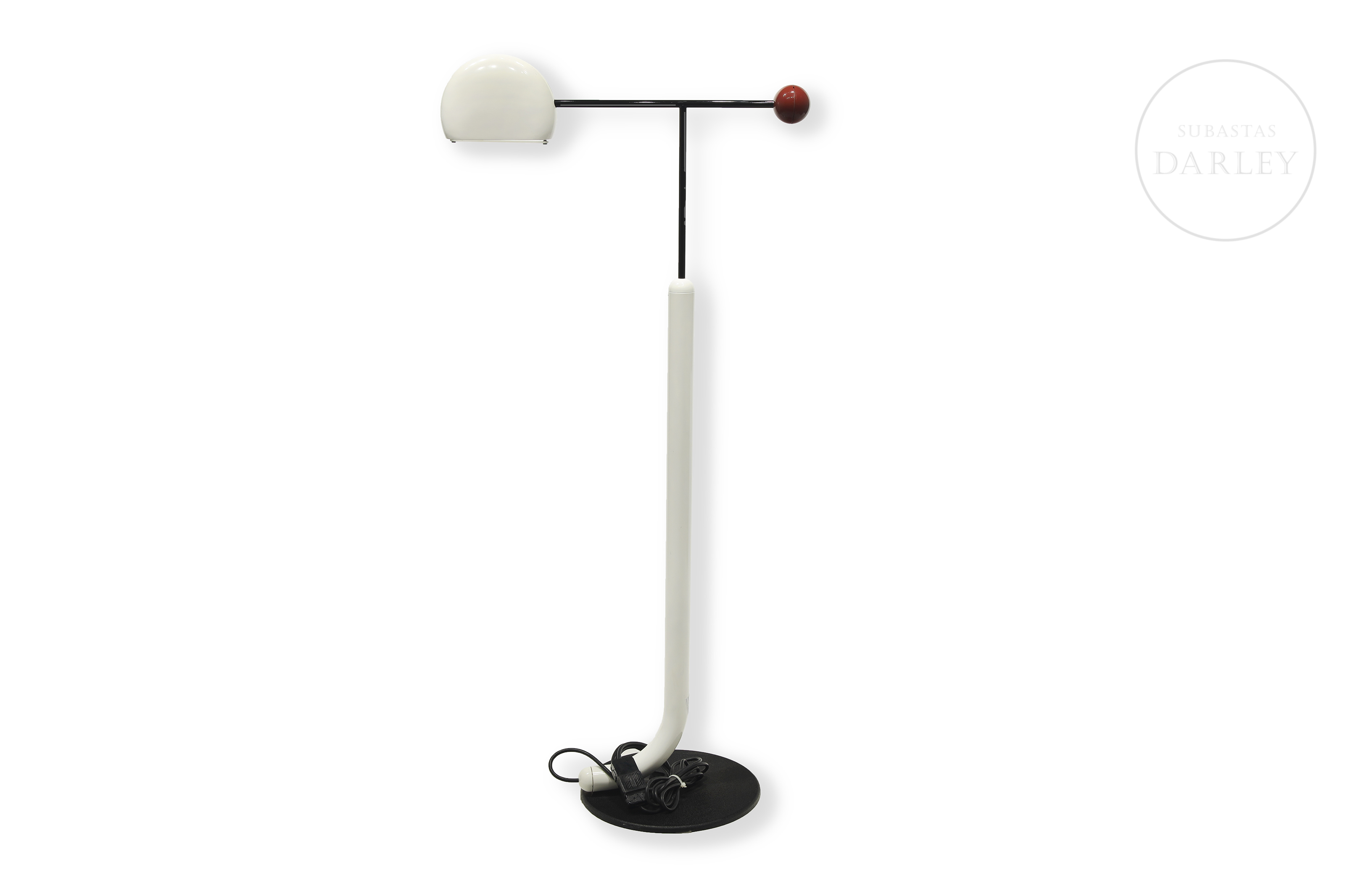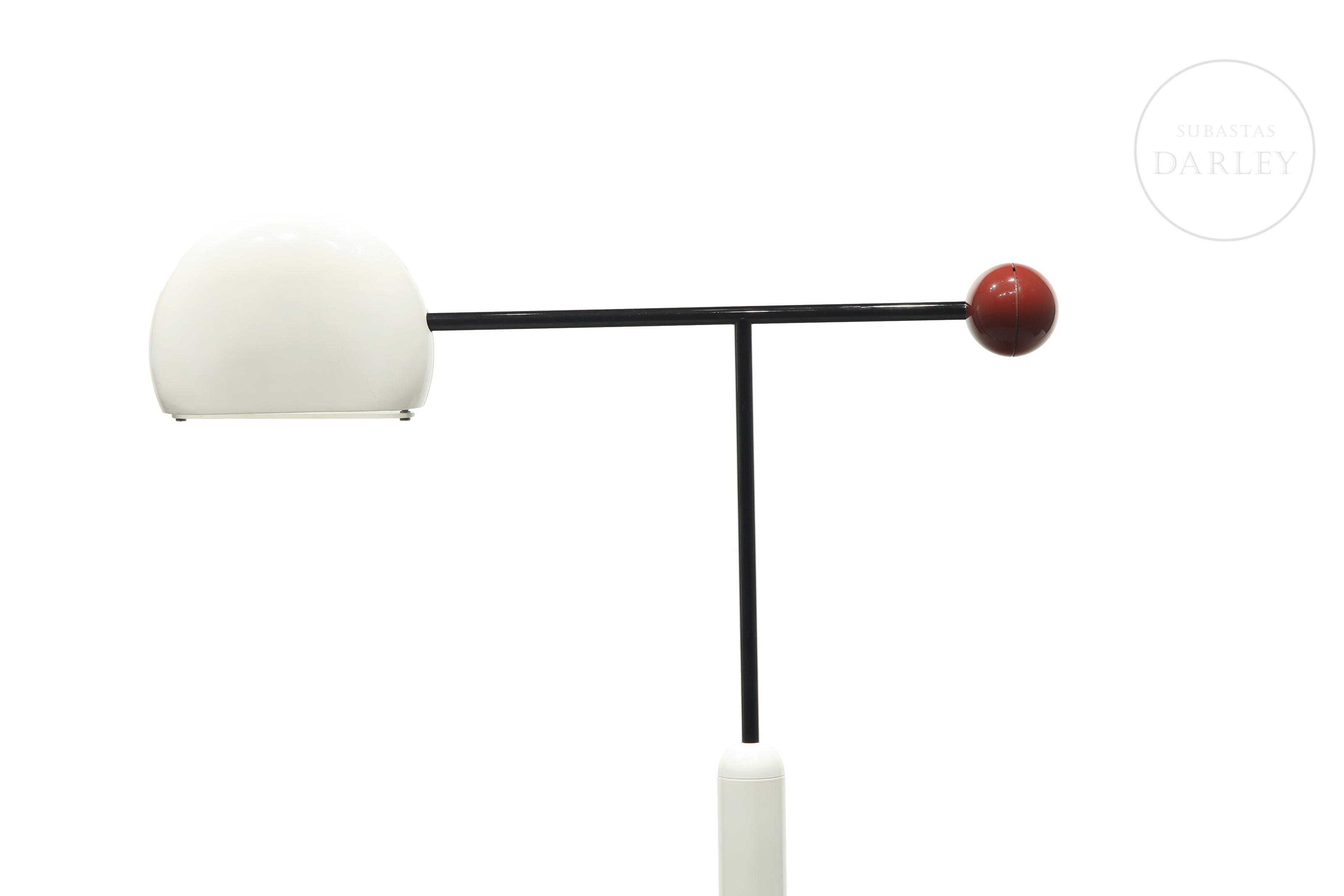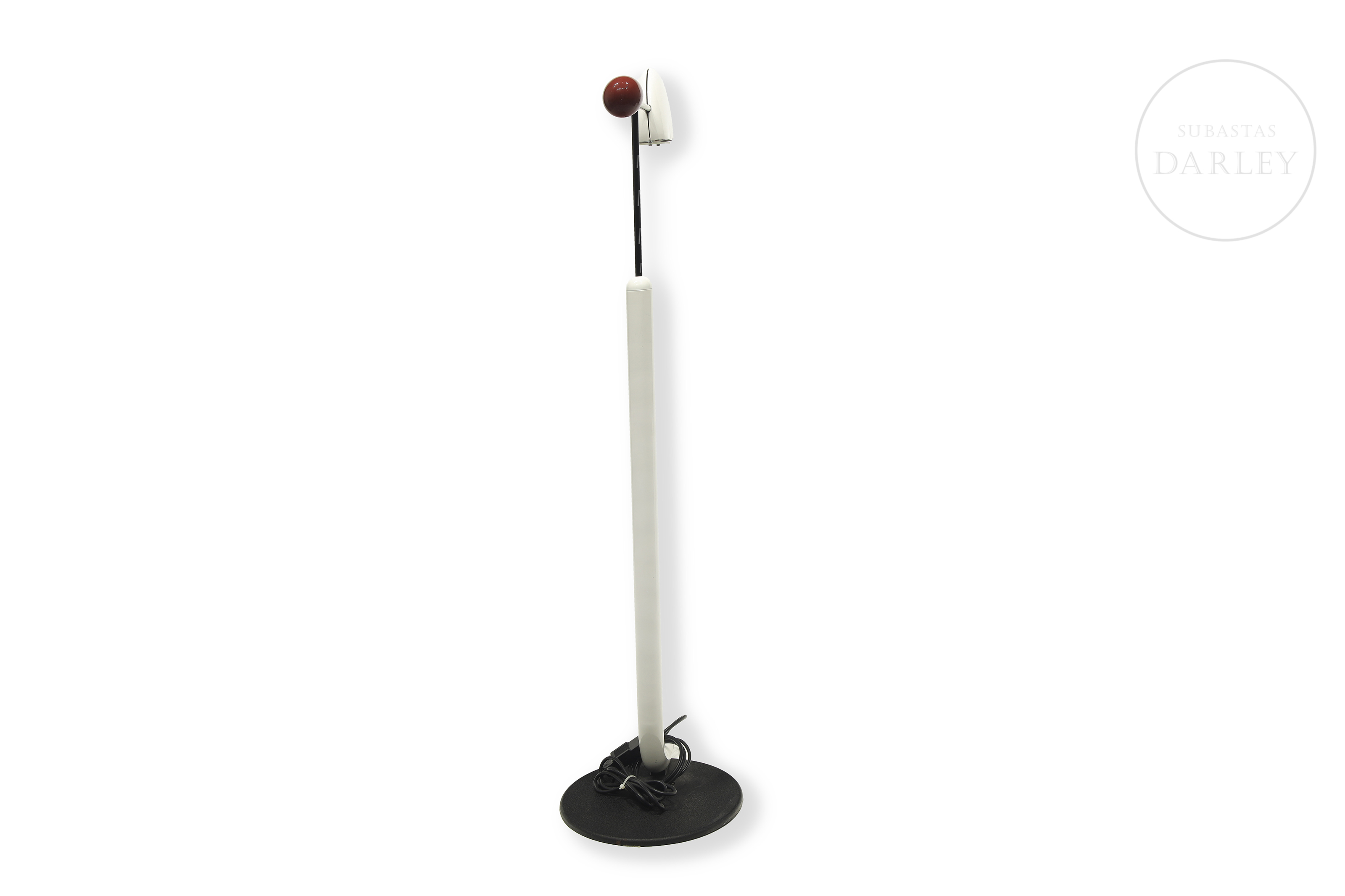 Lámpara de pie de inspiración posmoderna. Diseñada por el diseñador japonés Toshiyuki Kita para Luci y fabricada en Italia en la época de los 80, permite ser regulada en altura y dirección. Presenta ligeros desperfectos por antigüedad y uso.