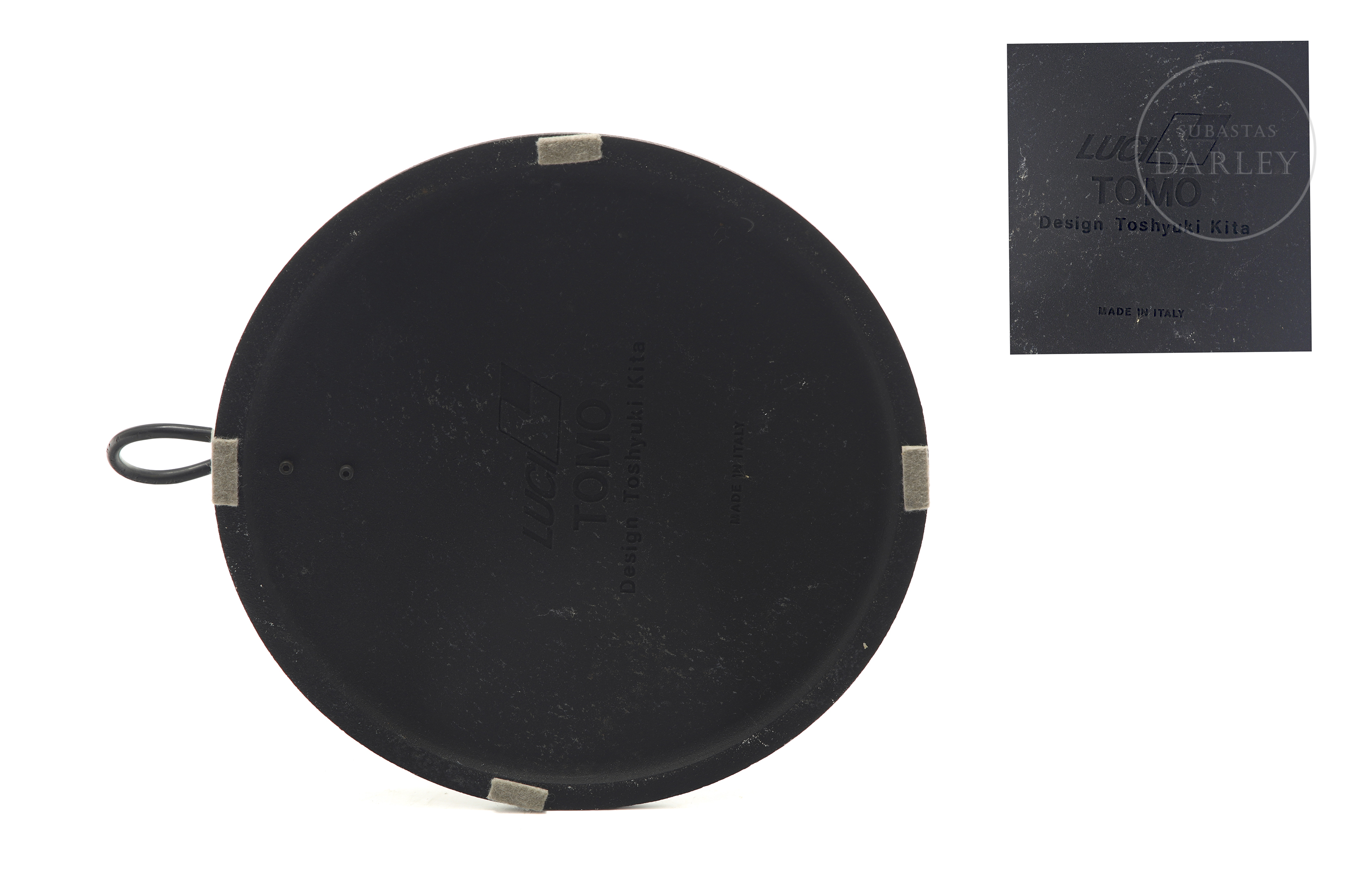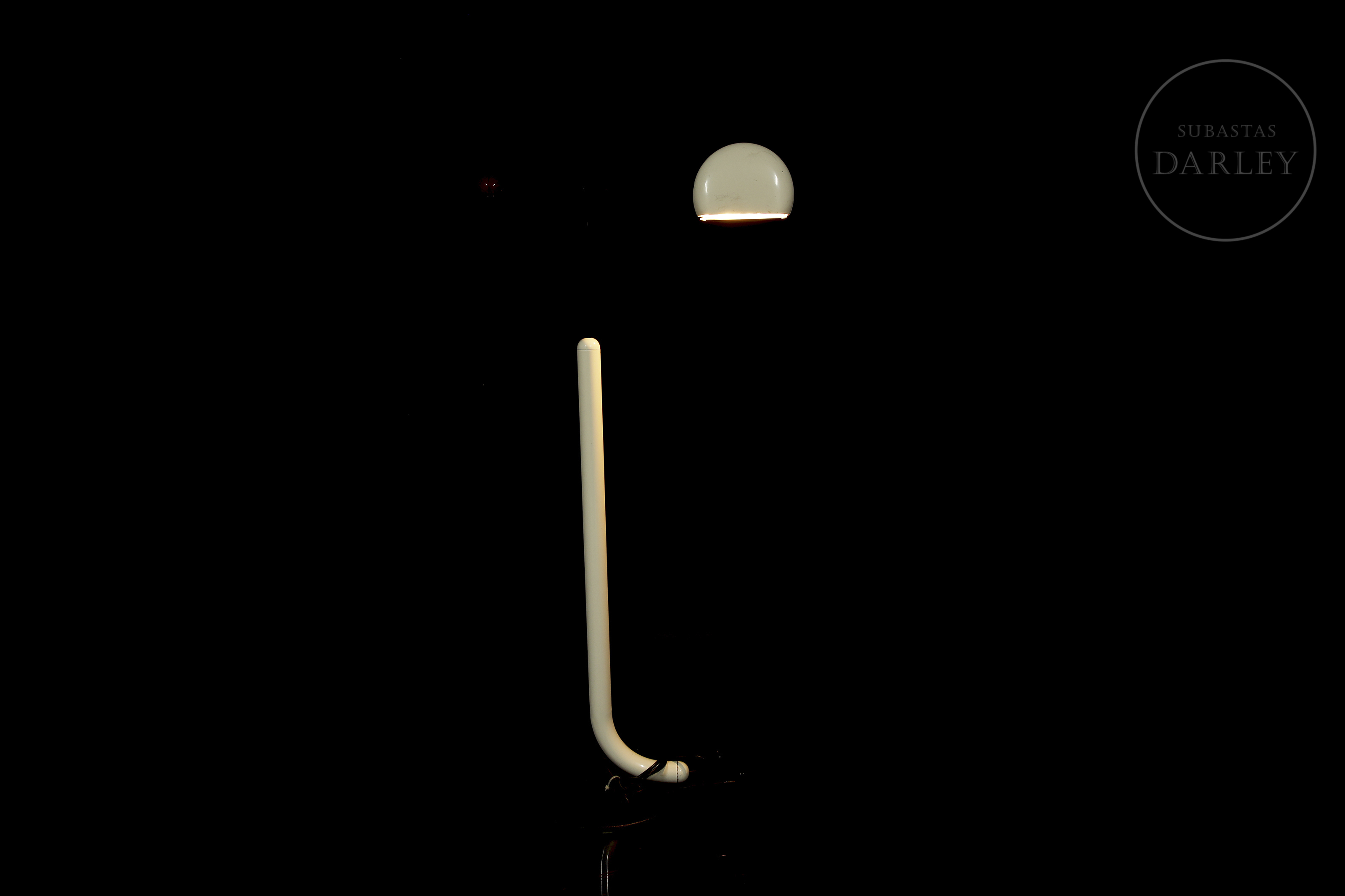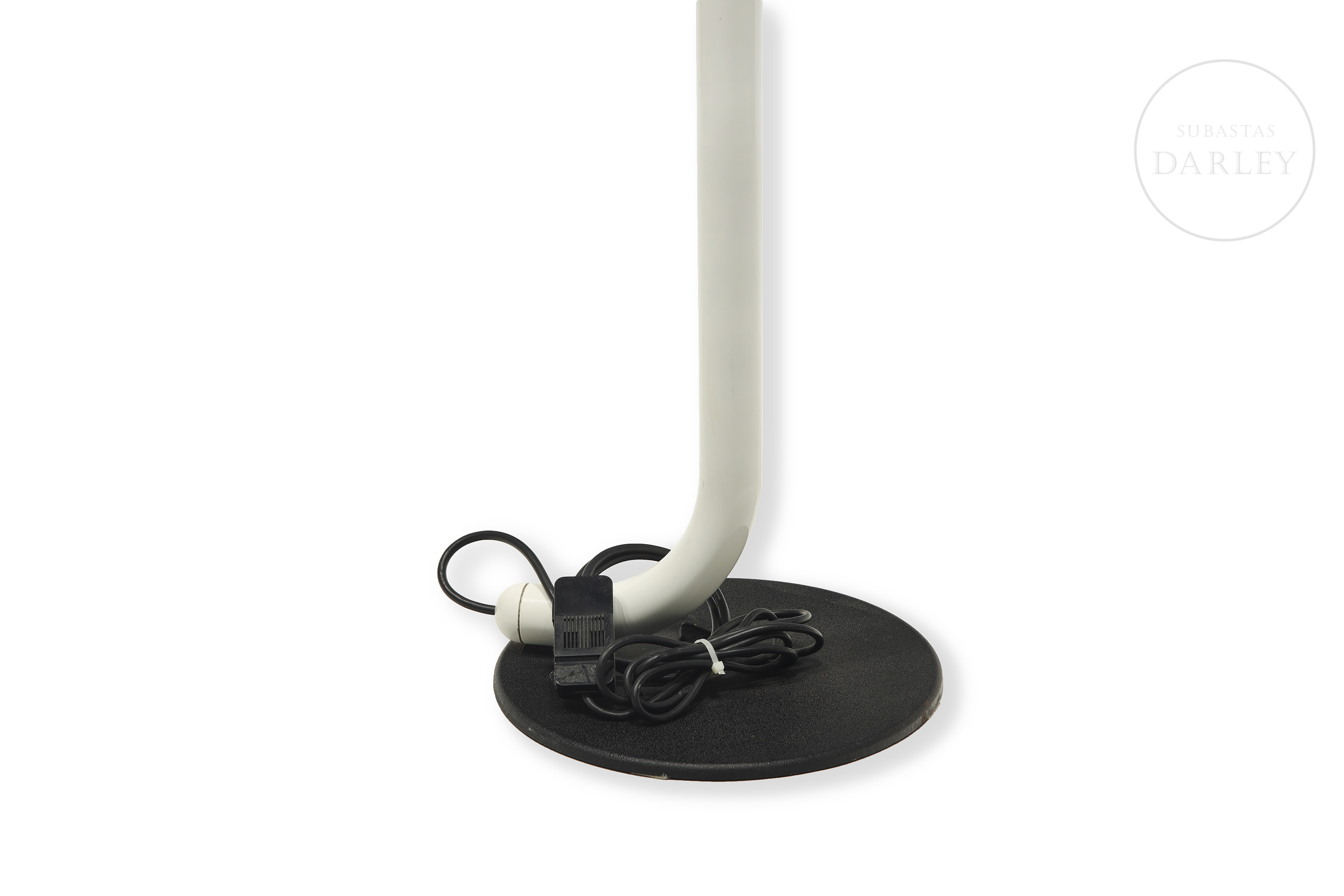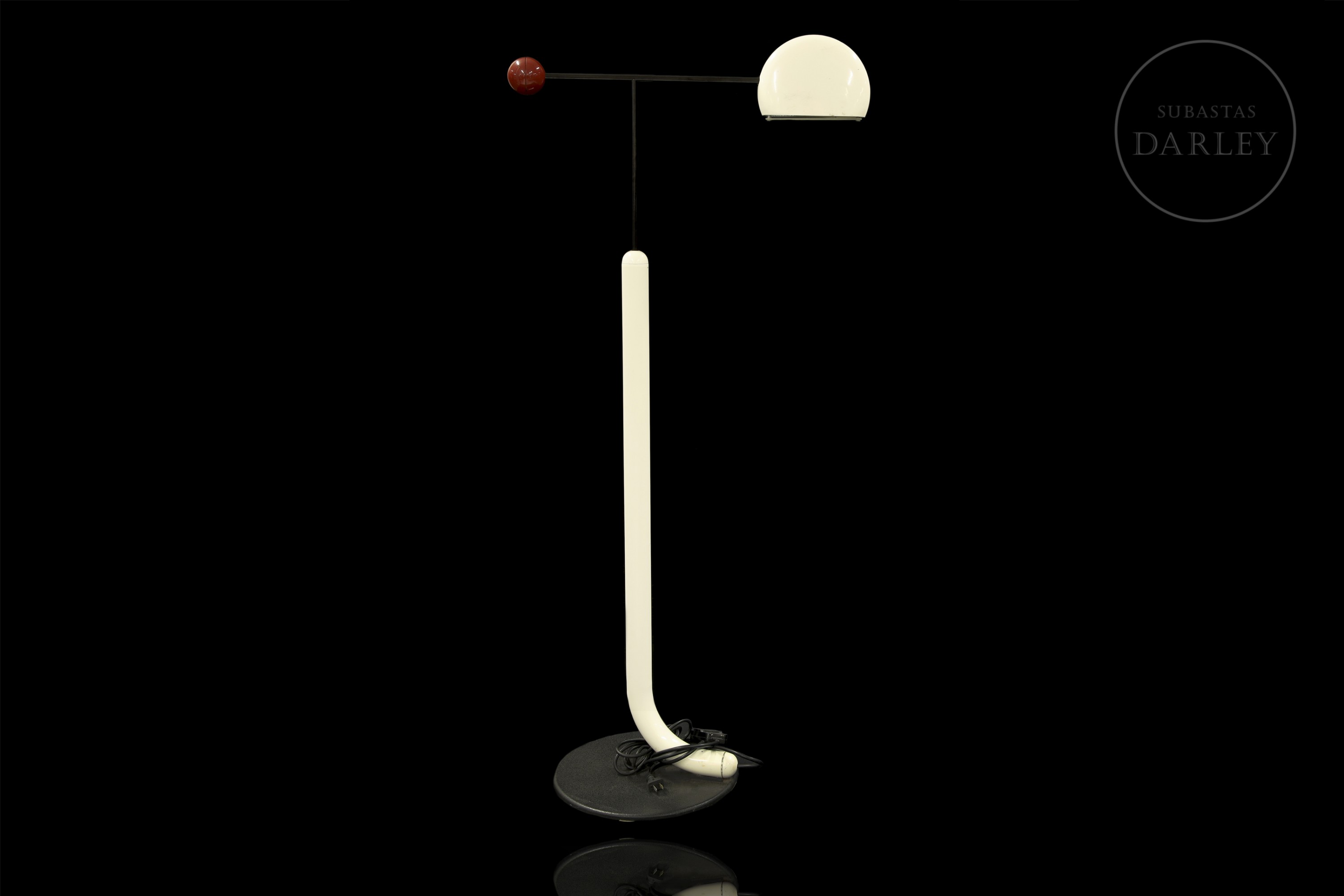 Lámpara de pie de inspiración posmoderna. Diseñada por el diseñador japonés Toshiyuki Kita para Luci y fabricada en Italia en la época de los 80, permite ser regulada en altura y dirección. Presenta ligeros desperfectos por antigüedad y uso.
