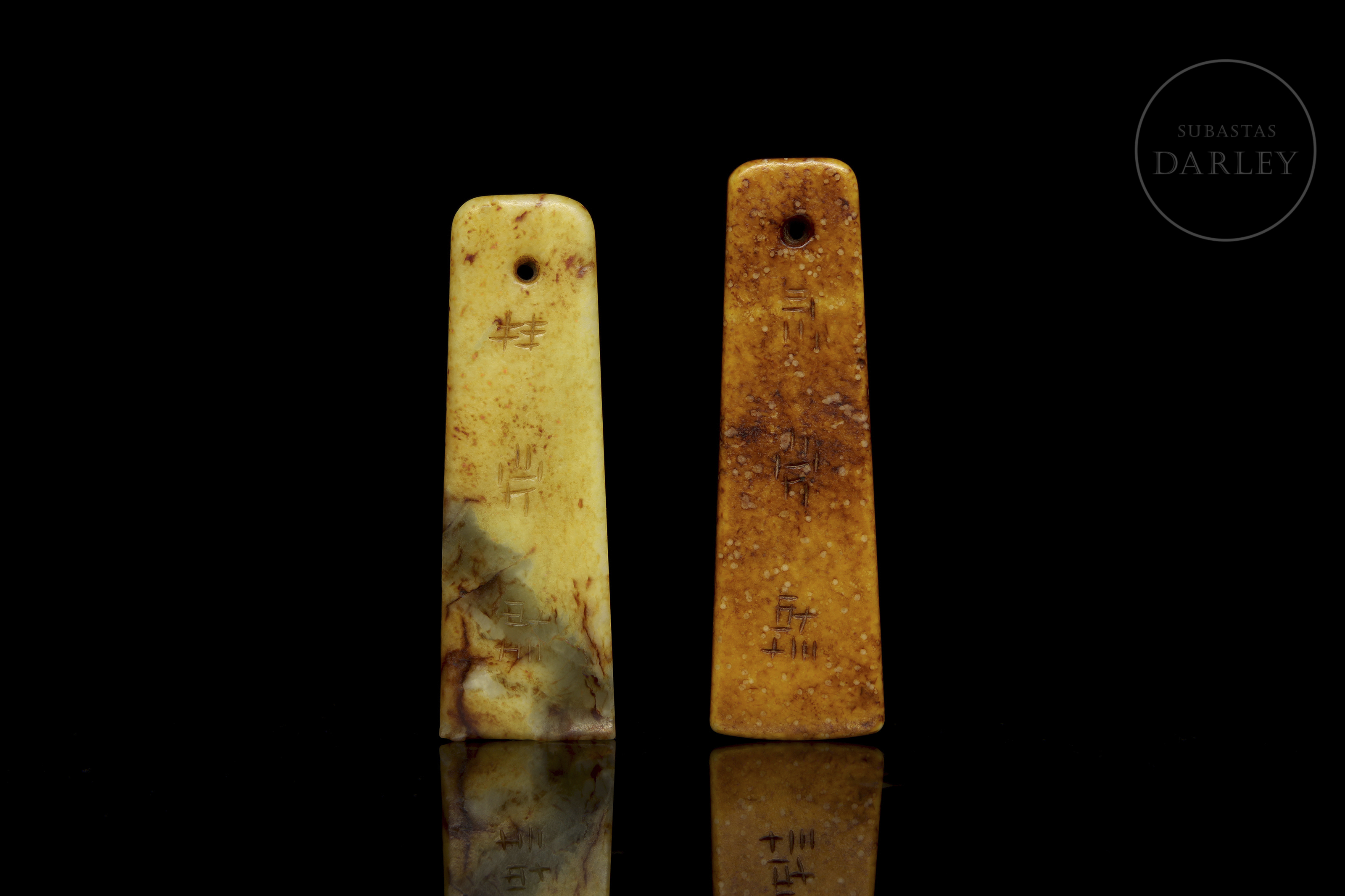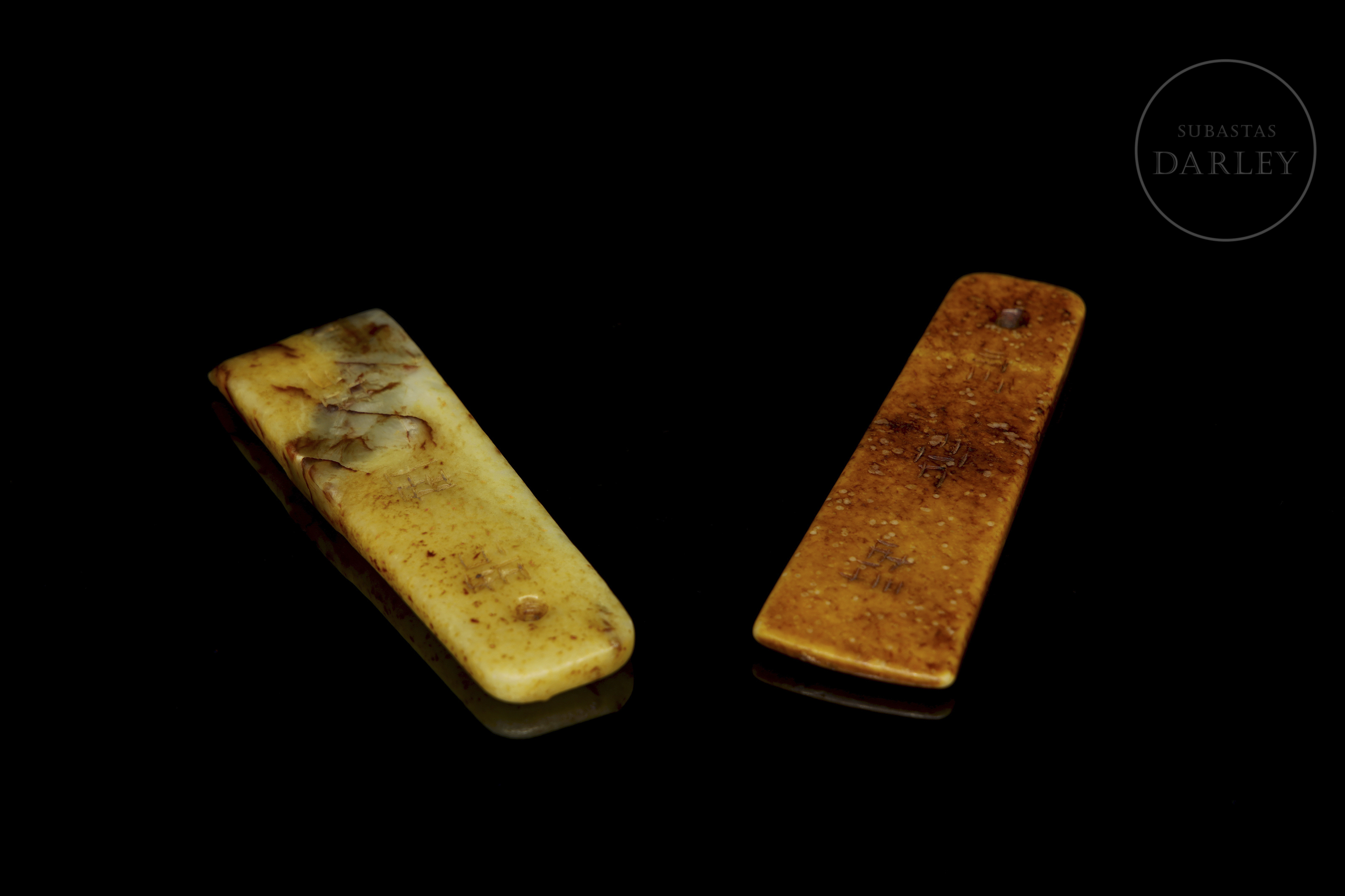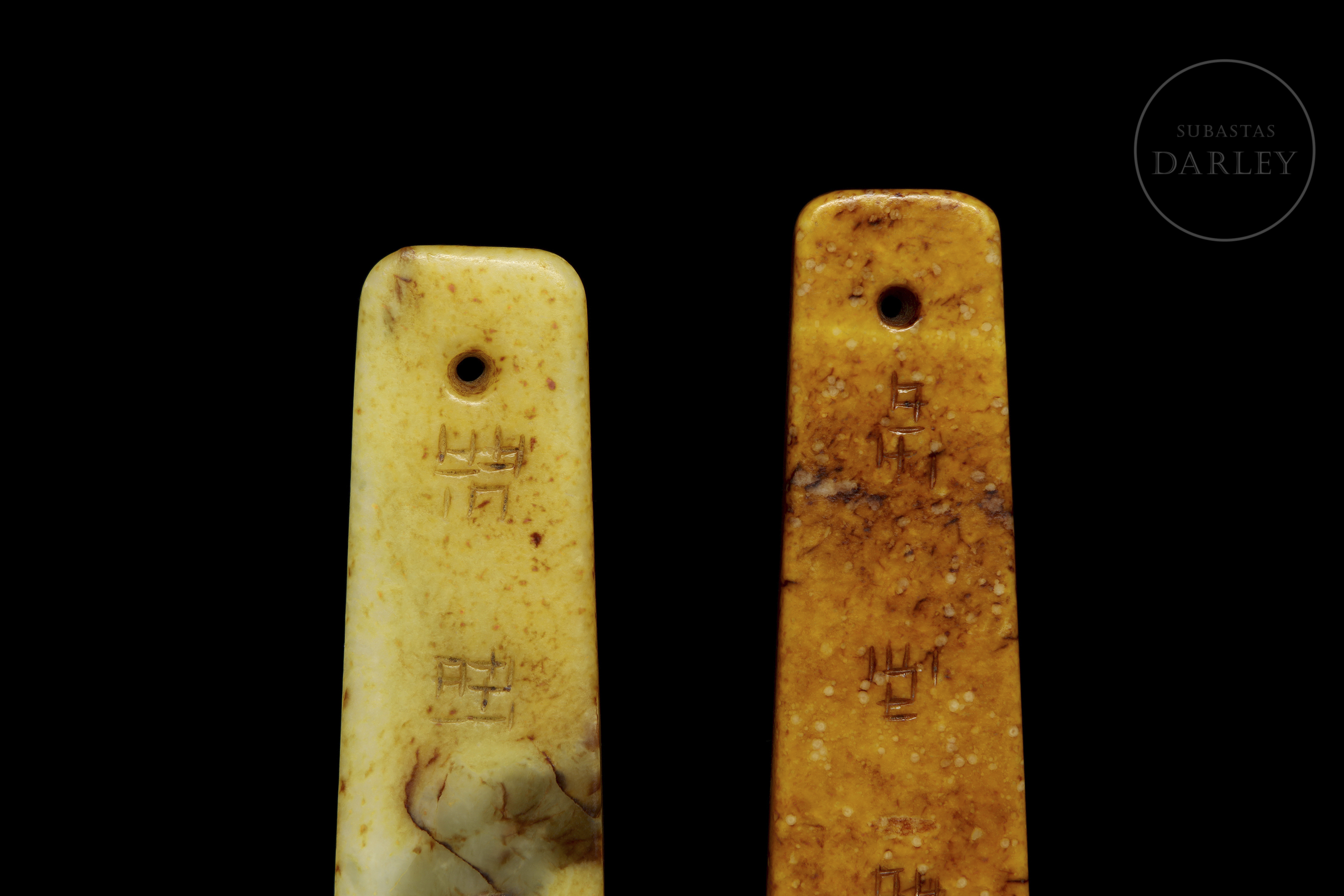 Pareja de colgantes de piedra tallada "Caligrafía", s.XX