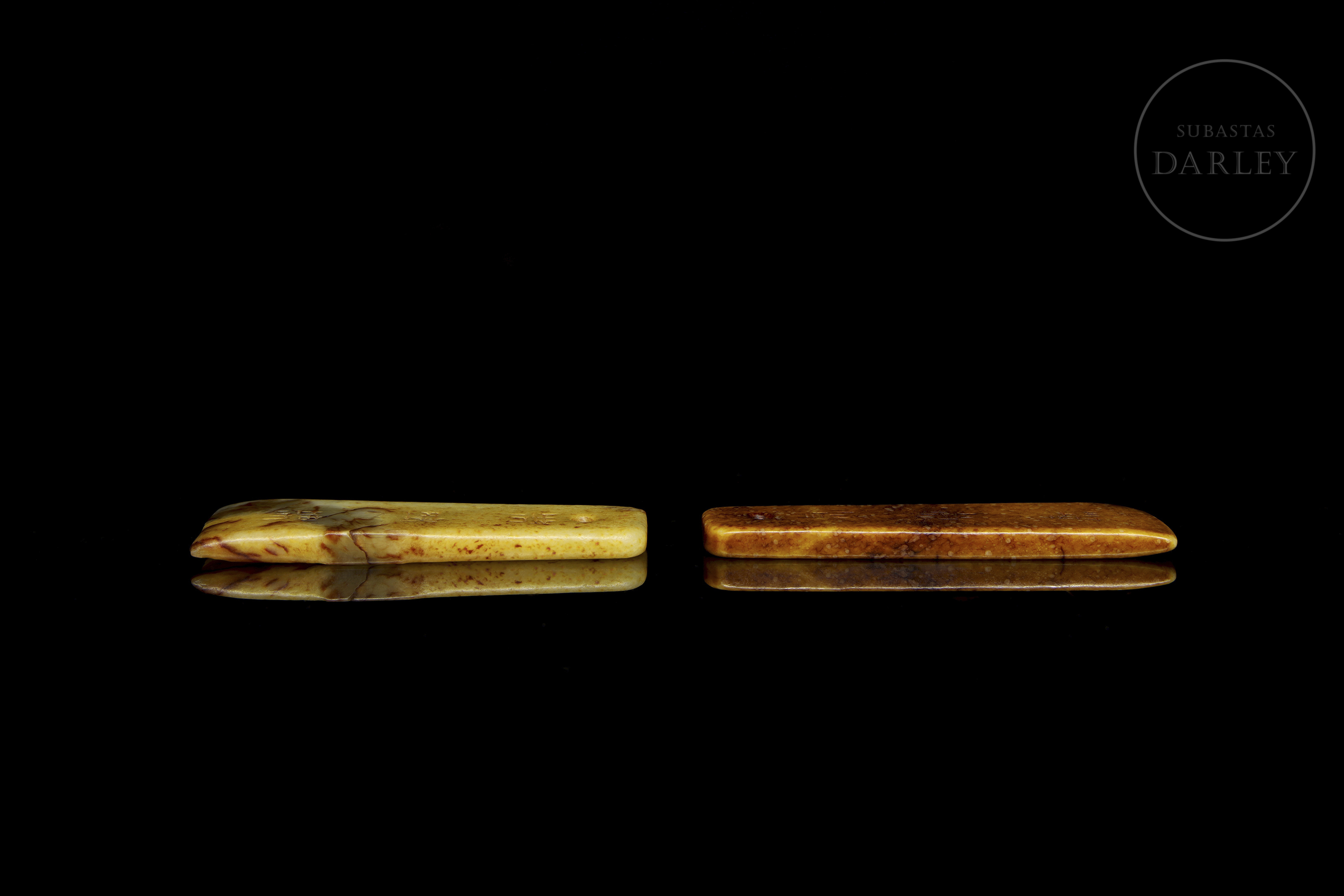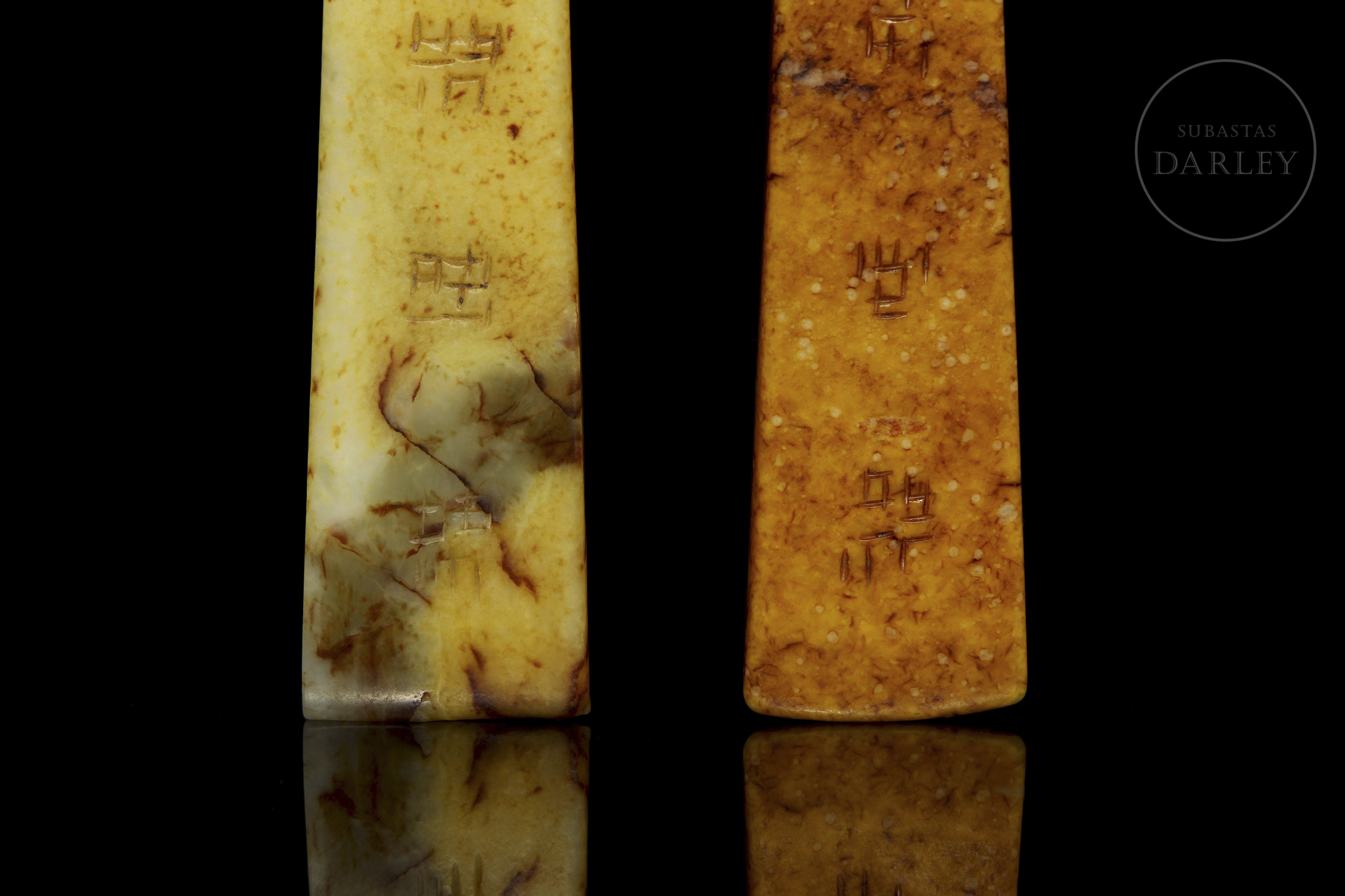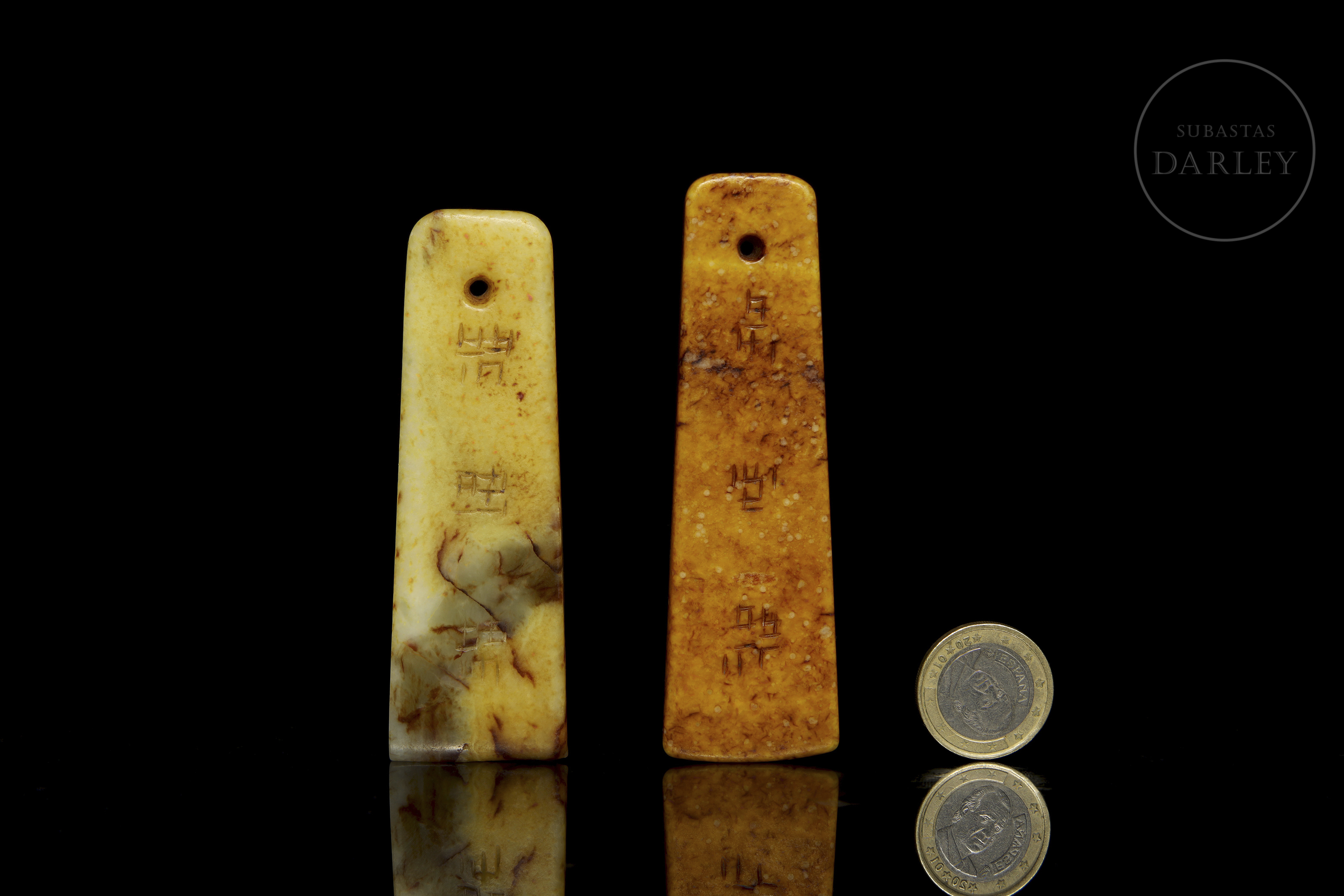 Pareja de colgantes de piedra tallada "Caligrafía", s.XX