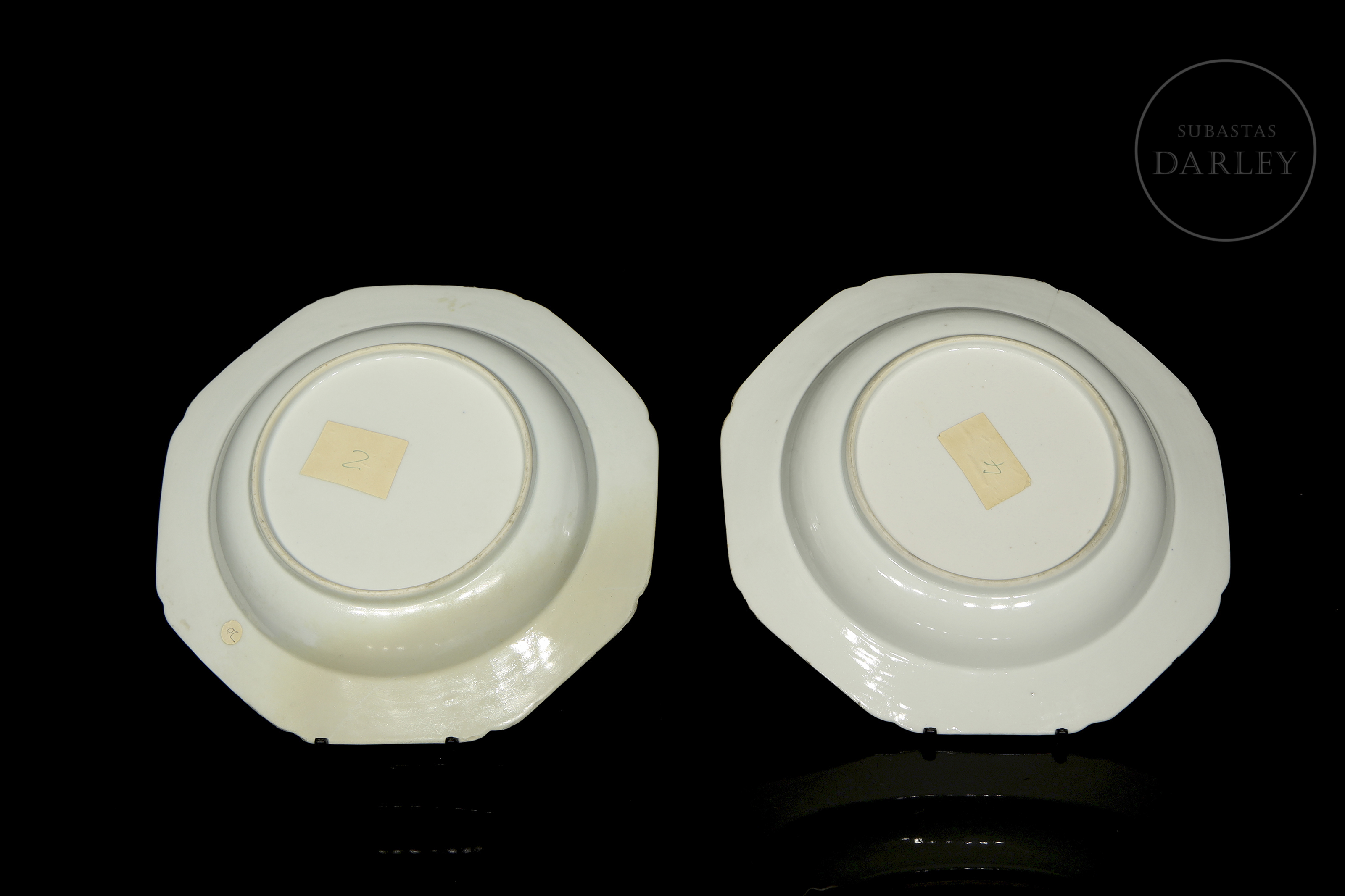 Pareja de platos de cerámica esmaltada "Paisaje", dinastía Qing