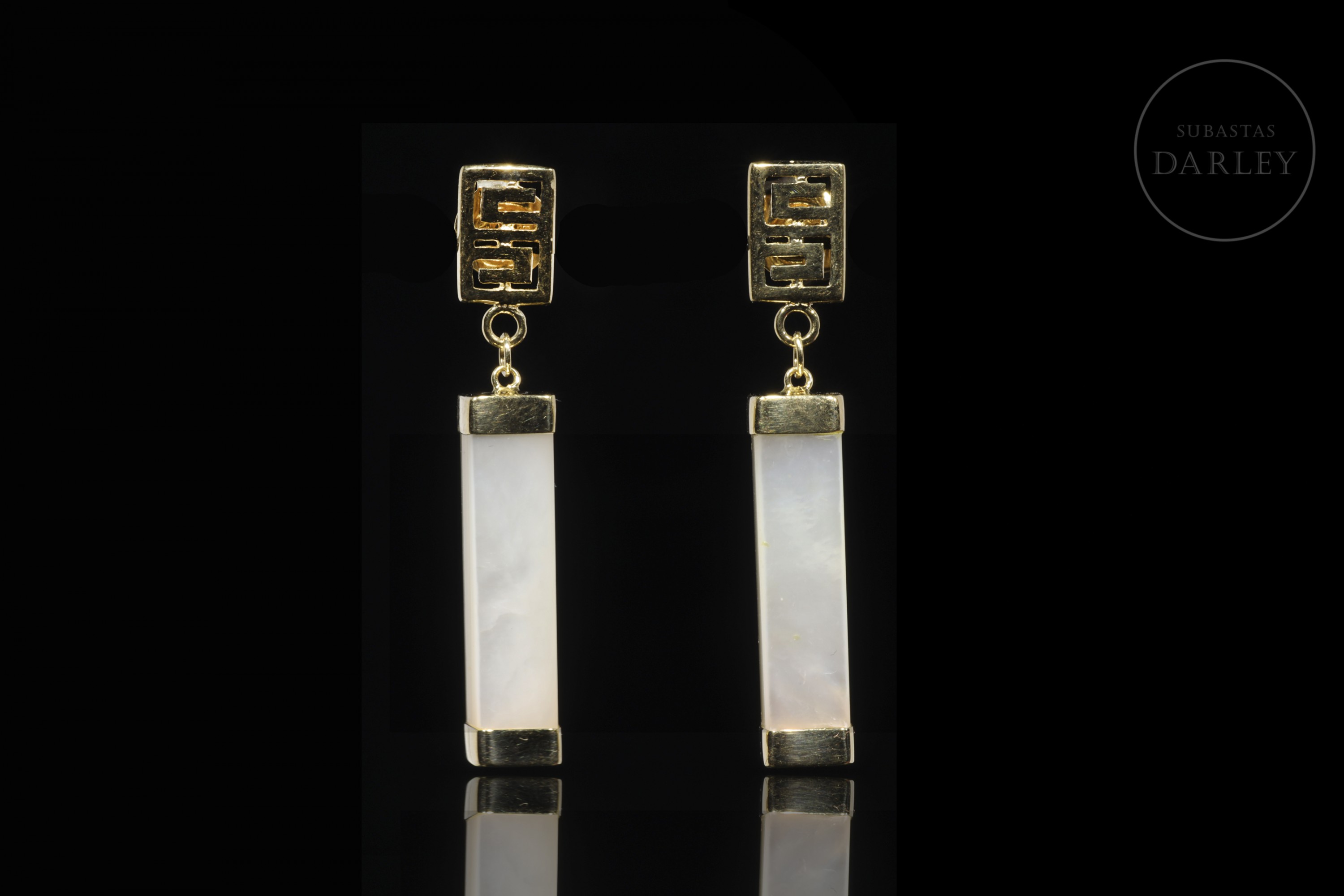 Pendientes con movimiento en oro amarillo y nácar