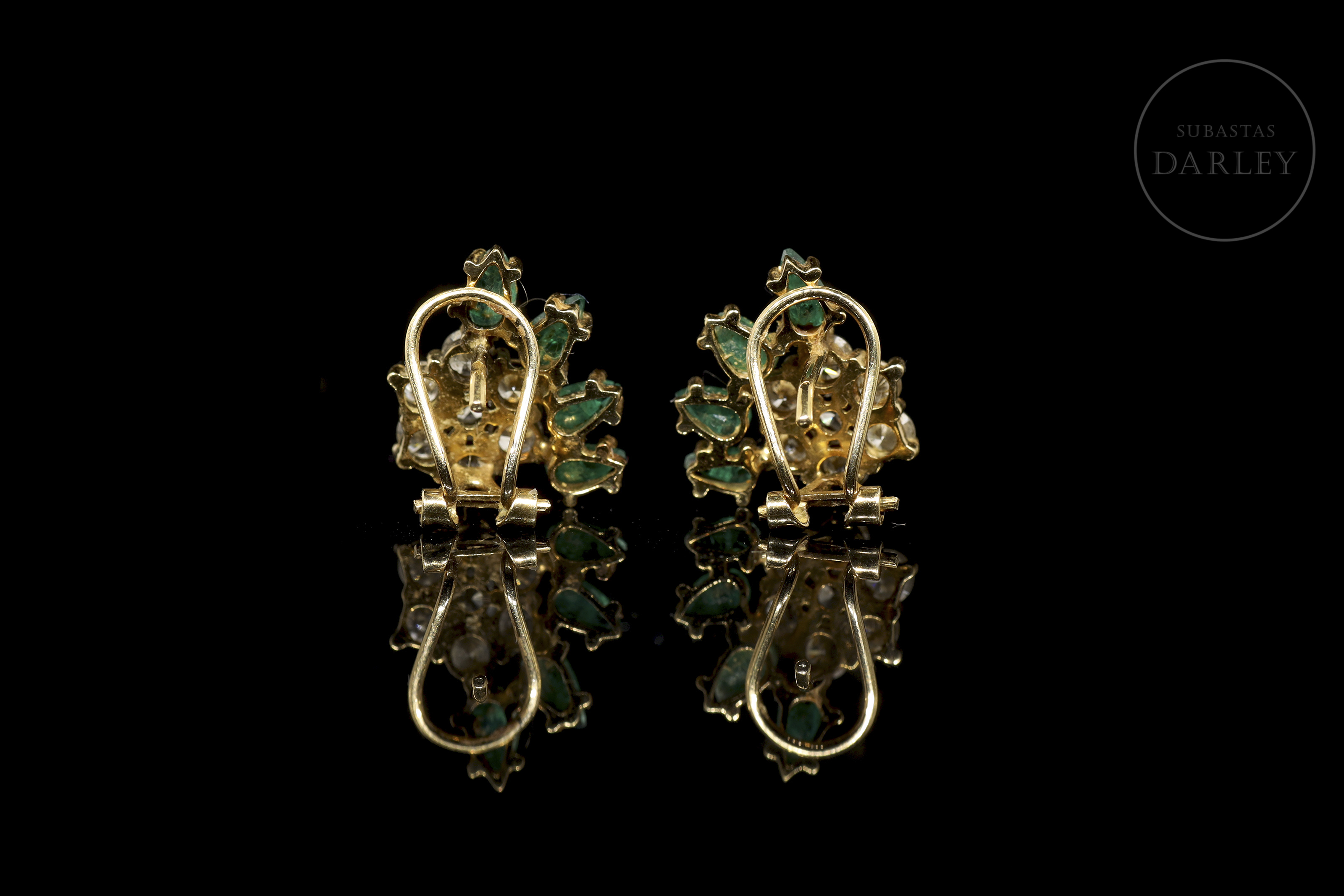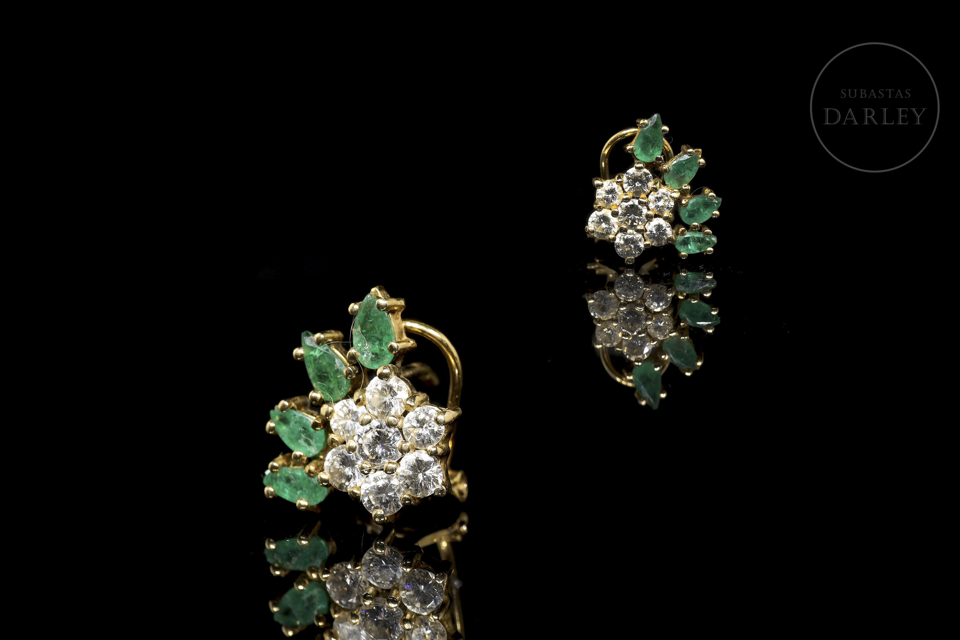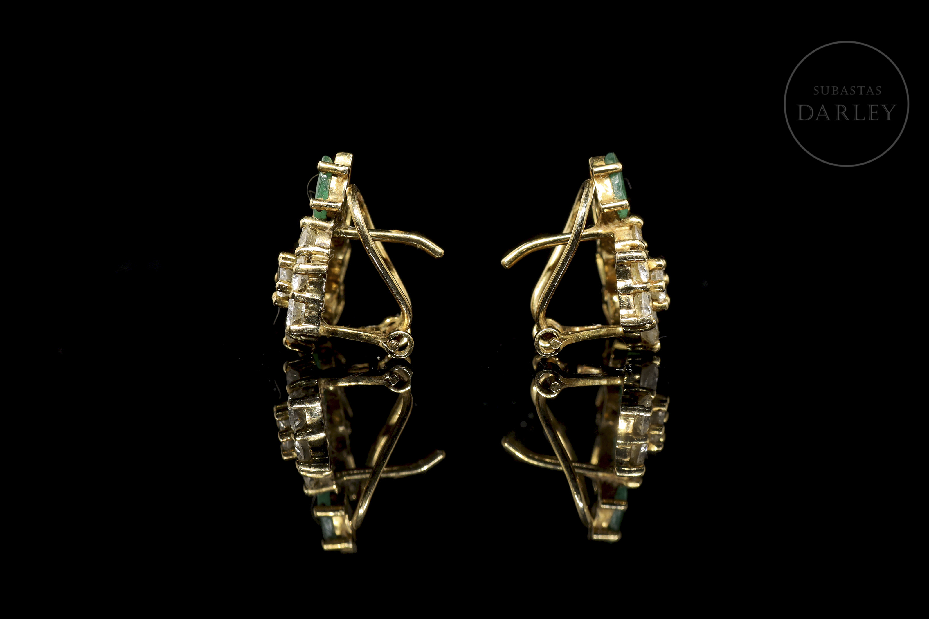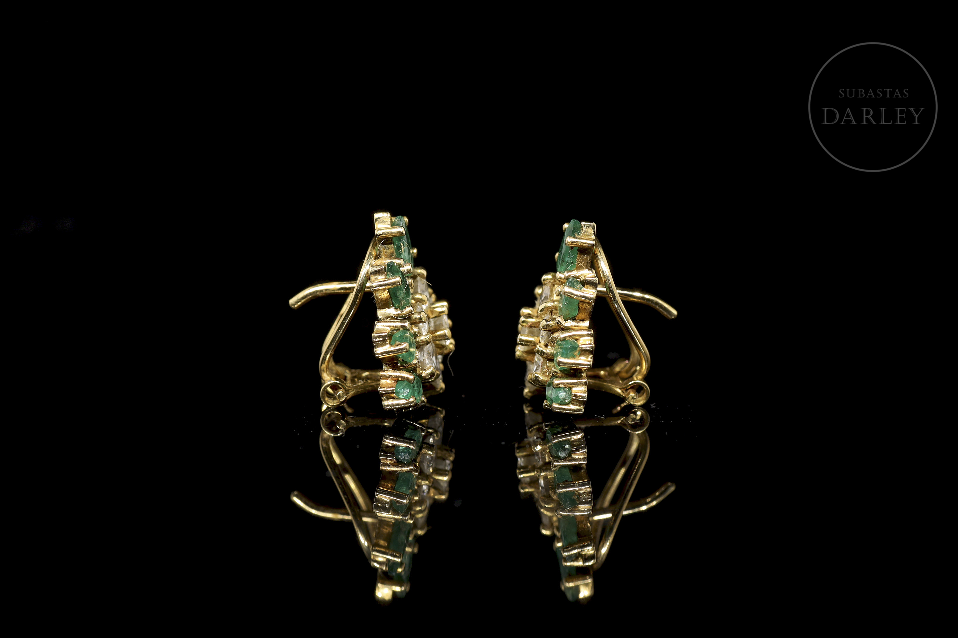 Pendientes de oro amarillo de 18k con esmeraldas y brillantes