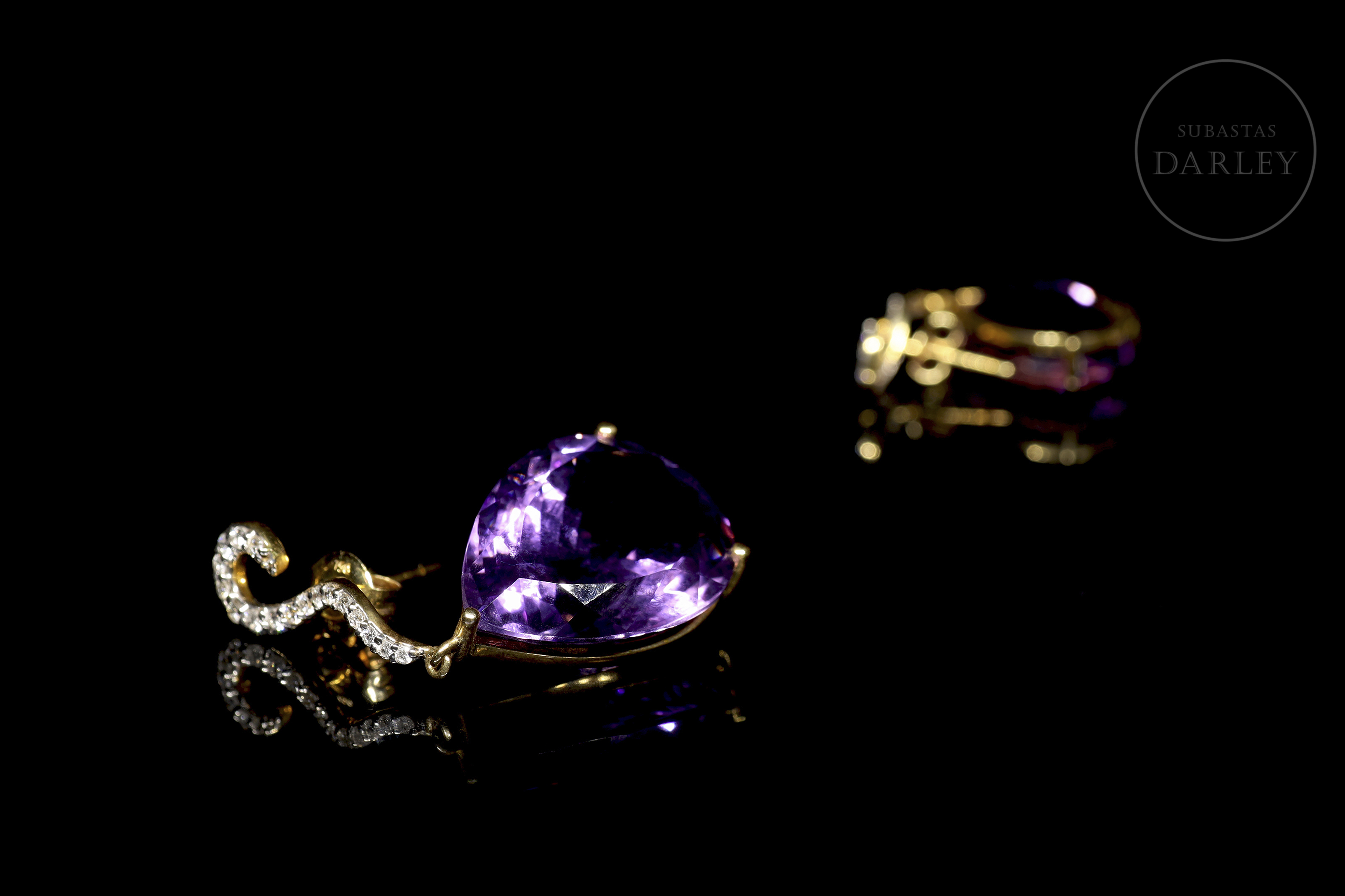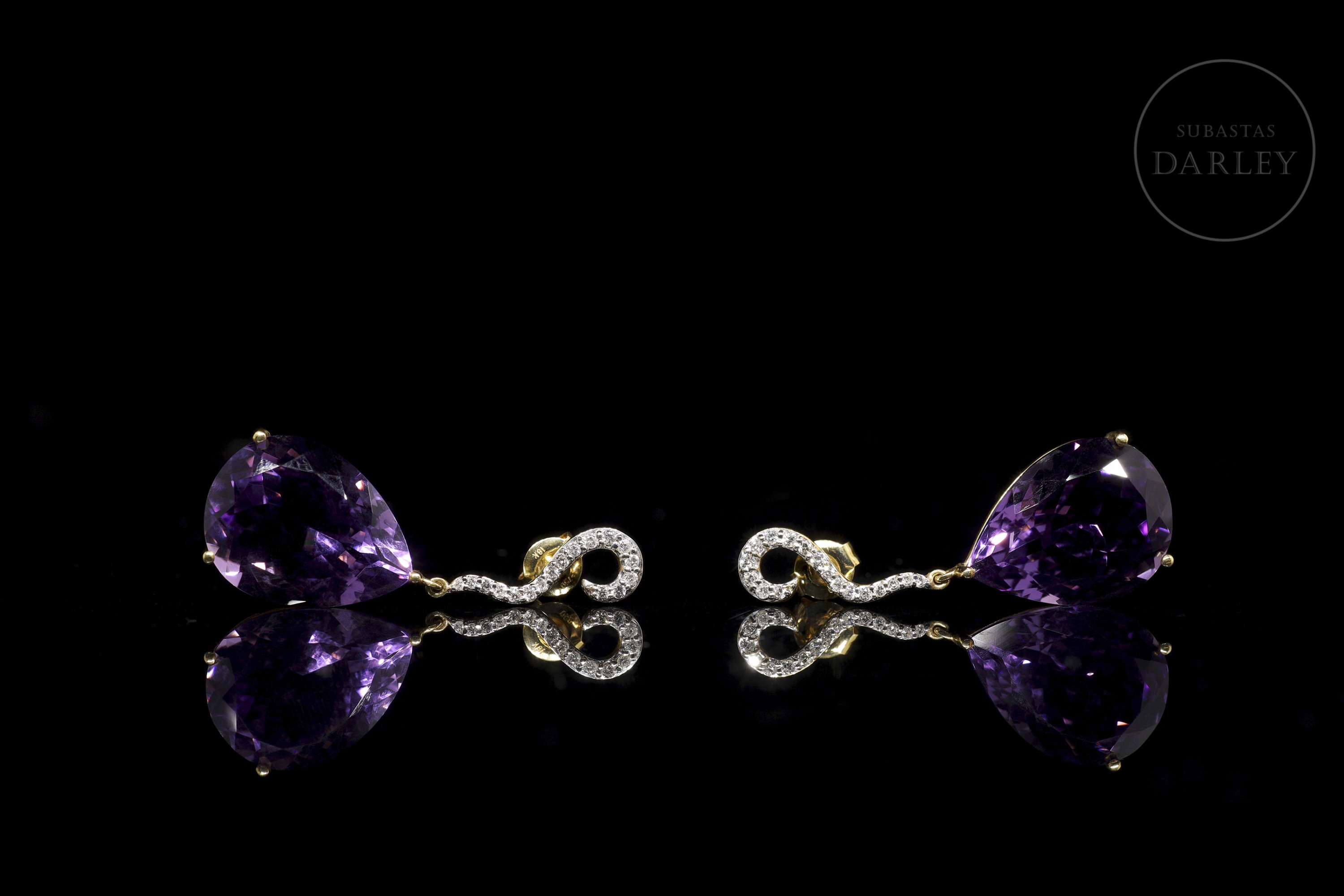 Pendientes en oro amarillo de 18k con amatistas y diamantes