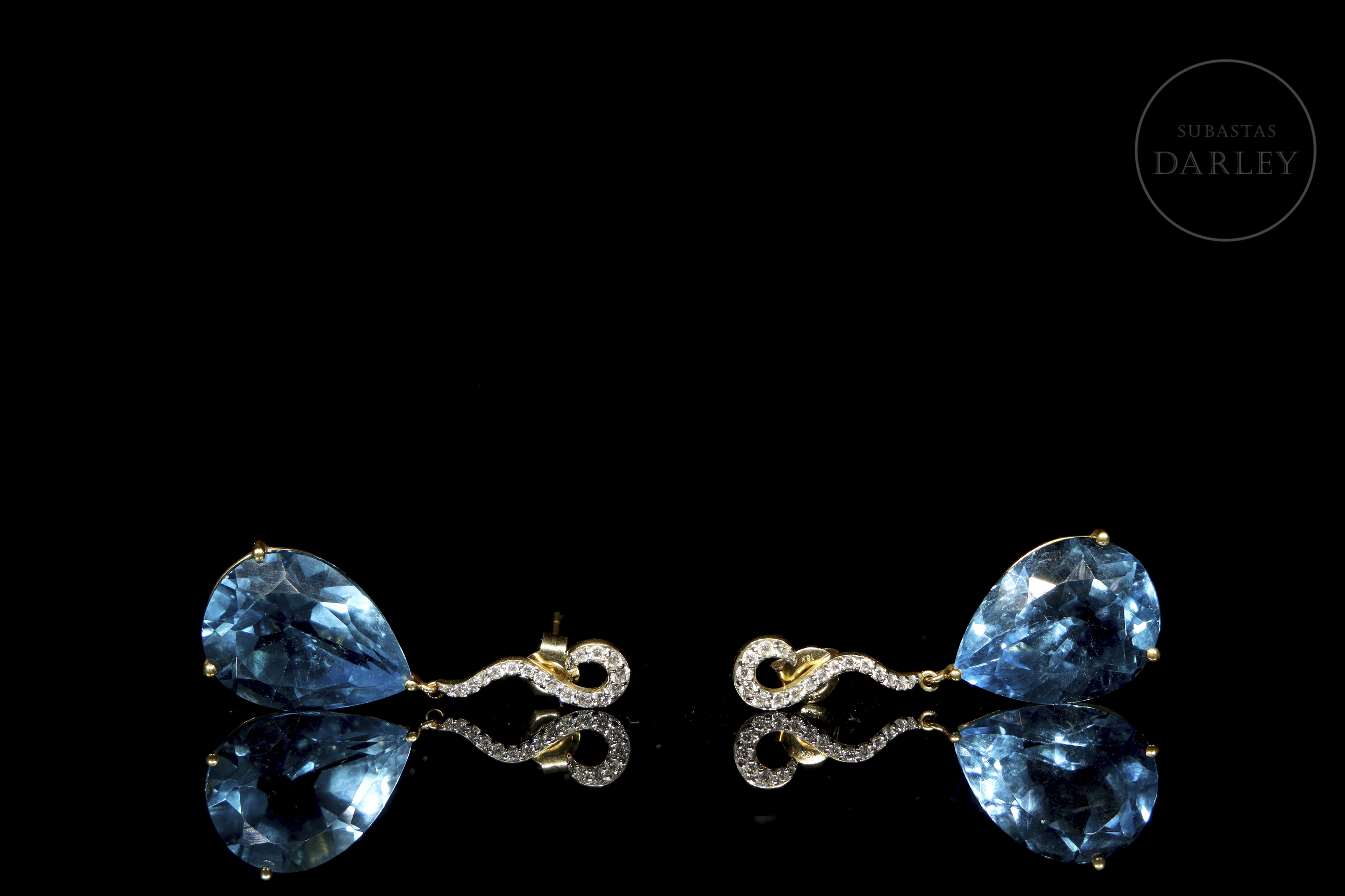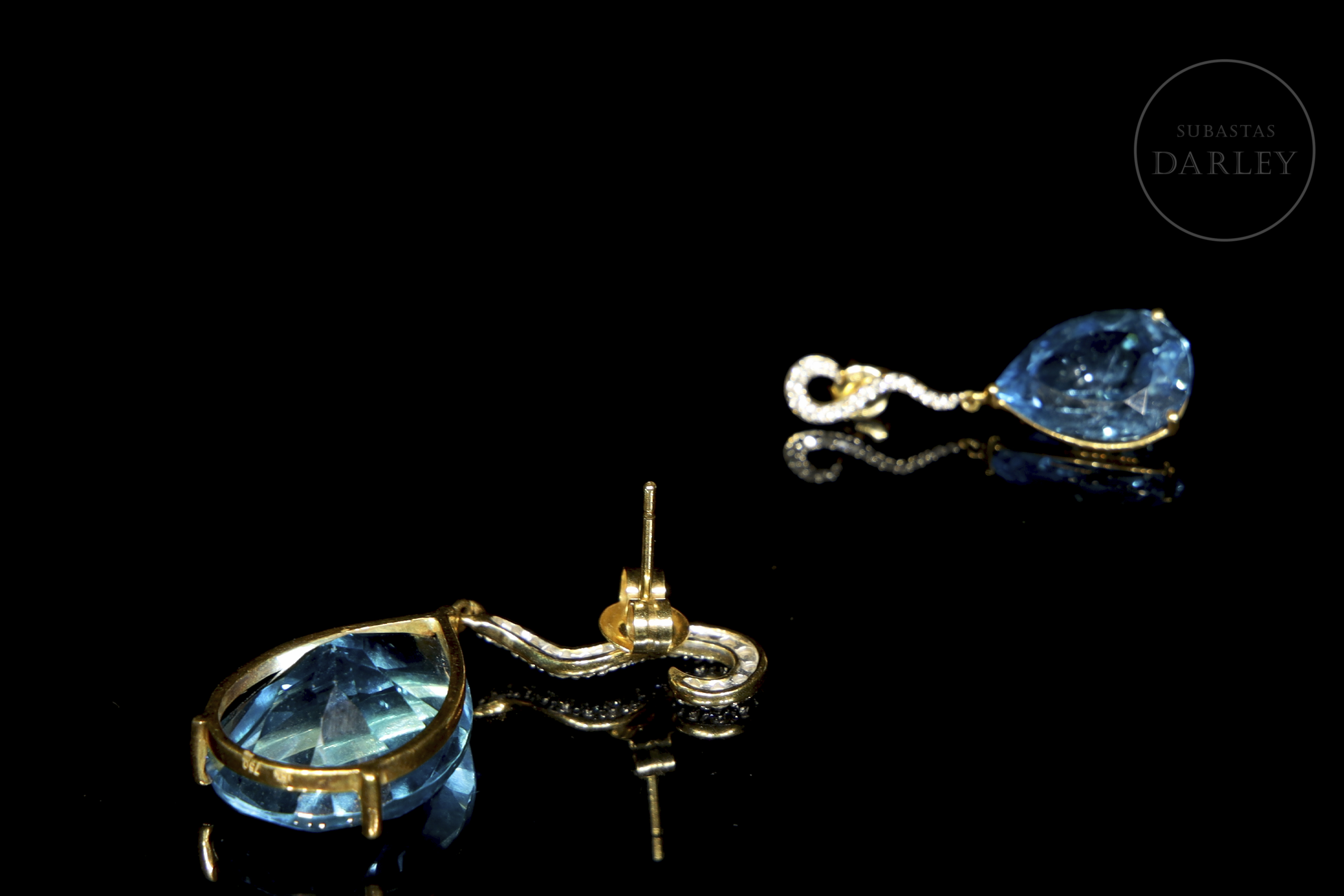 Pendientes en oro amarillo de 18k con topacios y diamantes