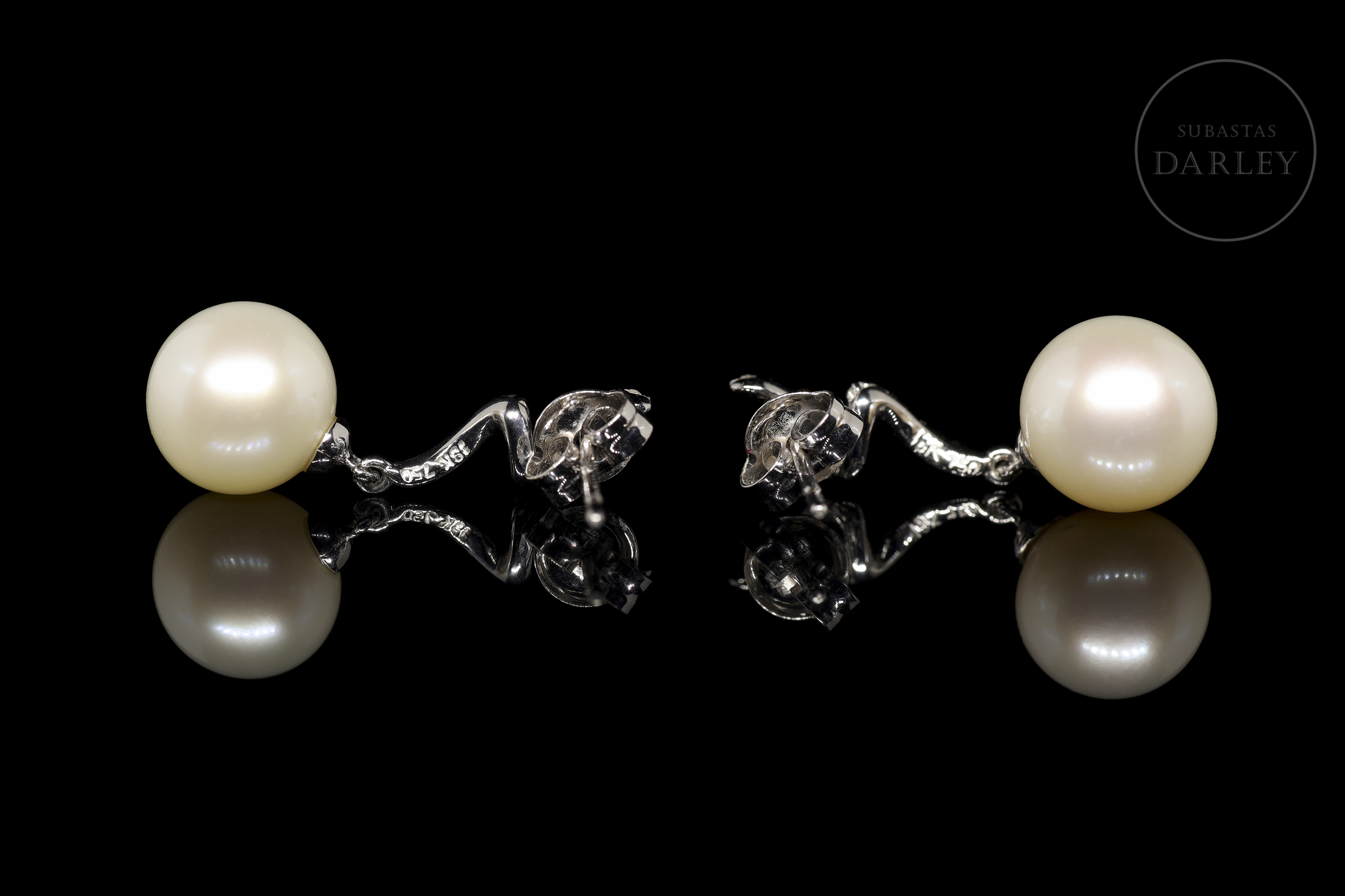 Pendientes perlas en oro blanco de 18 kt y diamantes