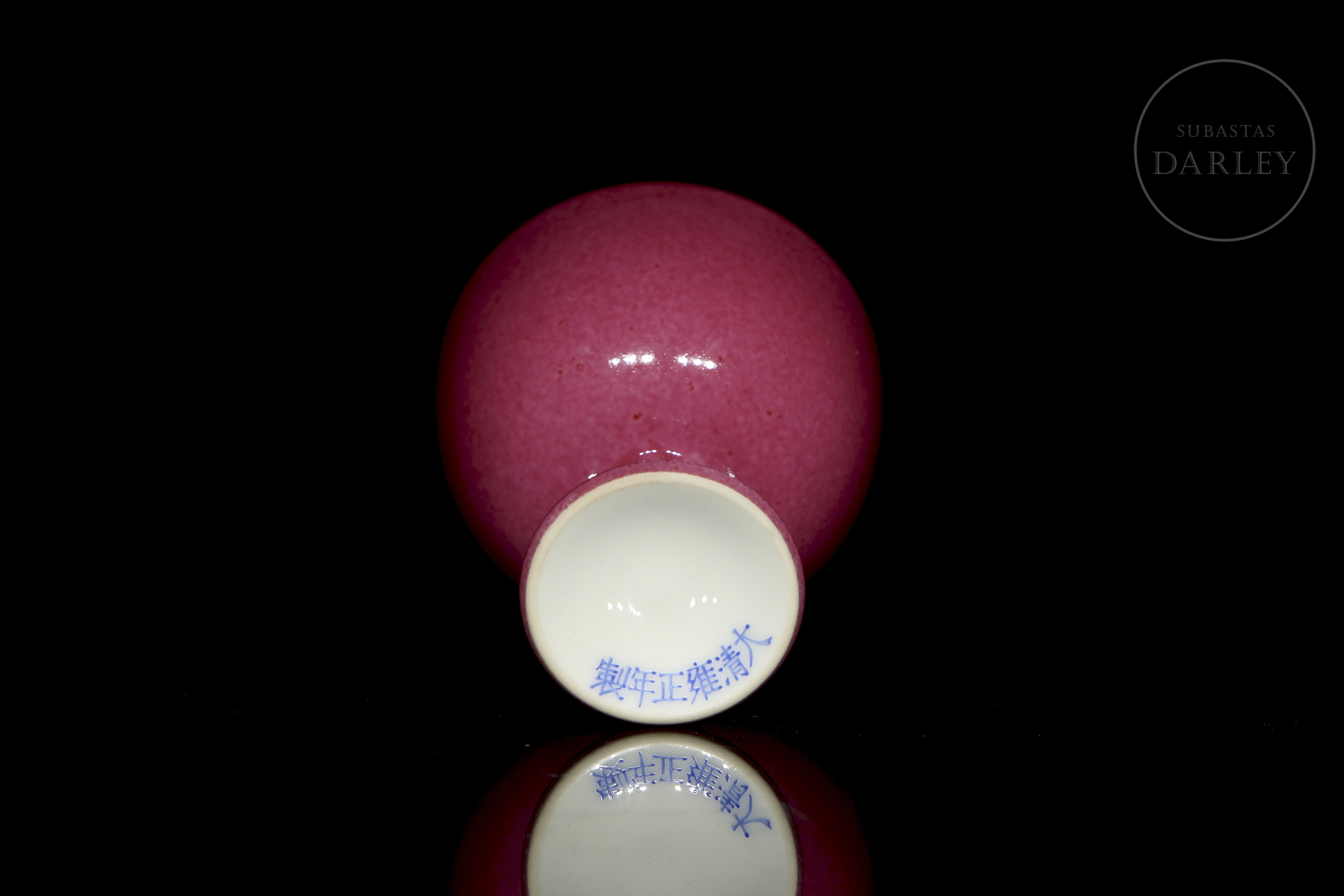 Pequeña copa de porcelana esmaltada en rosa, con sello Yongzheng