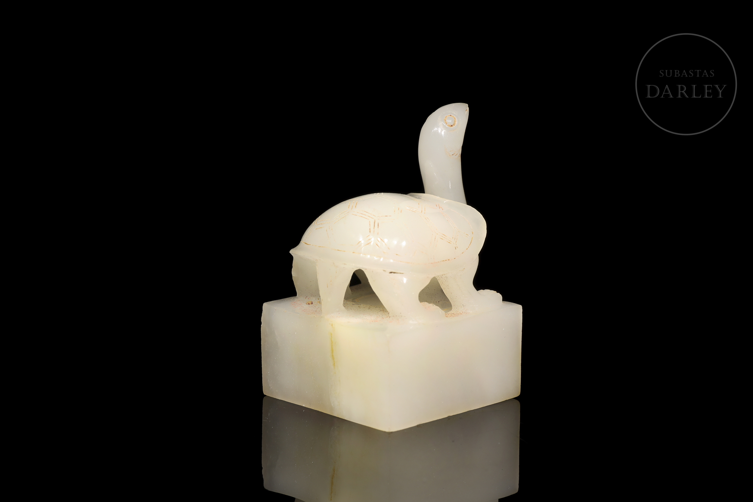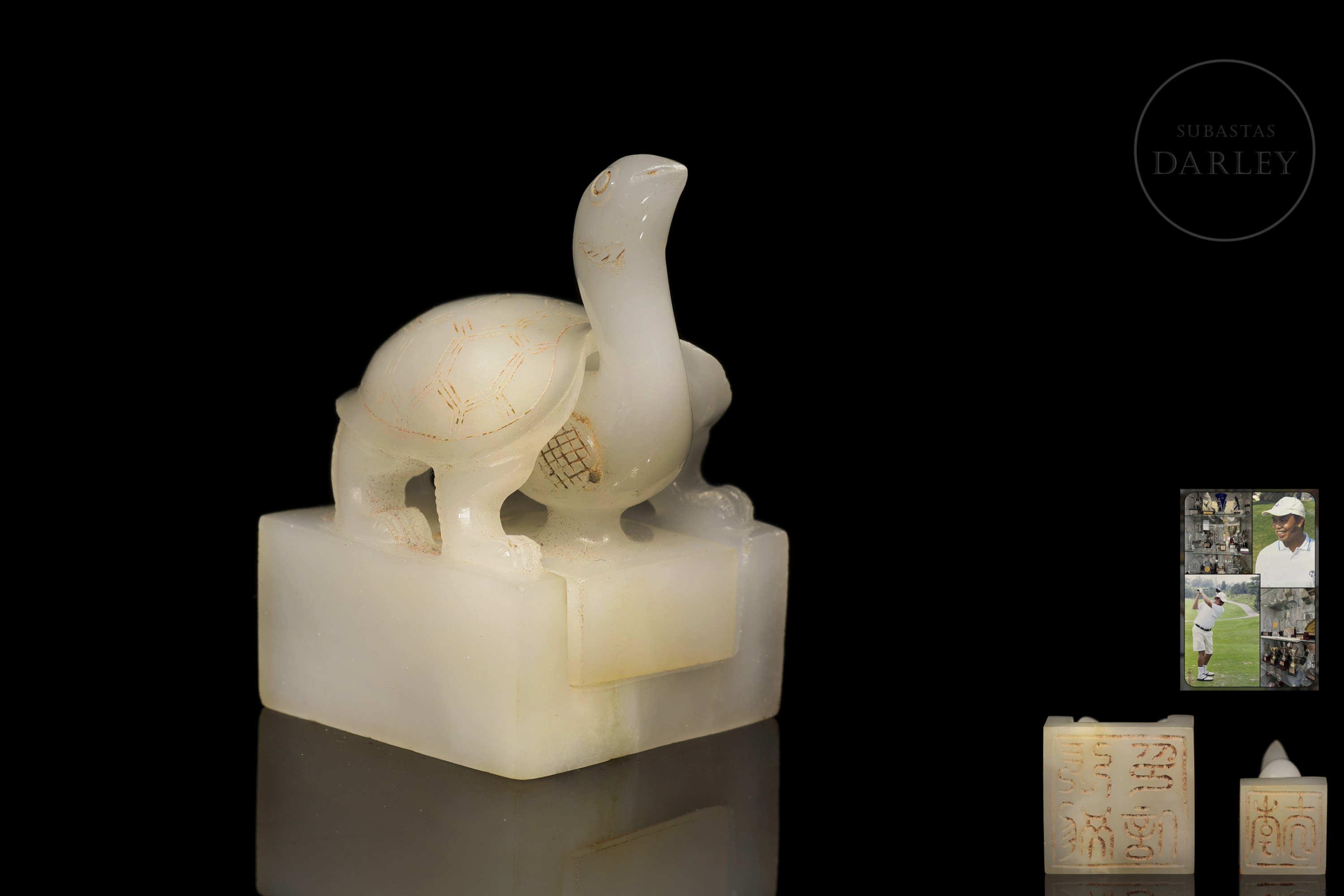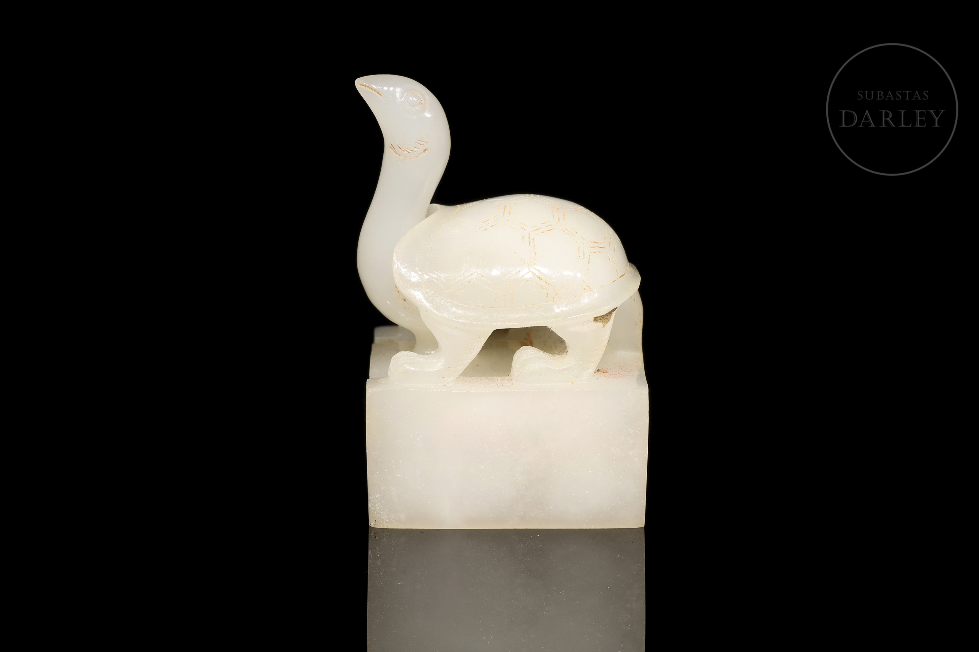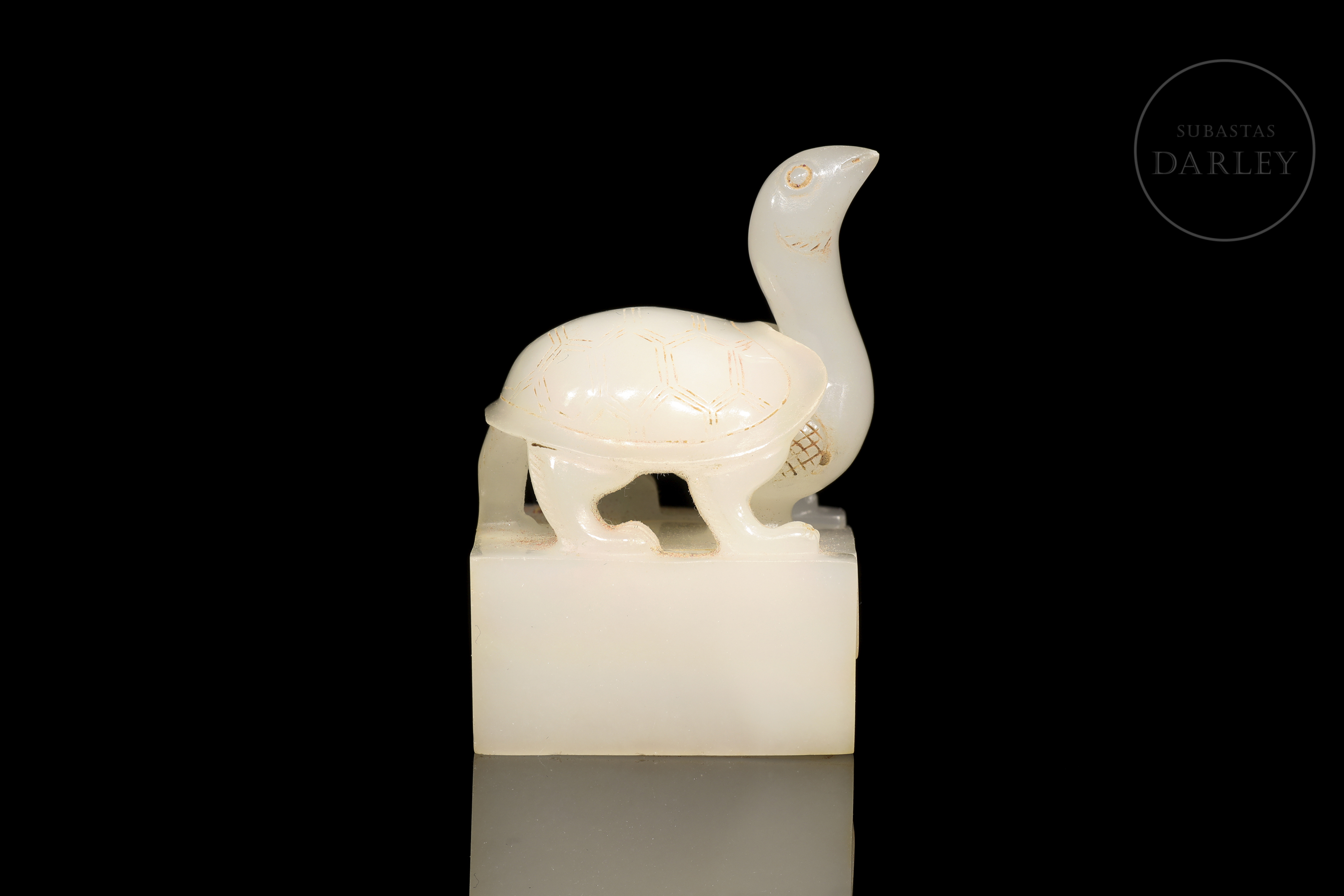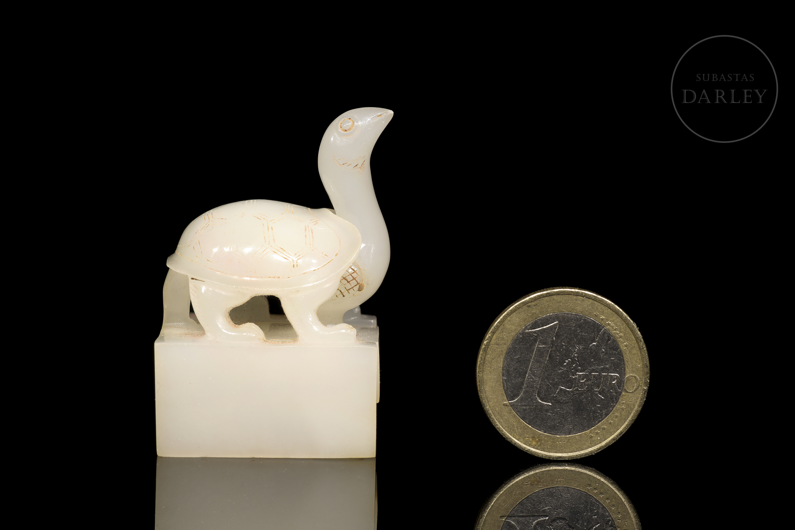 Pequeño sello de jade "Ave y tortuga", Dinastía Han del Este