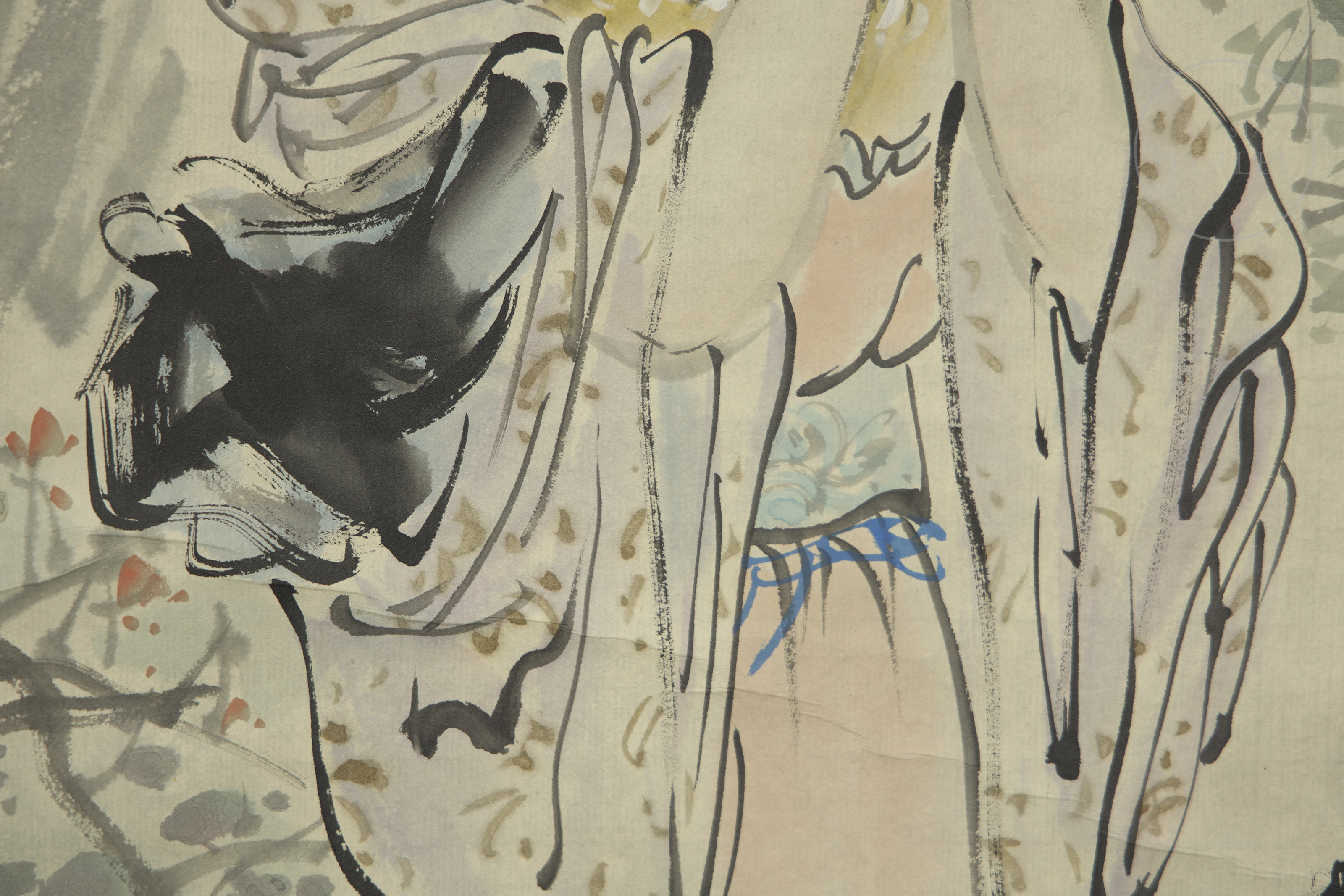 Pintura china "Dama con incienso", con firma Zhang Daqian