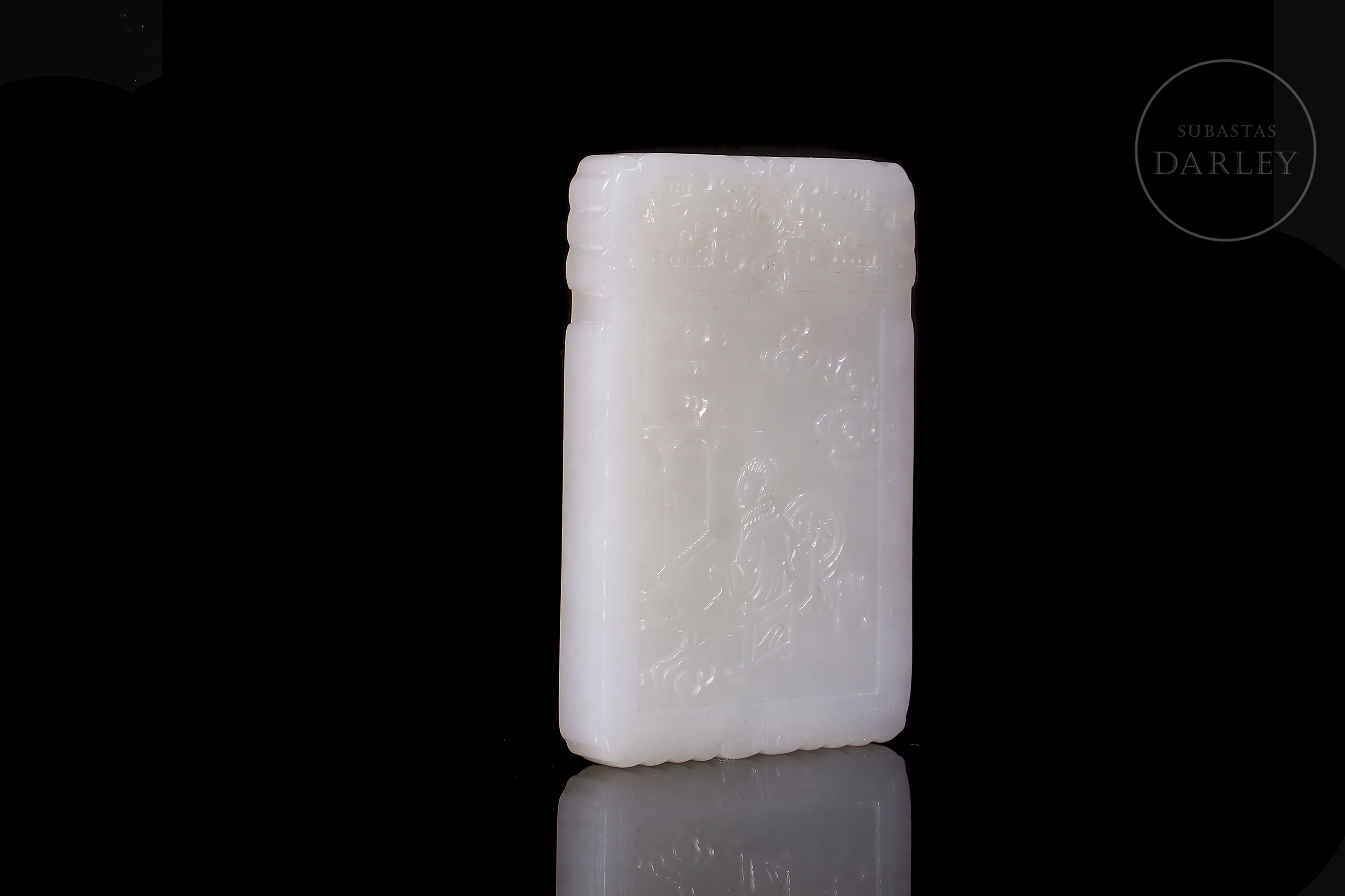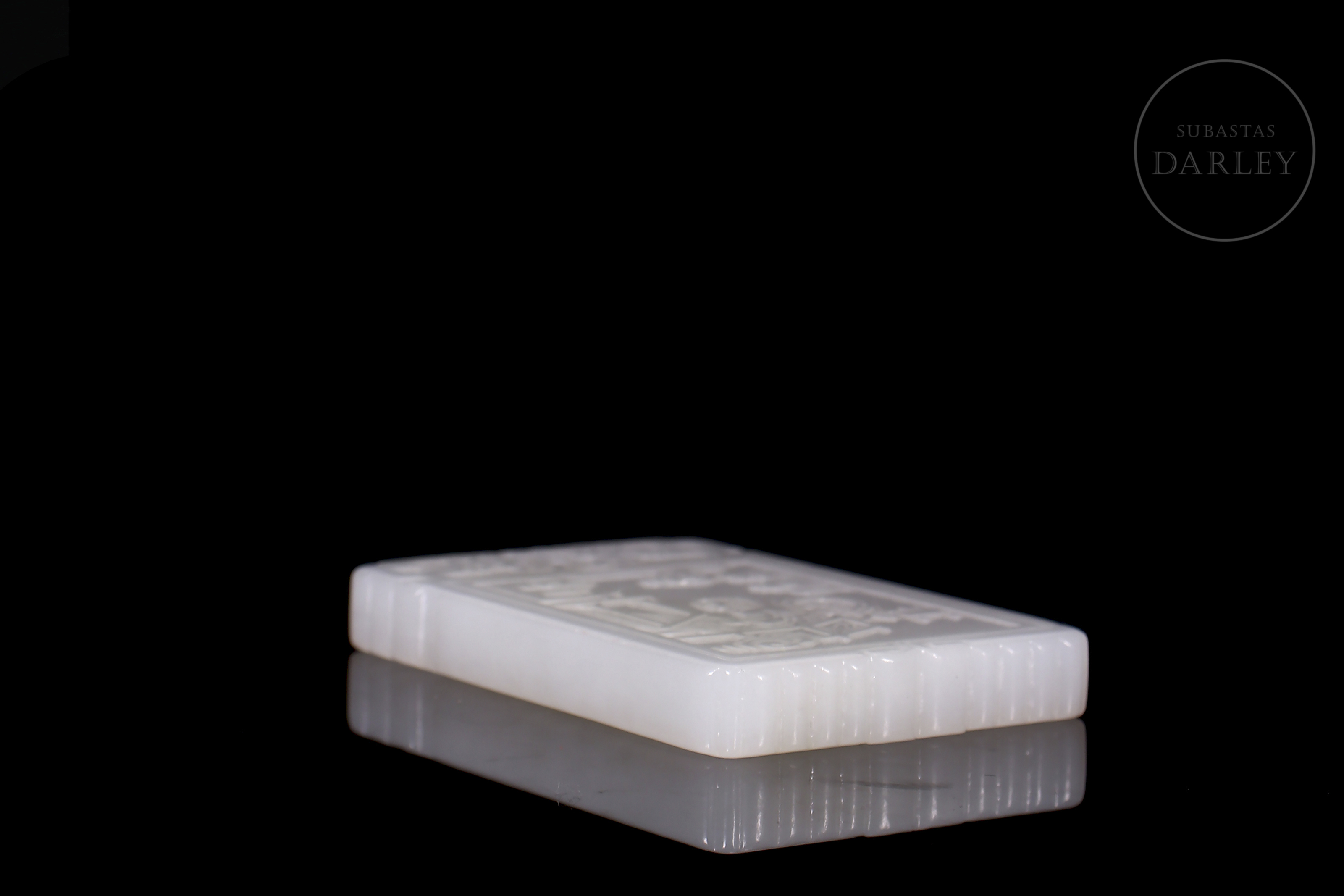 Placa de jade blanco de Hetian "Tejedora con poema", dinastía Qing